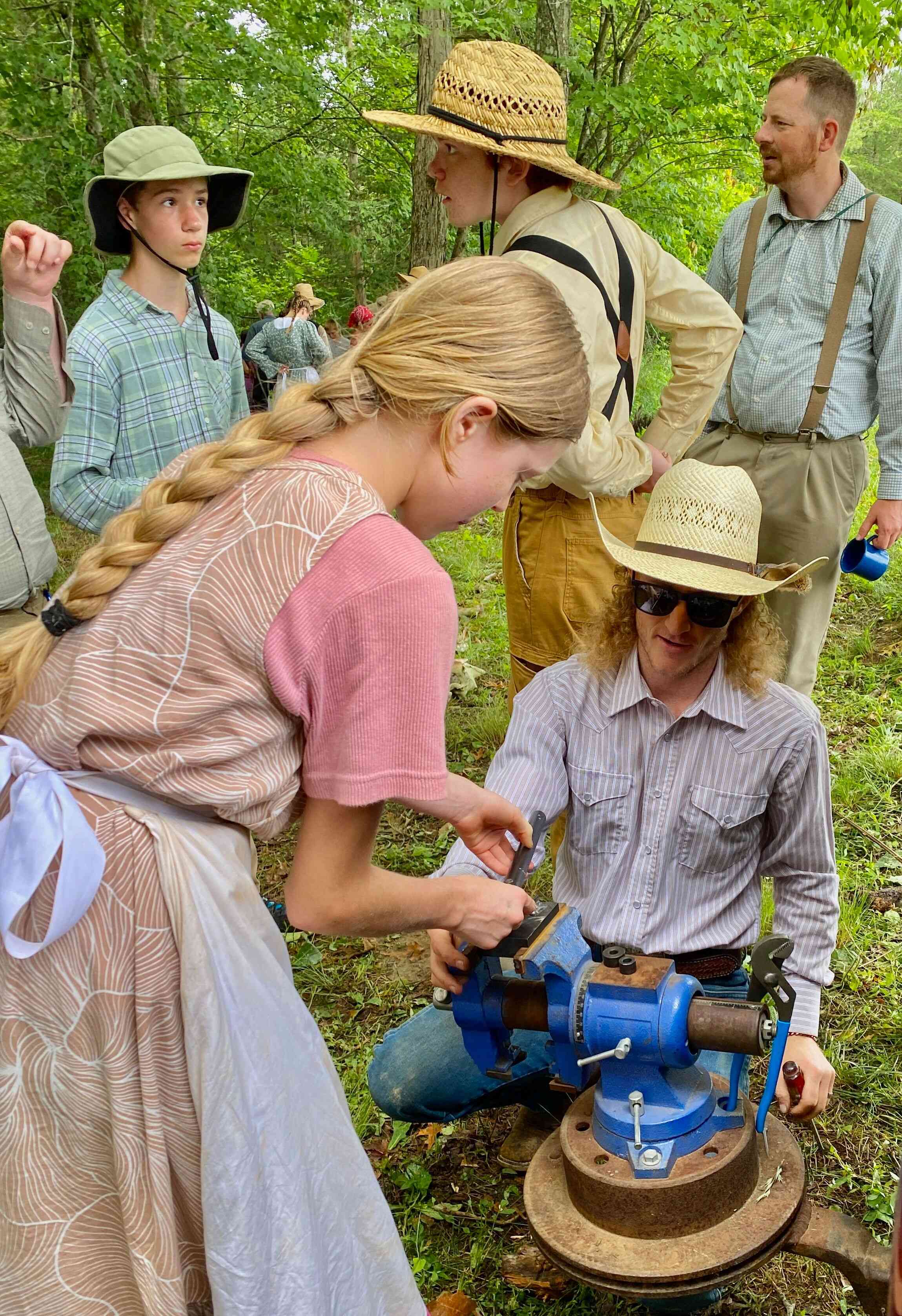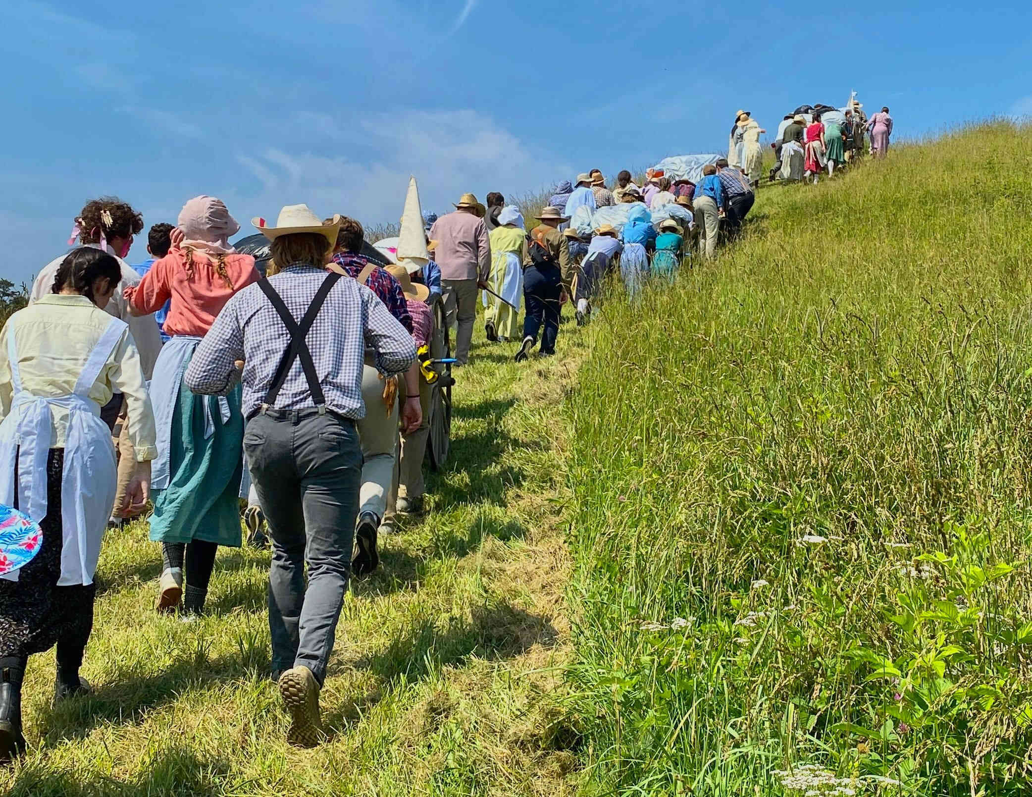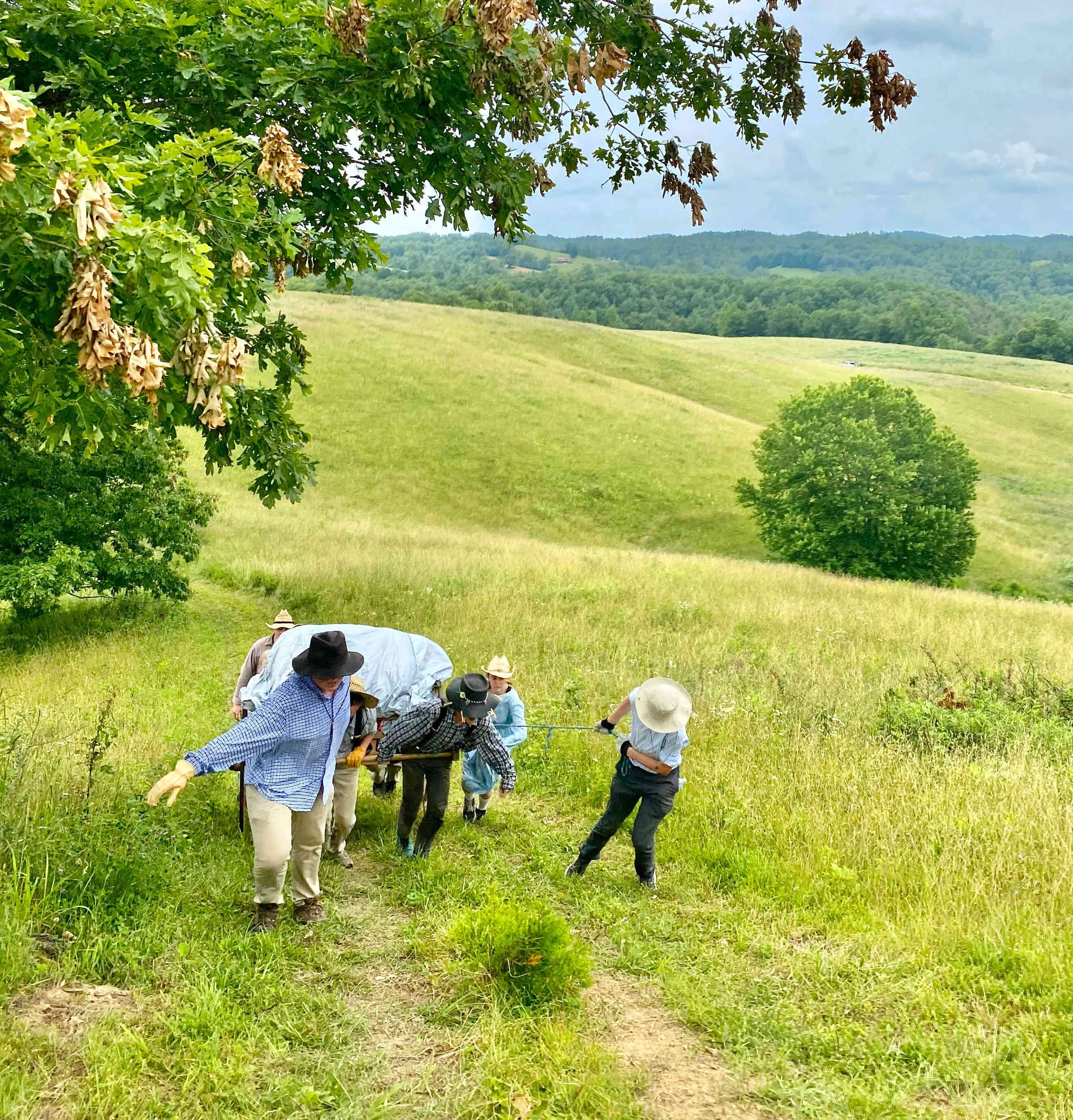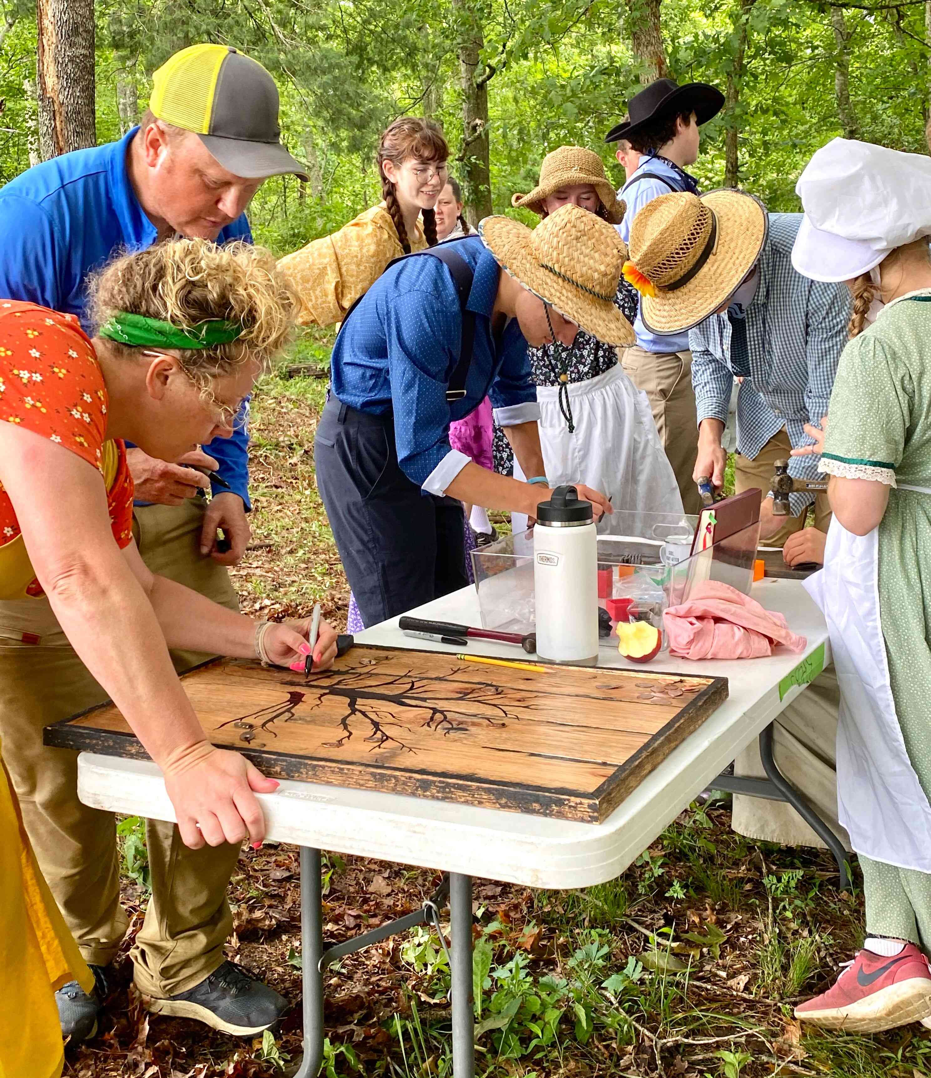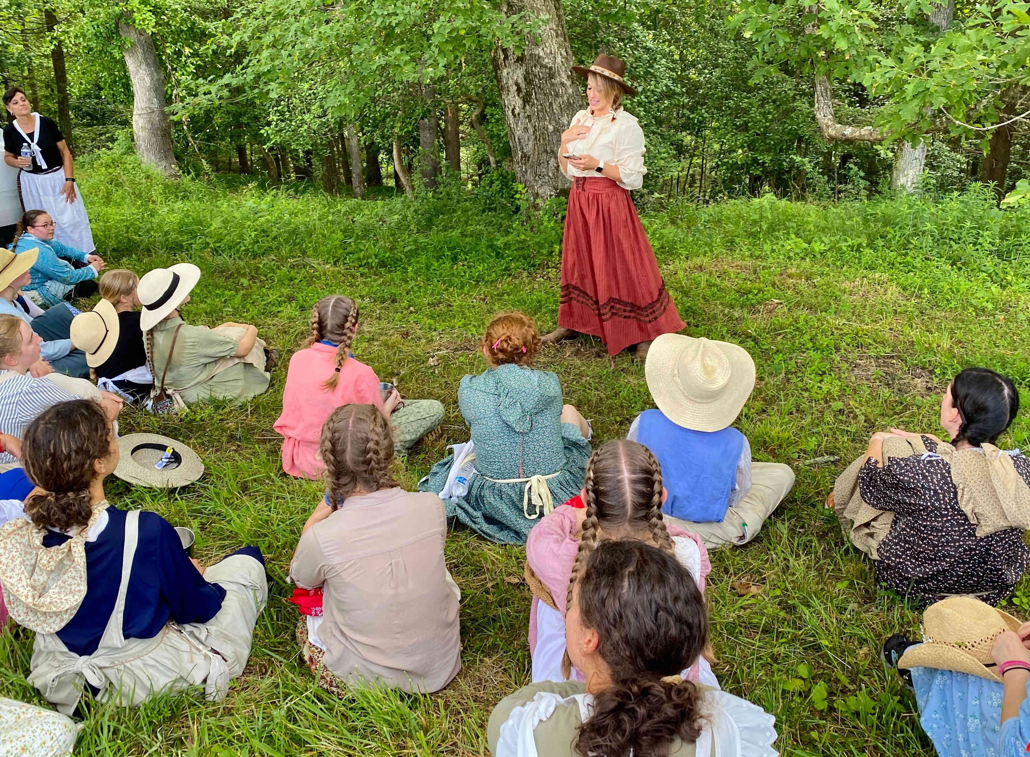 The weather was again very hot and humid, but the kids took numerous water & Gatorade breaks which was combined with true pioneer stories told by adults, who ancestors came across the Plains!