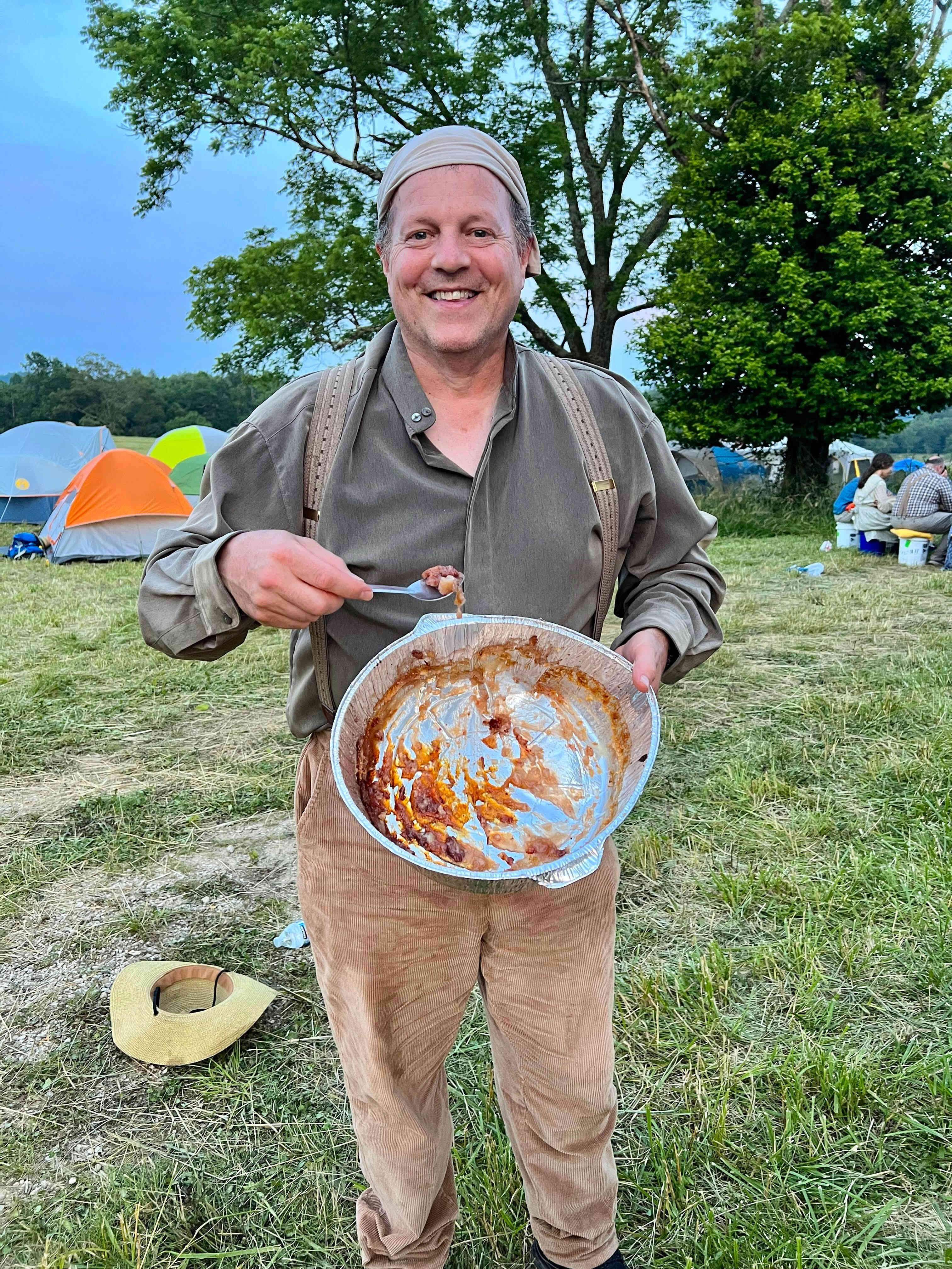 The families started cooking cobbler in their Dutch ovens,