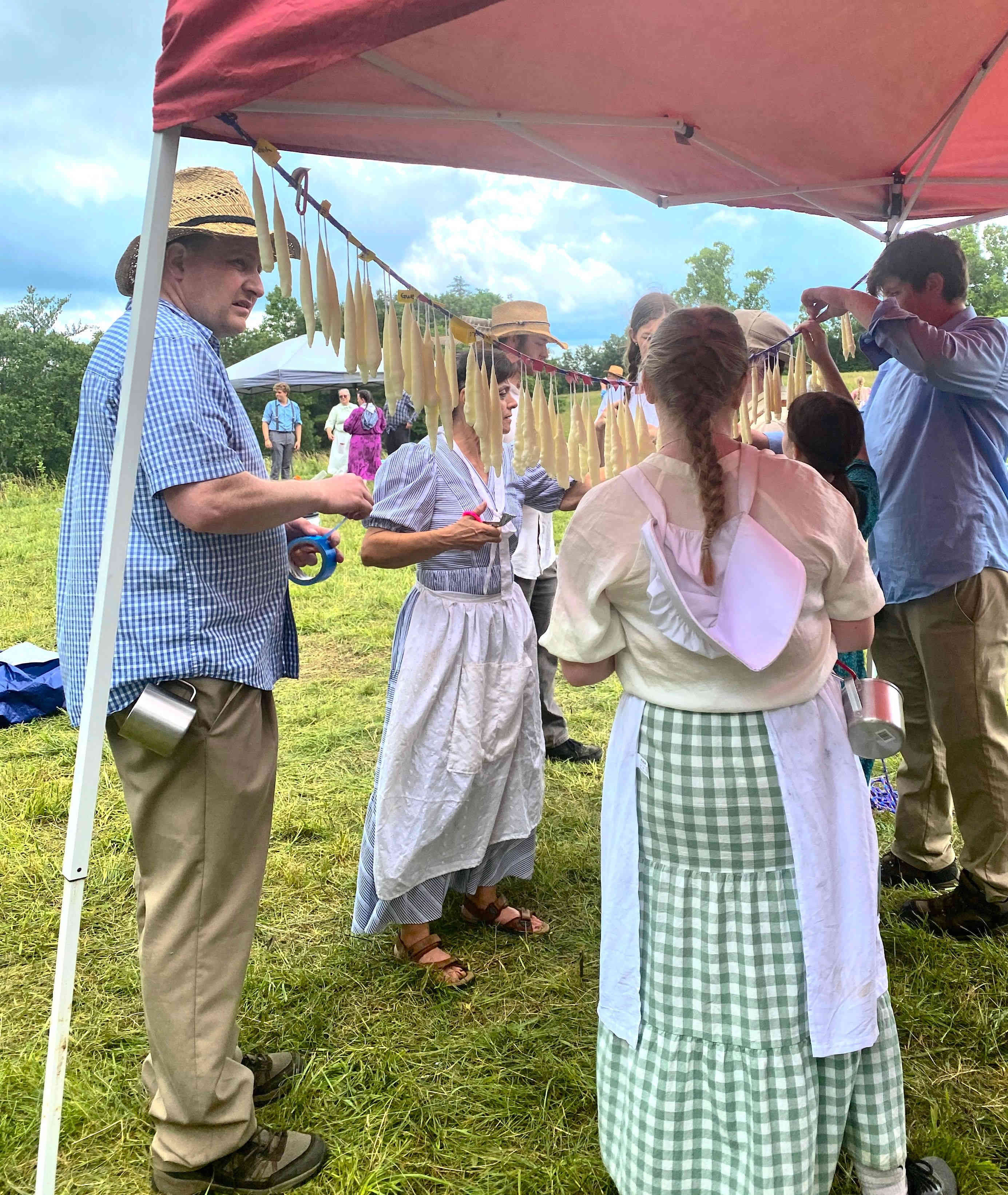 The next day, we lucked out weather wise which allowed us to have a full morning (after putting the tents down) of fun, playing pioneer game and making pioneer crafts ...