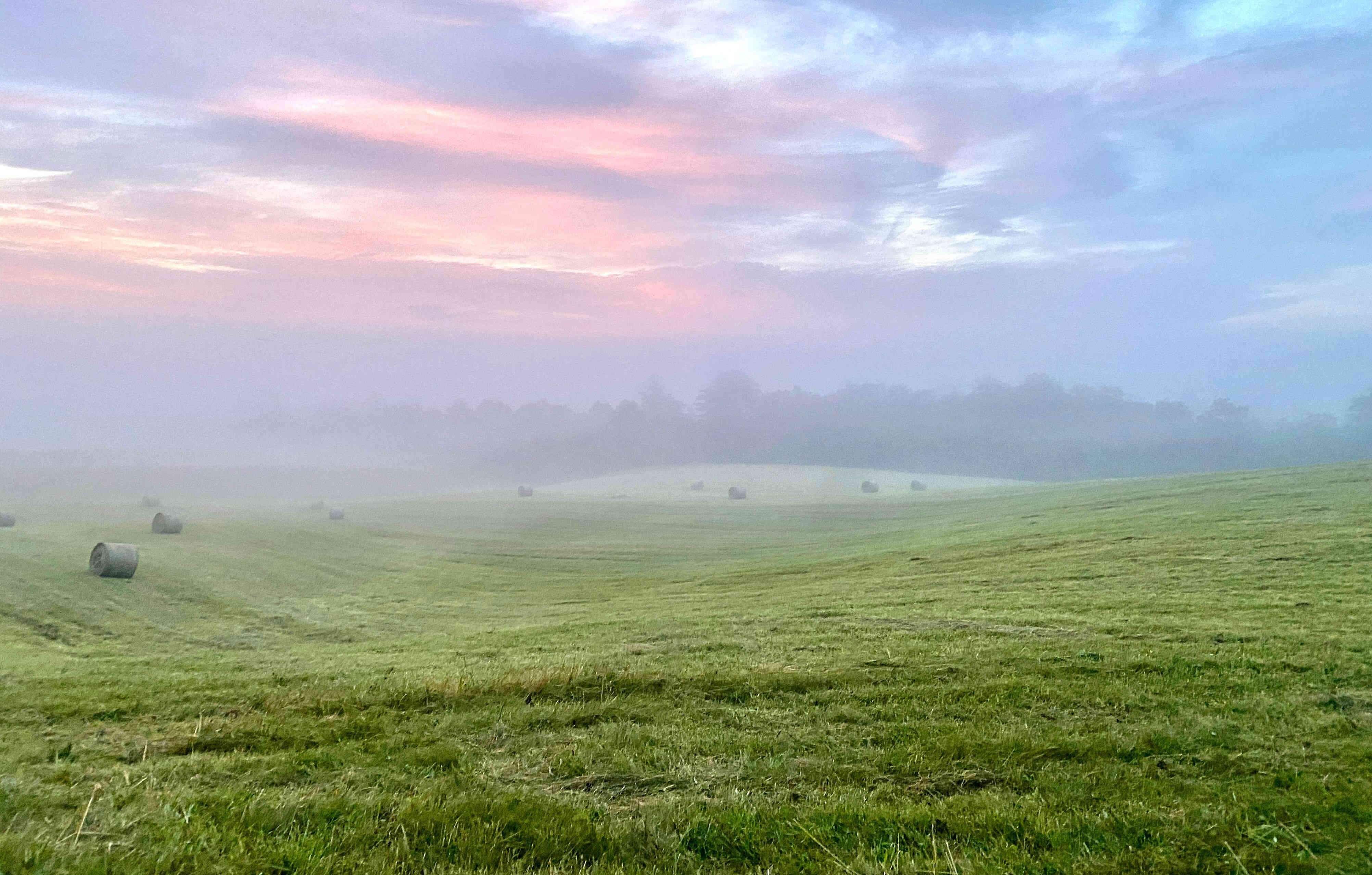 During this family devotional time, I just sat and watched a huge farm machine in the distance, turn rows of grass into hug rolls of hay.