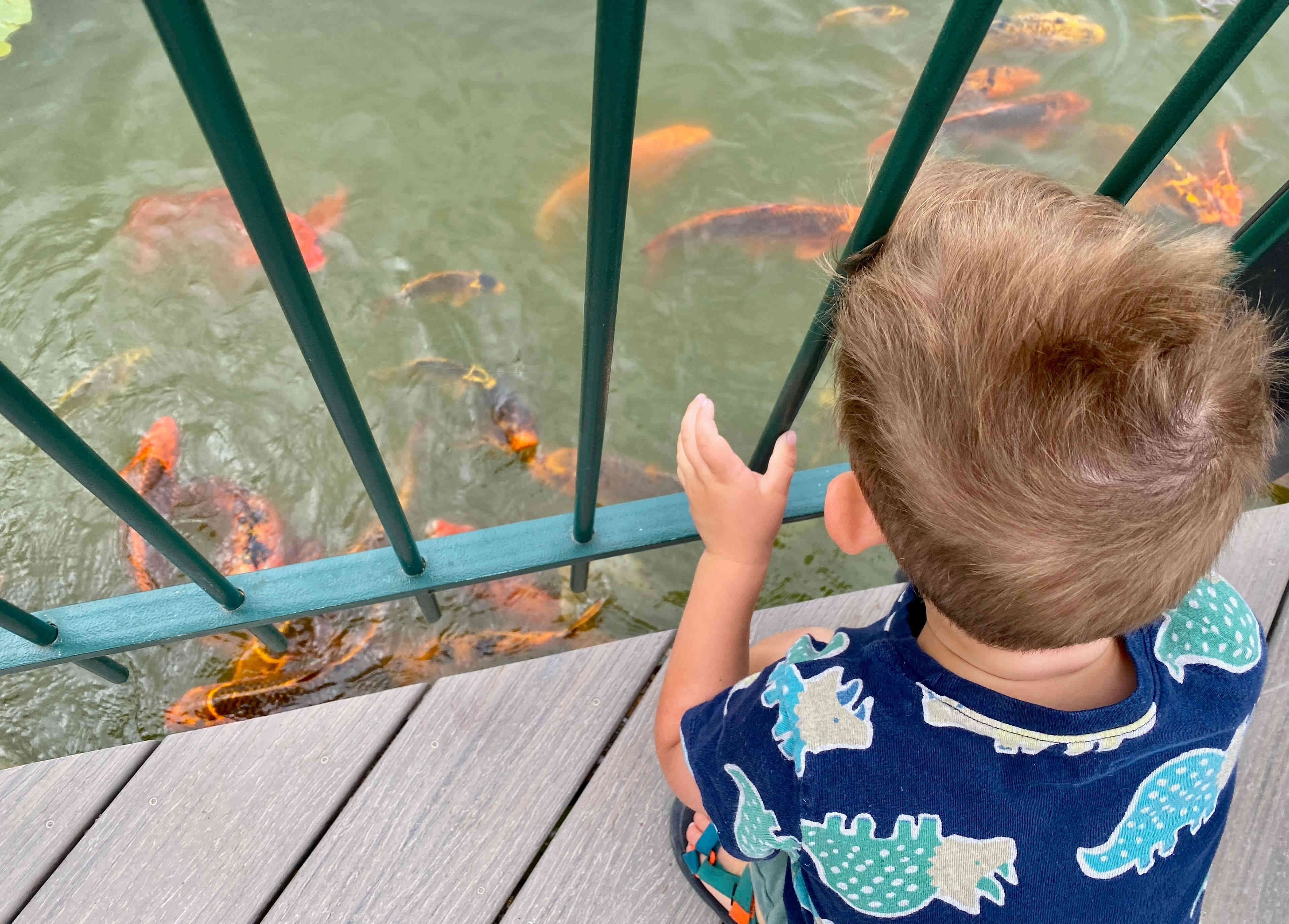 Next we walked over a bridge and saw some very colorful carp...