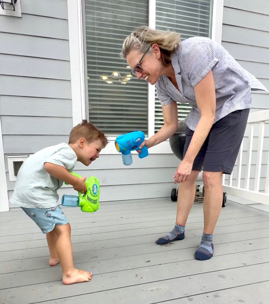 Playing with bubbles on the deck with Mimi