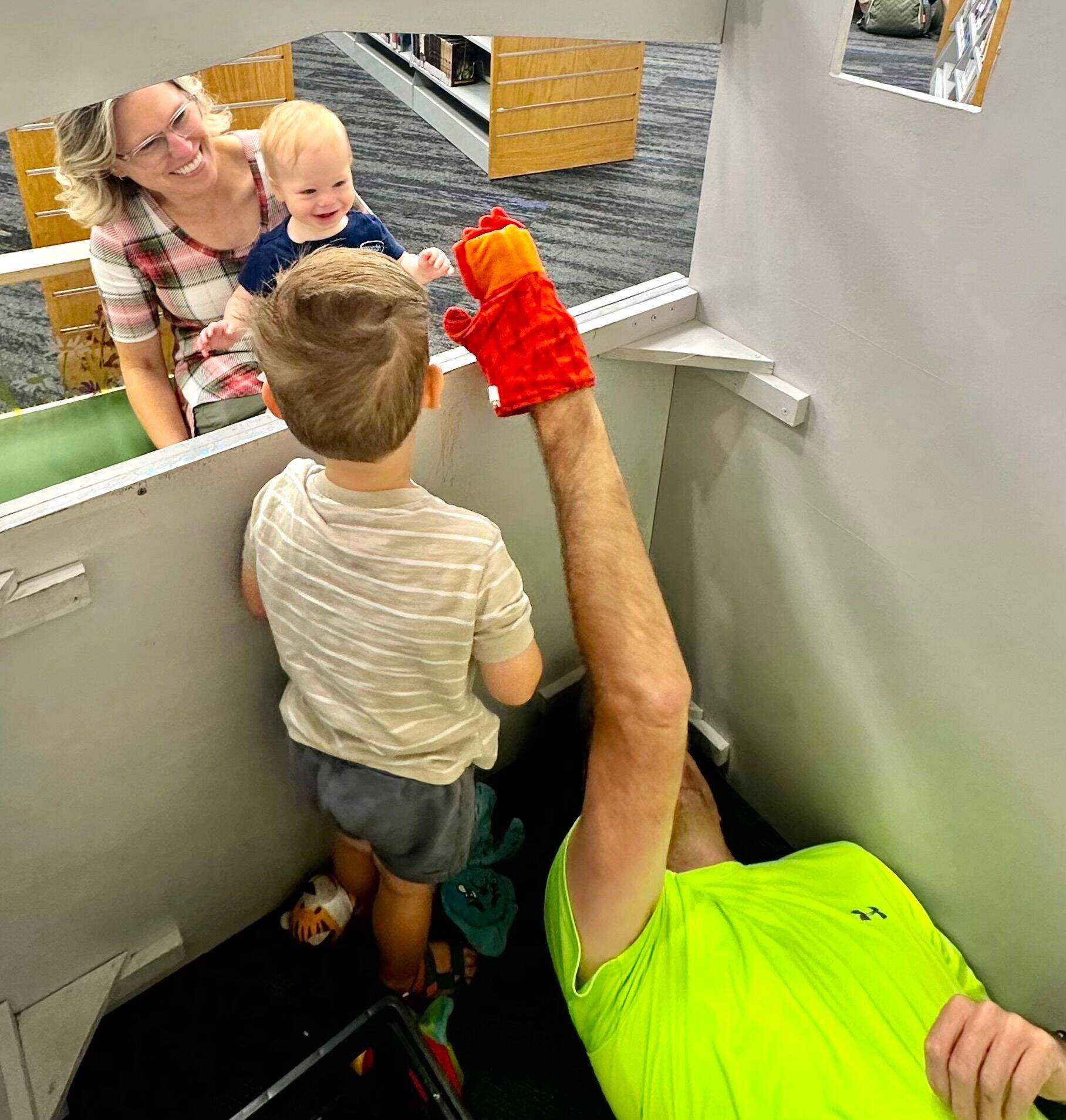 Another favorite area was the puppet show booth...Grandpa really got into it there (literally)!