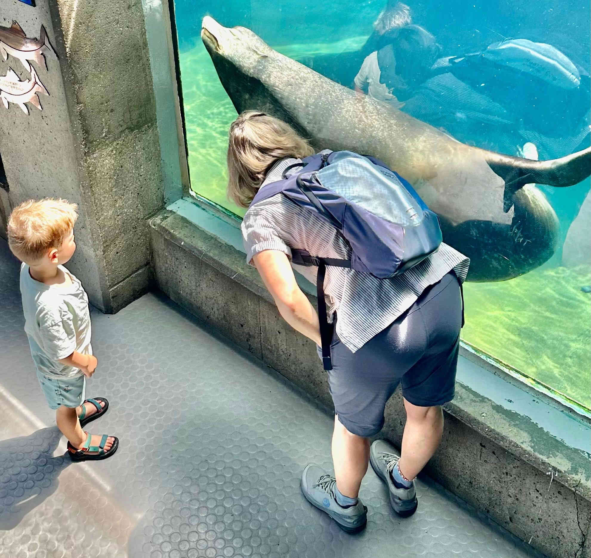the huge sea lion swim right next to the window,