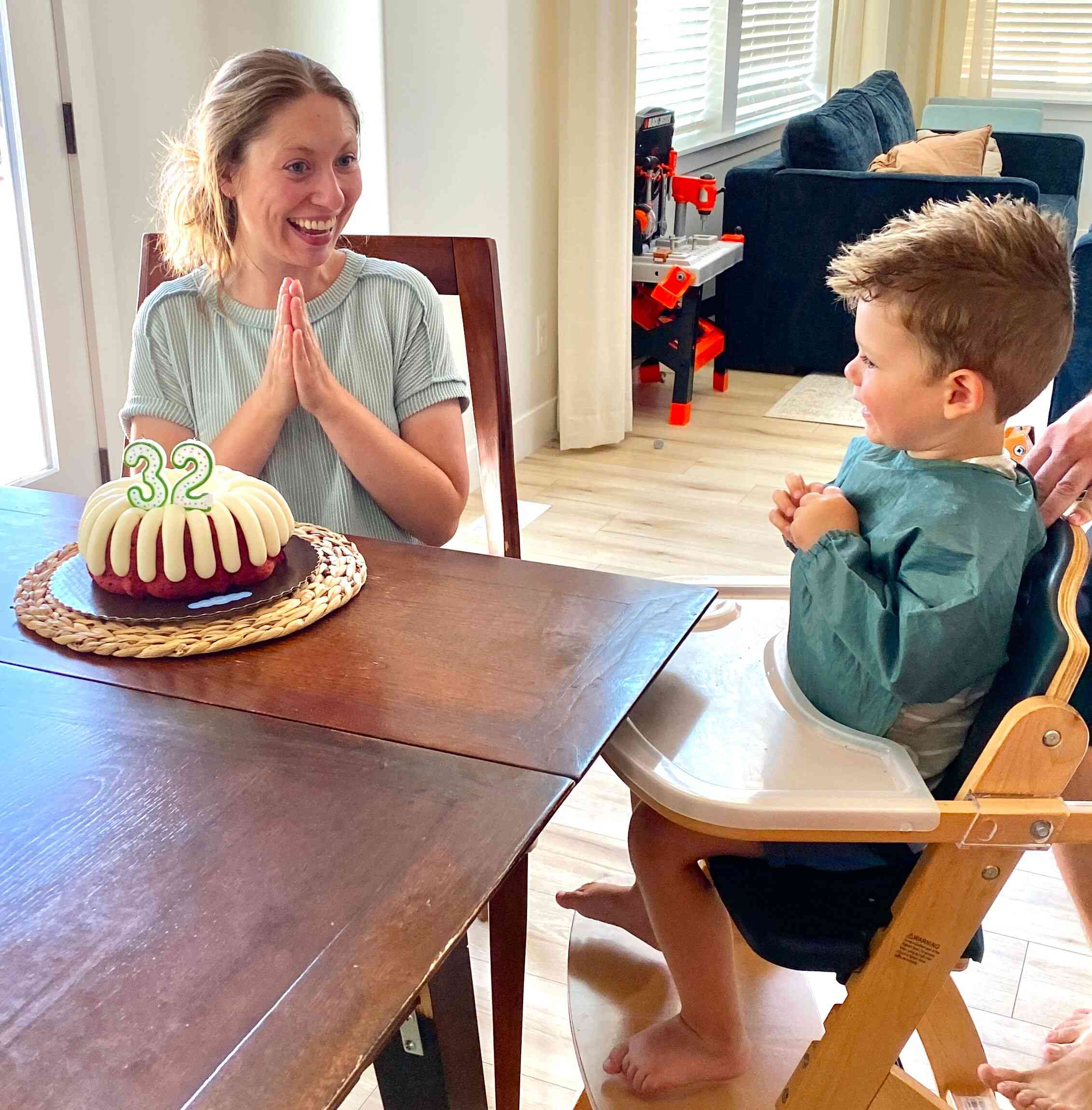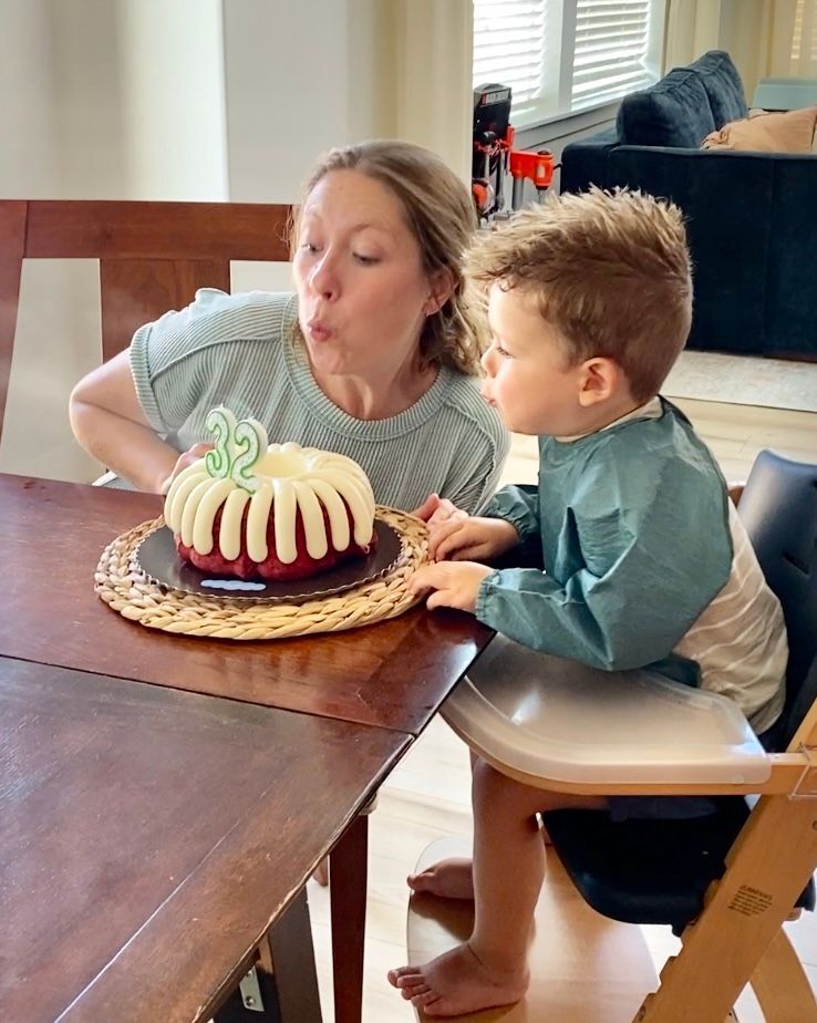 Finn had to be seating very close to the cake so that he could help his Momma blow out the candles!