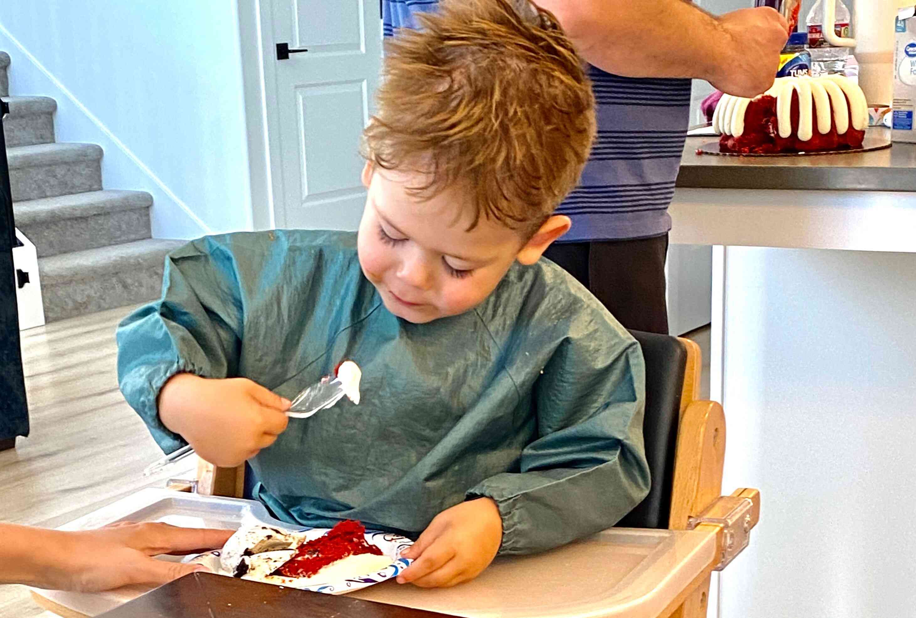 Finn thouroughly enjoying his cake!