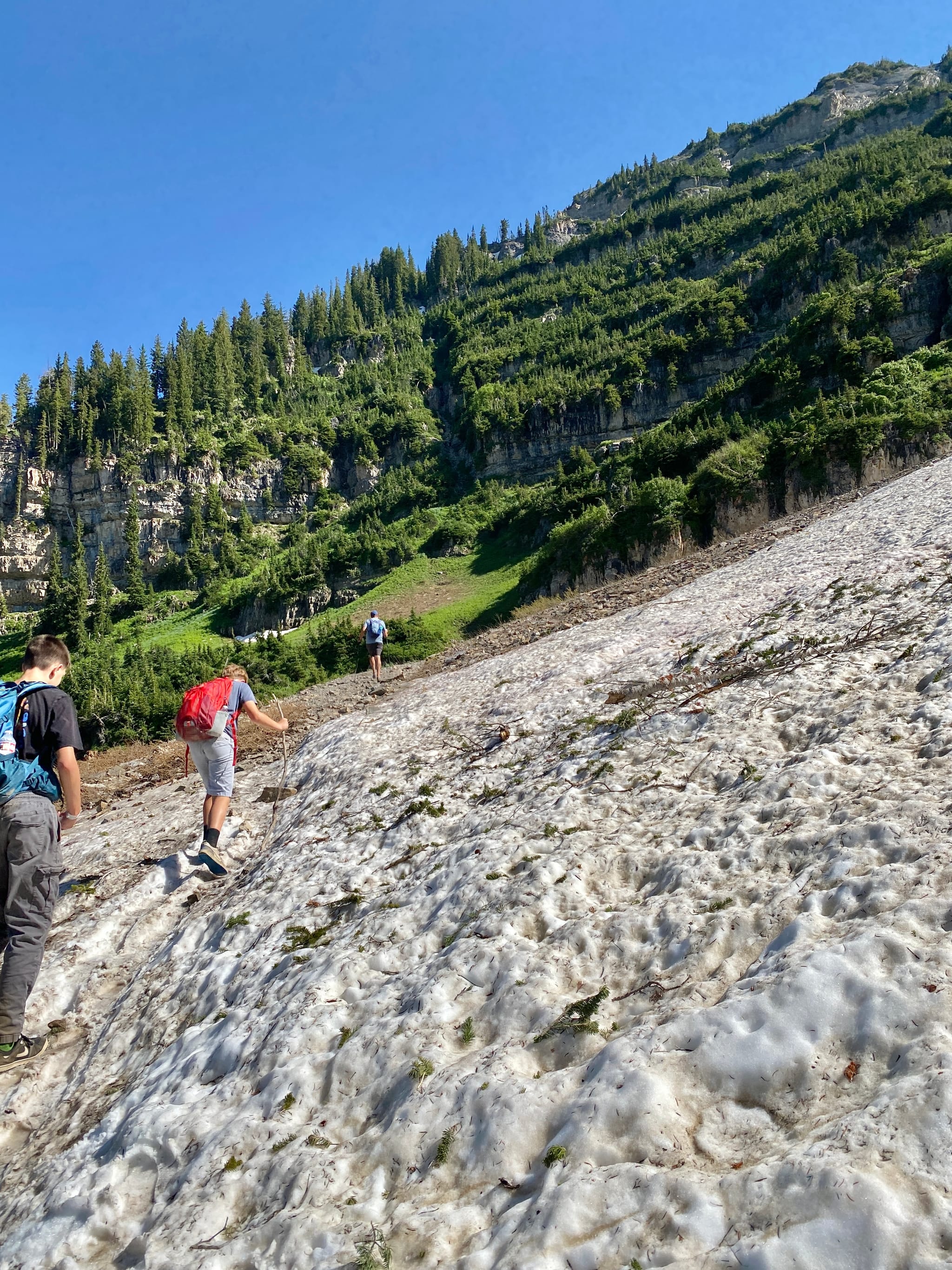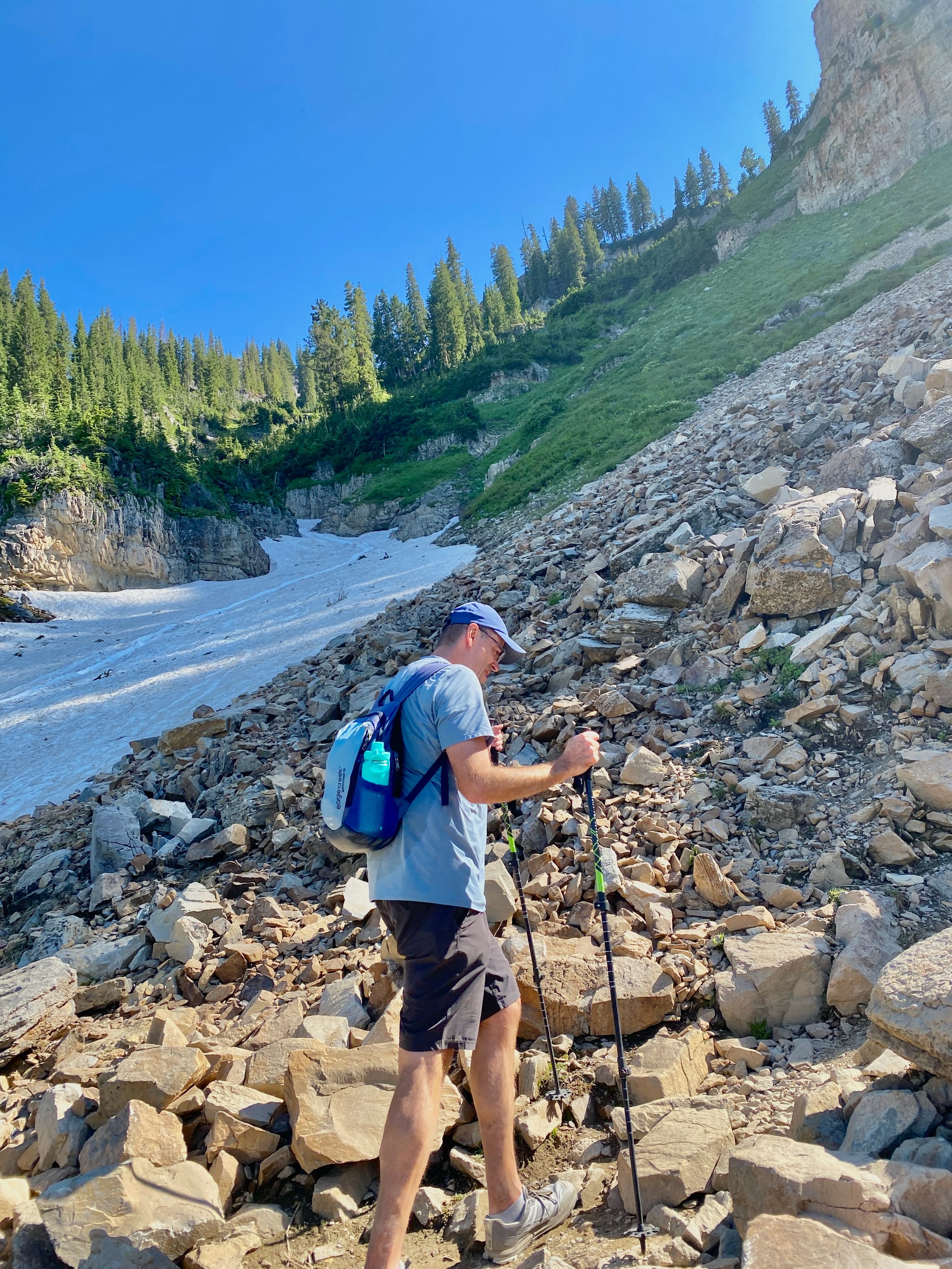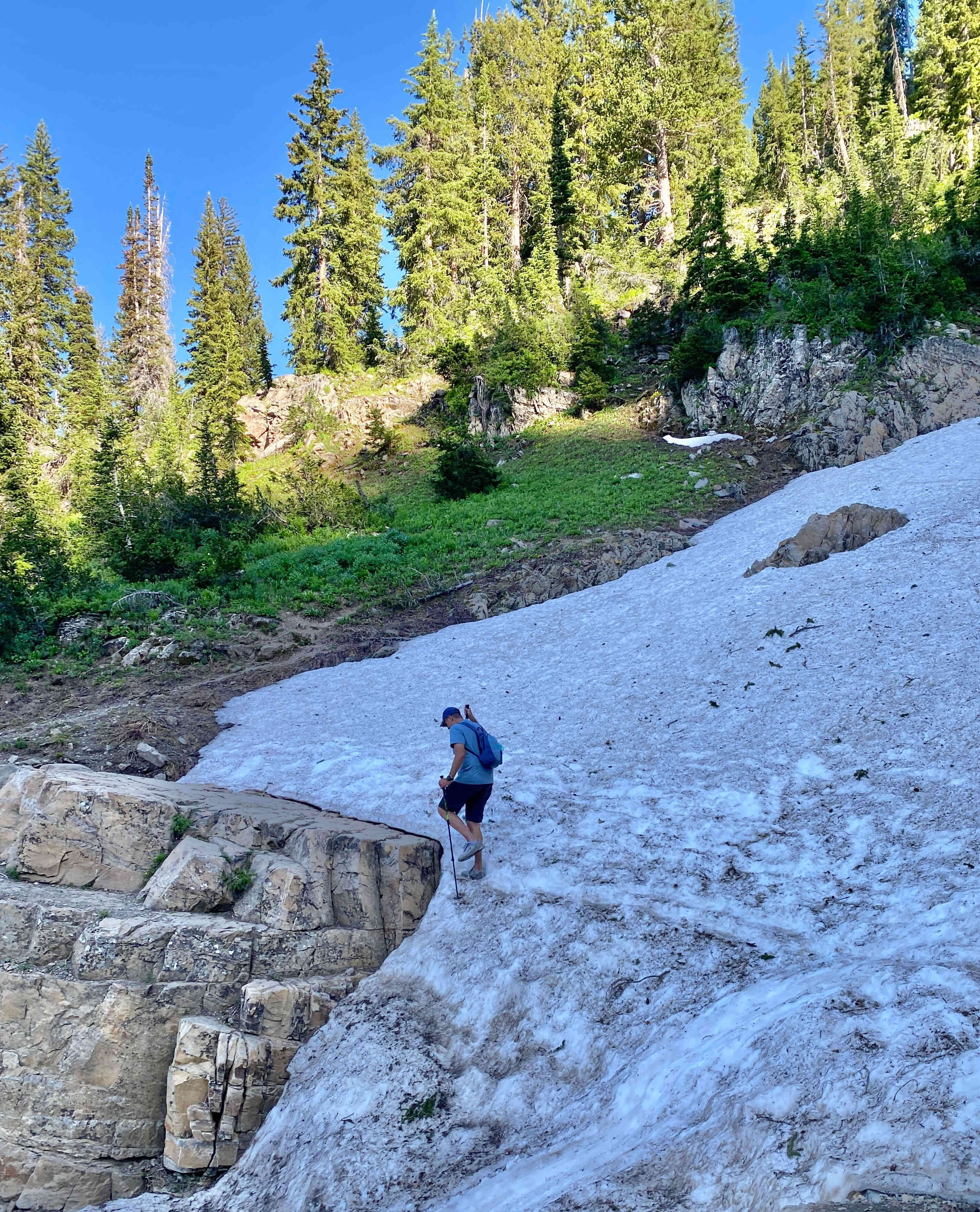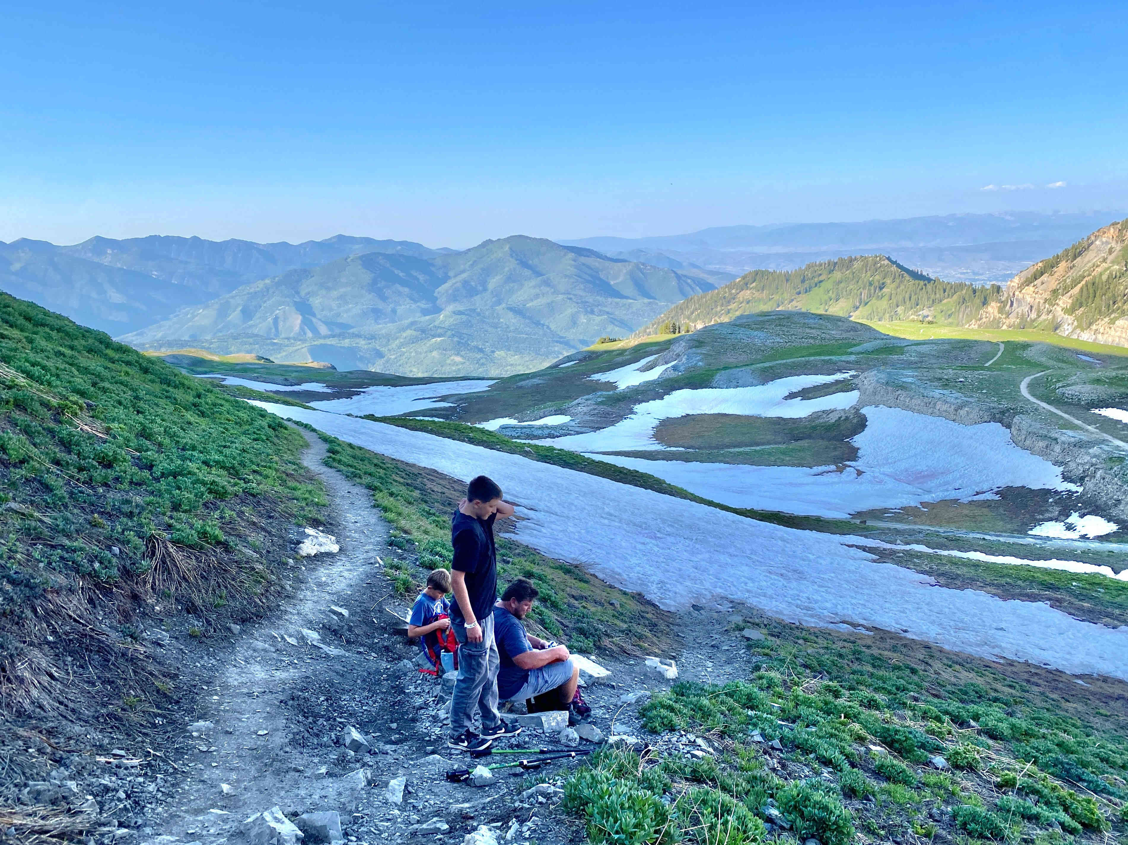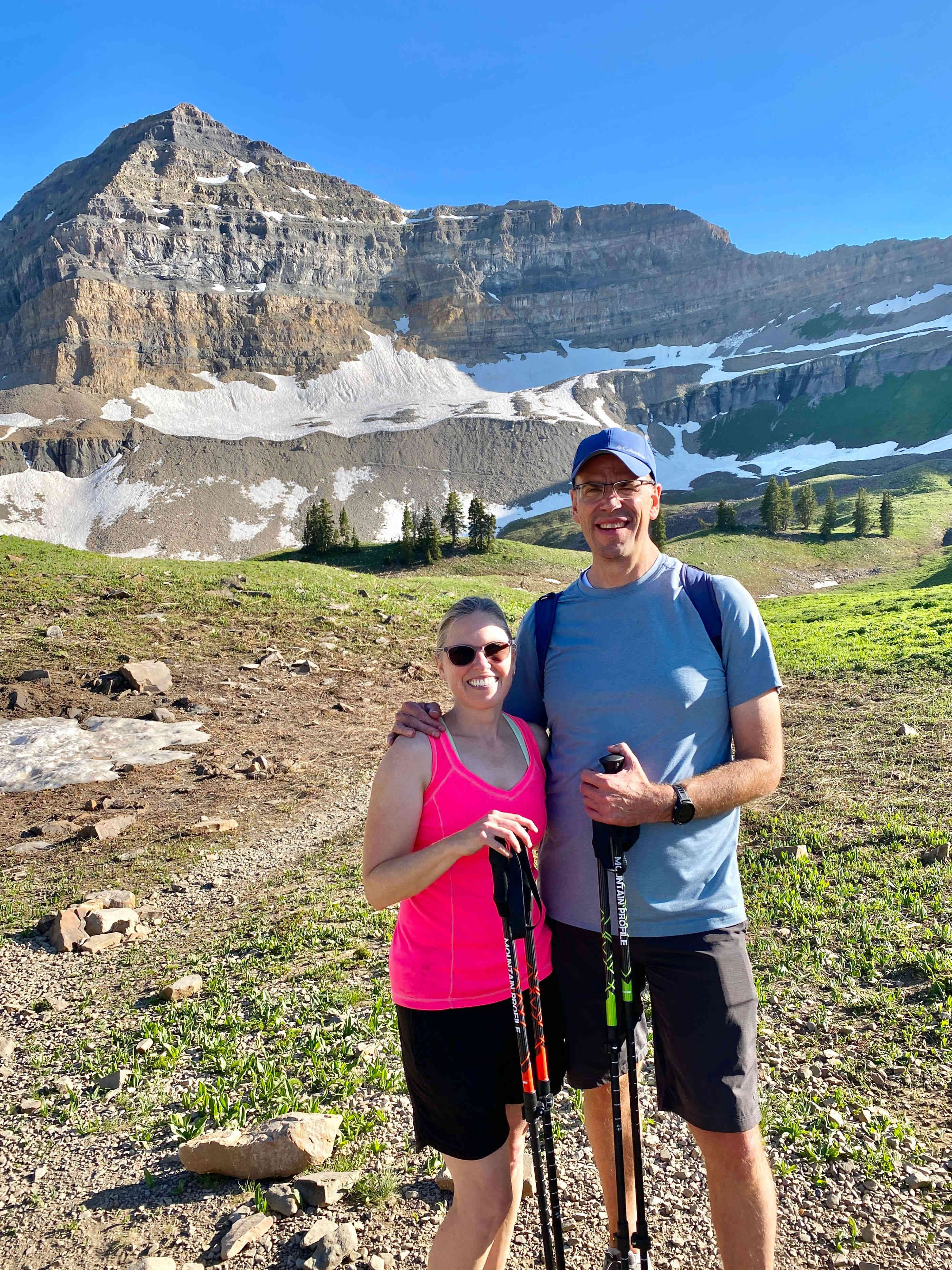 We had a wonderful visit to Utah a couple of weeks ago! One of the first things Brad and I did was hike Timp. Brad was unable to hike Timp a year ago due to work obligations, so that was one of the first things on our list when visiting Utah this summer. We arrived to Utah early morning on a Friday and met Matt and boys at 2:00 pm that Friday afternoon at the American Fork canyon Timpanookie Trailhead. It took us over 12 hours to hike to the summit and back, longer than last year because of all the snow making the hiking more difficult, and causing us to wander off the trail multiple times.