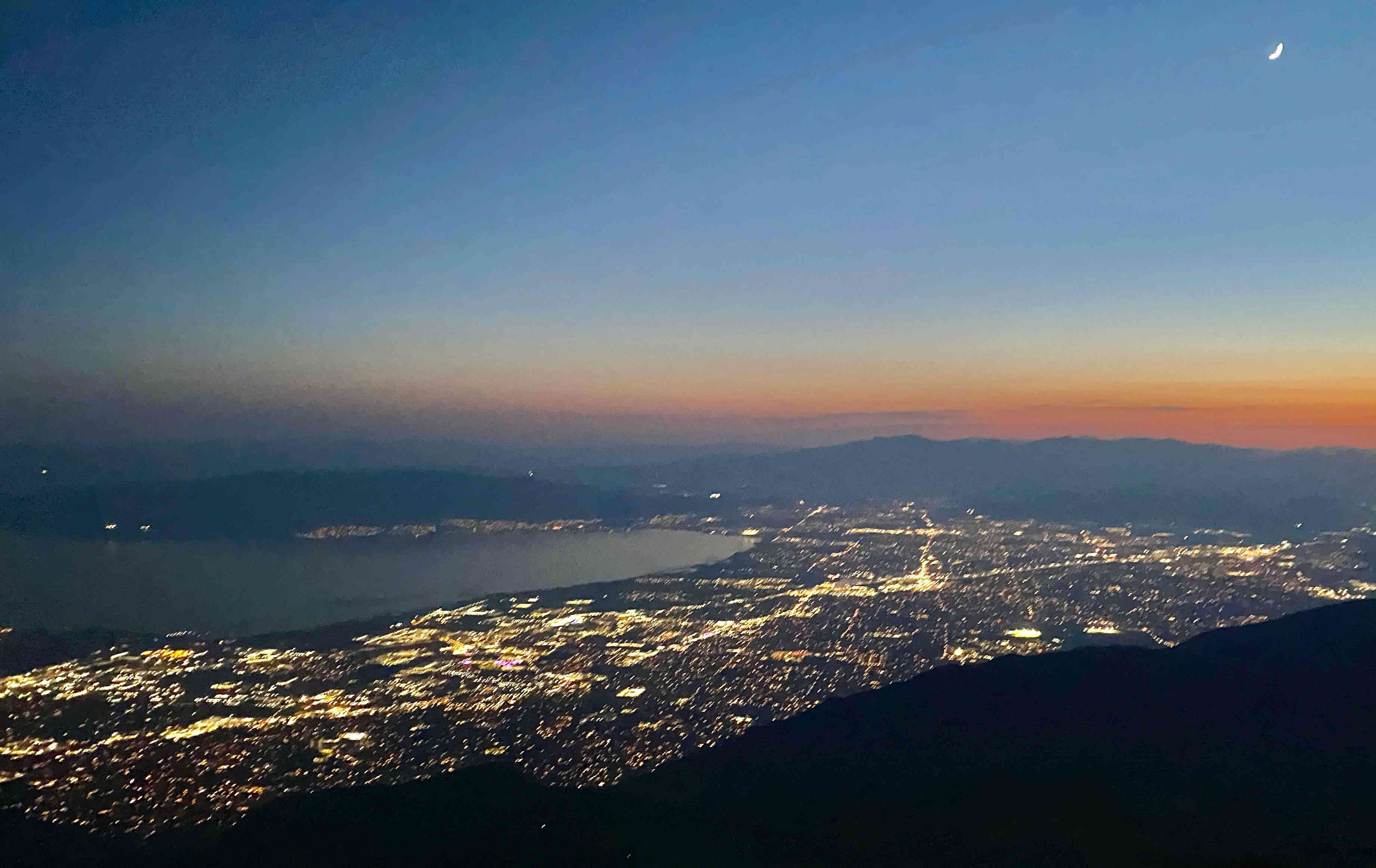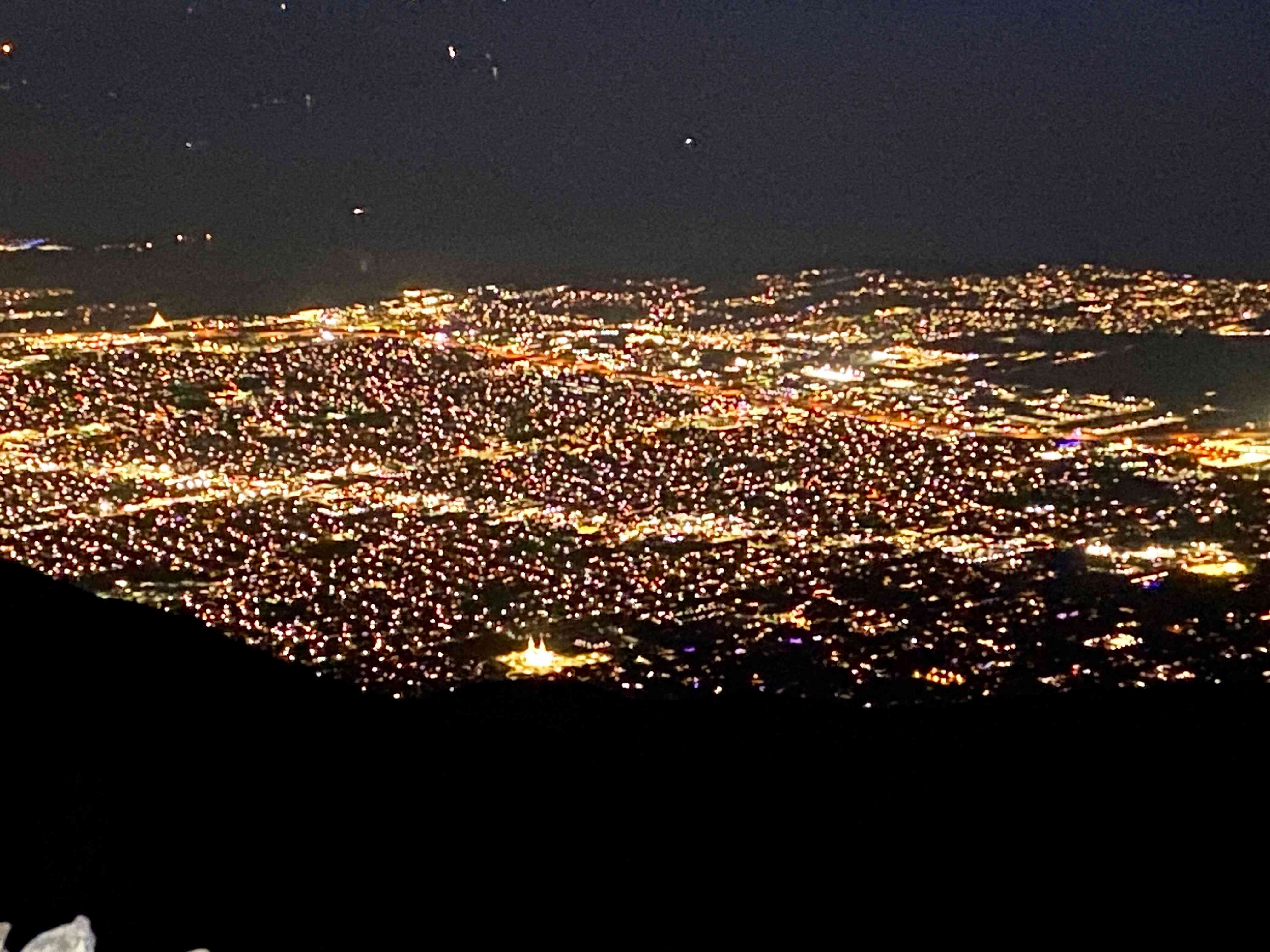 By the time we made it back to the saddle and retrieved our walking sticks, it was completley dark, except for the bright valley lights! Unfortunately, we didn't have the valley lights nor the light of the moon for the long trek down, but we all made it safely, arriving at the trailhead parking lot about 3:00 am!