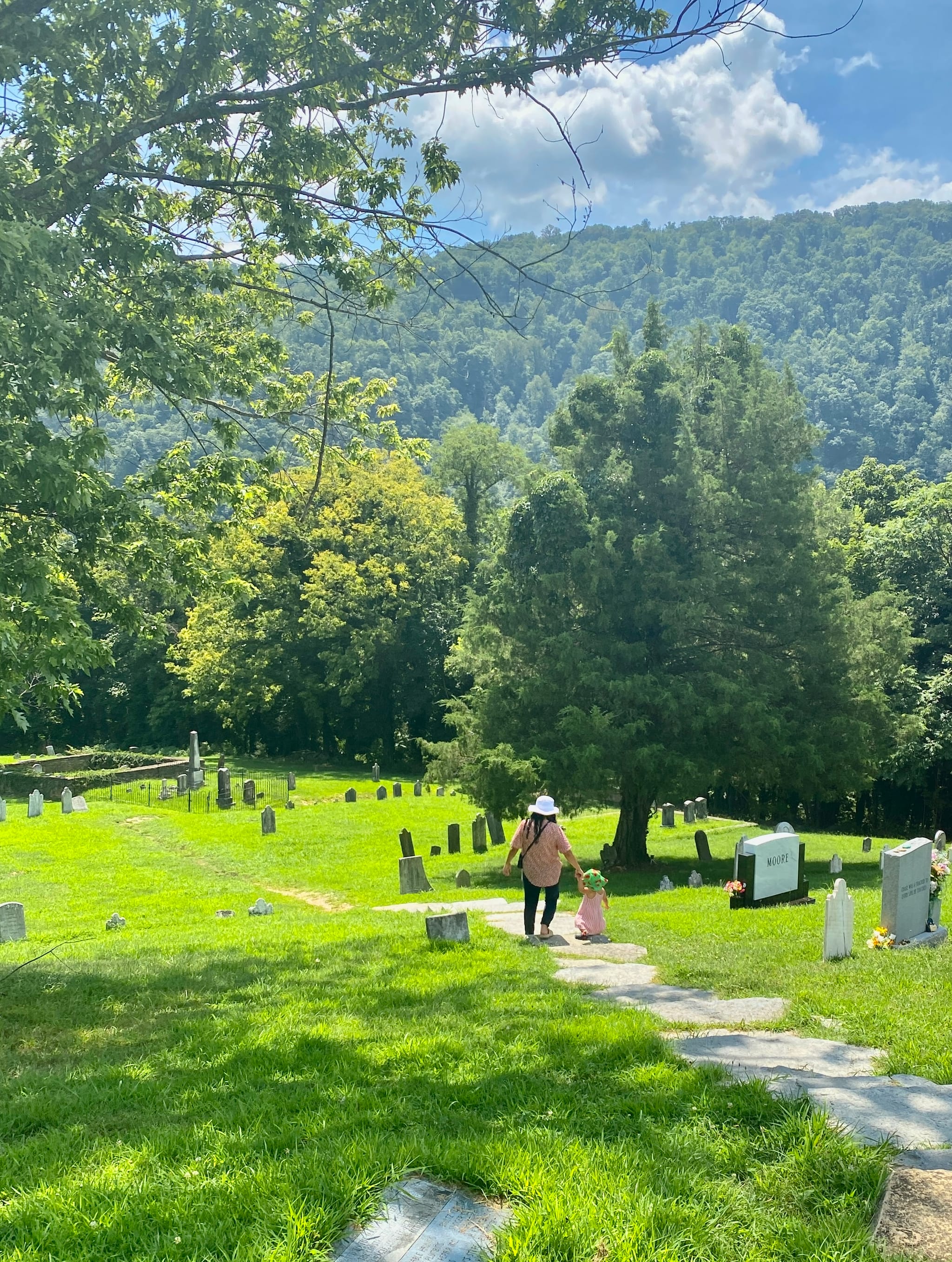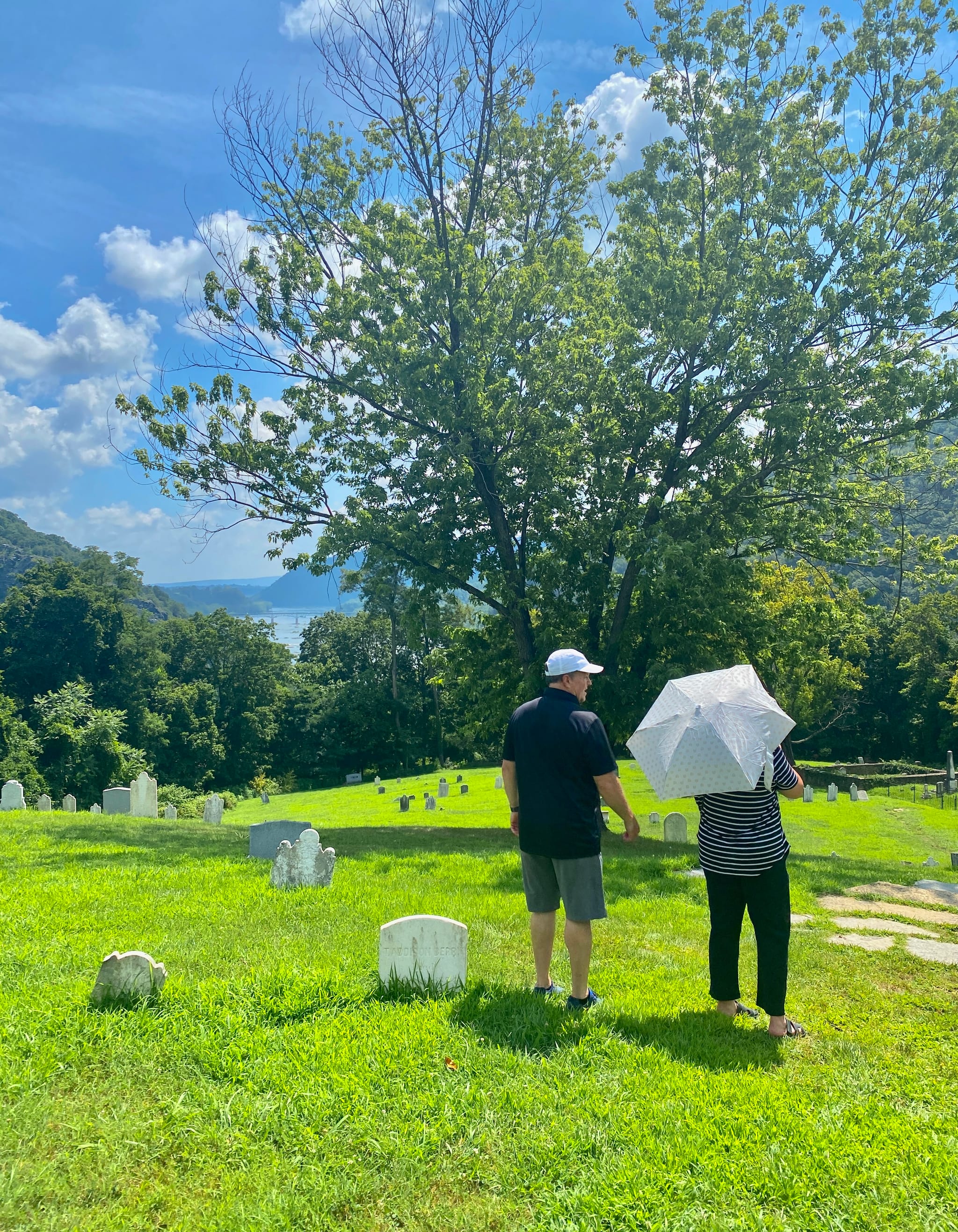 Walking to Harper's Ferry Cemetery, one of our favorite places because it is so old and picturesque, and has nice views of the Rivers below.