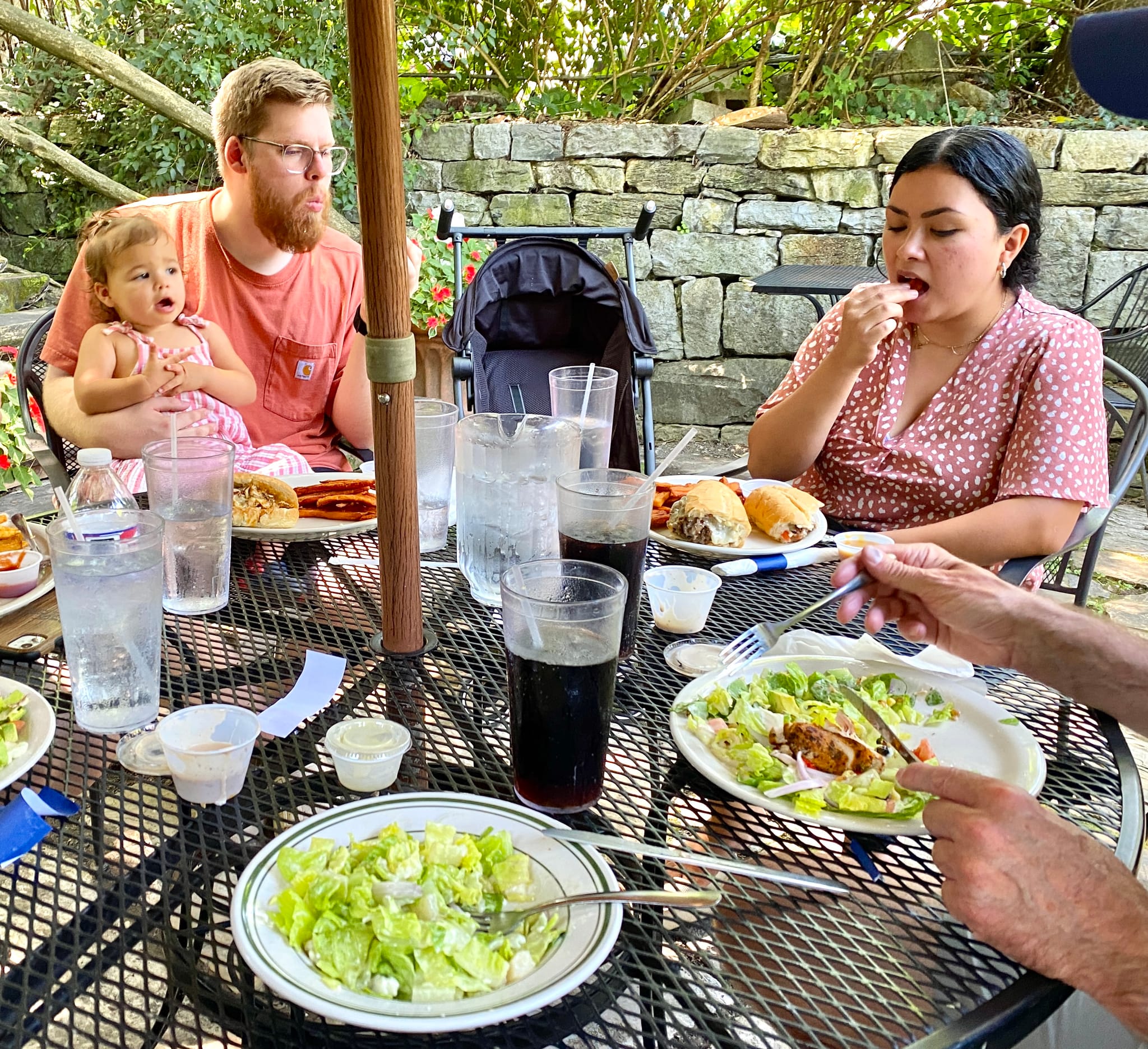 We've always wanted to eat at the Blue Moon Cafe because of the beautiful outdoor seating right next to the stream, so this time we did!