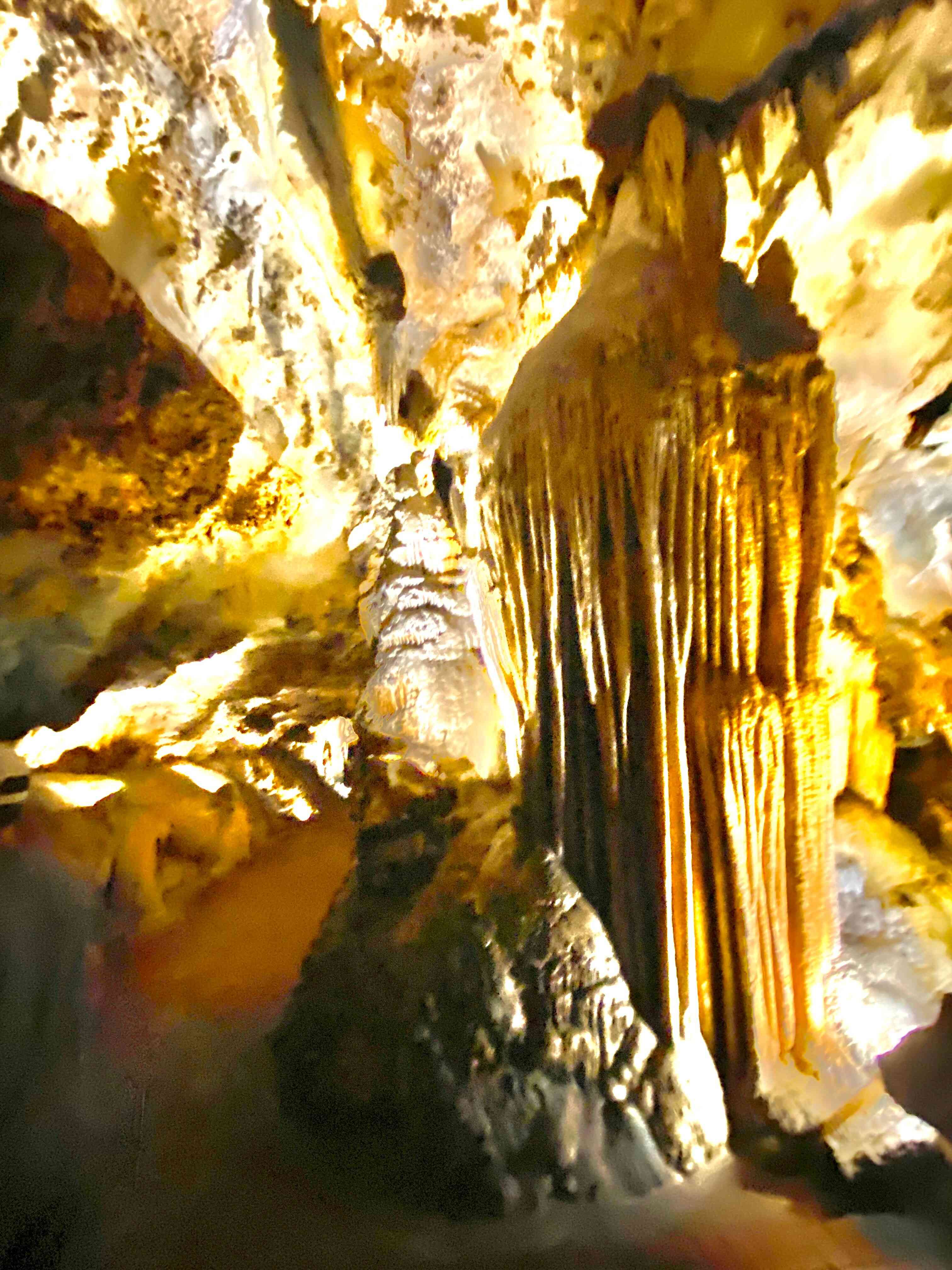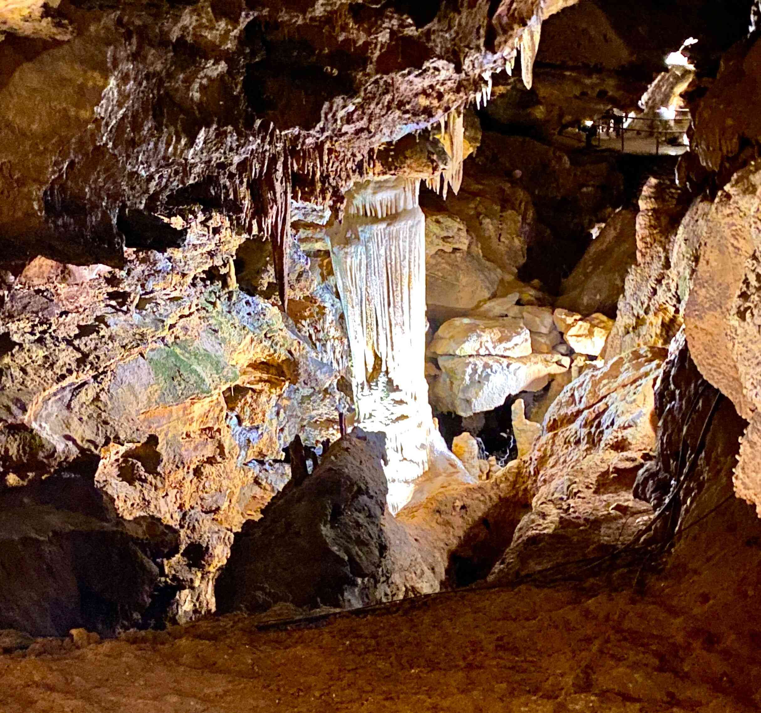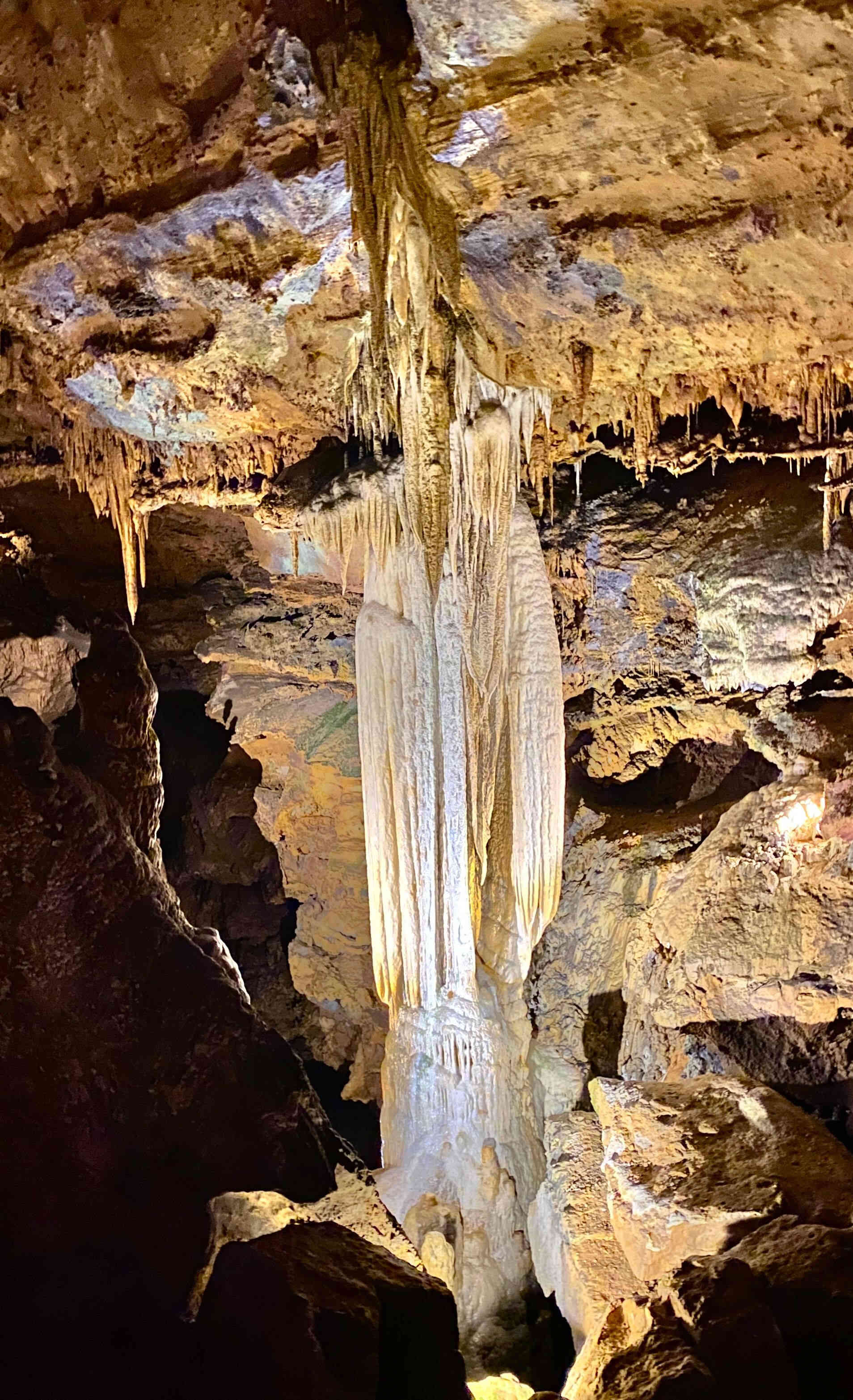 Dominating Giant's Hall: (164 feet below the surface and deepest part of the caverns) at a height of 47 feet, this column is the tallest in the cave and an example of stalactites & stalagmites growing together.