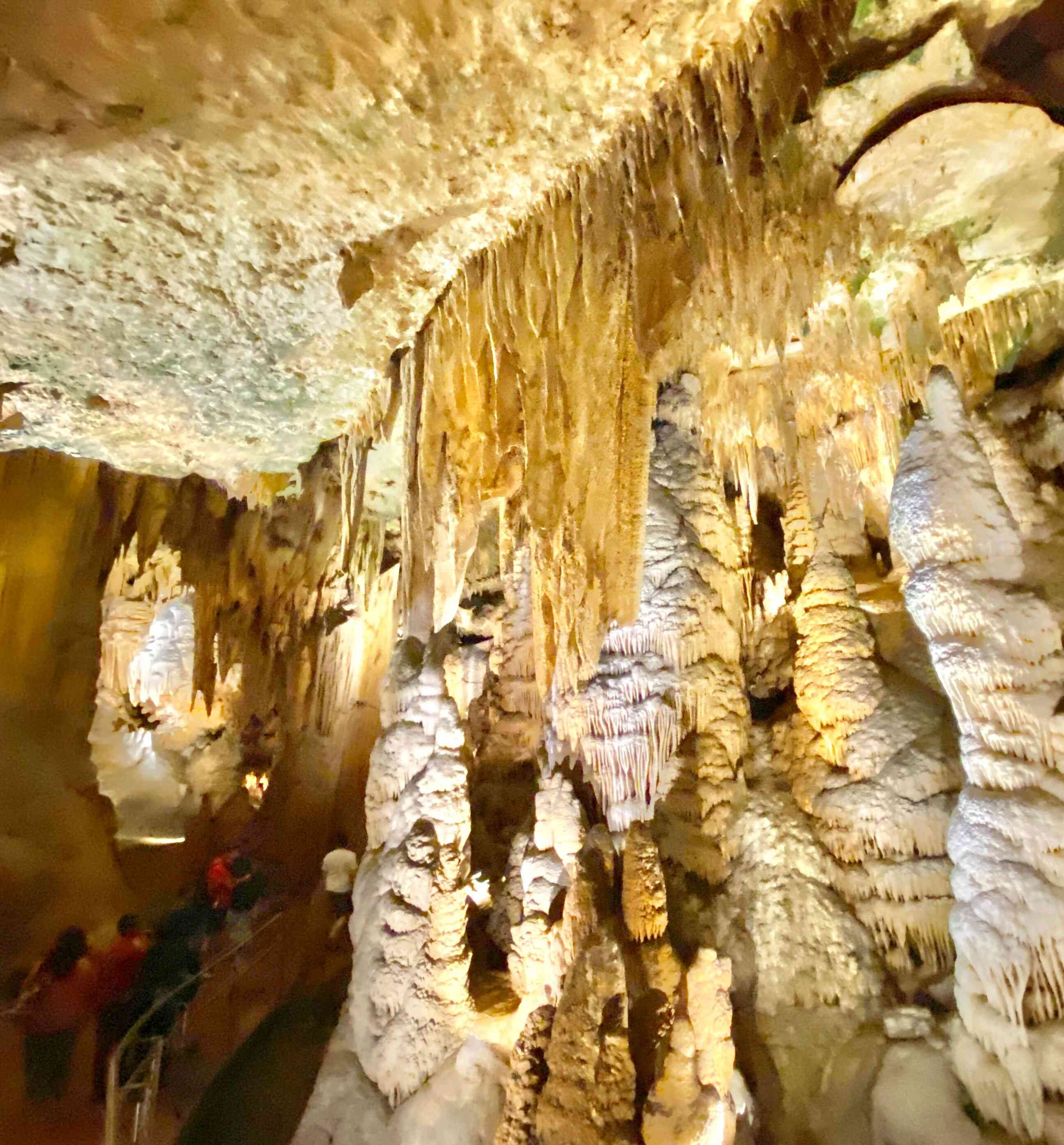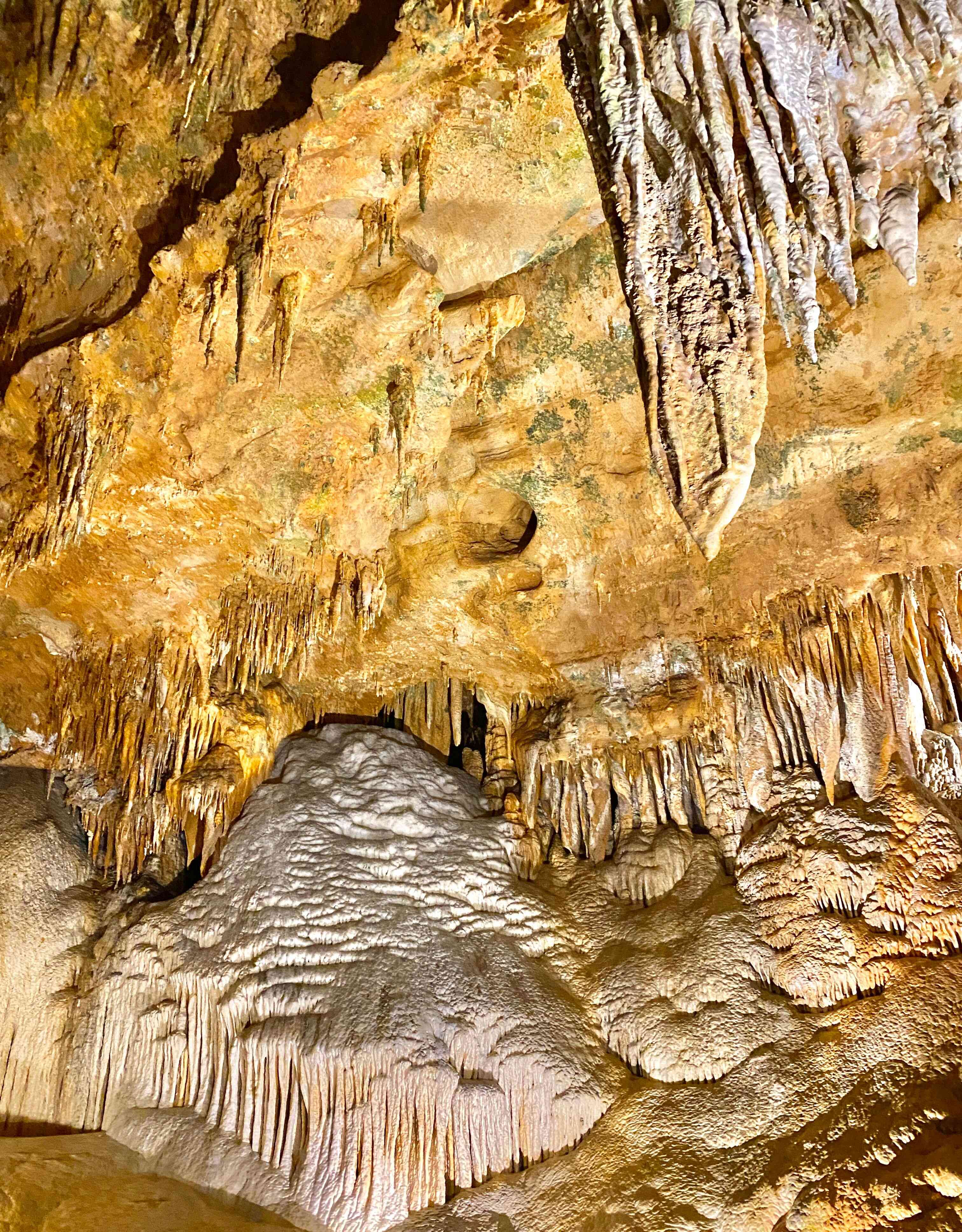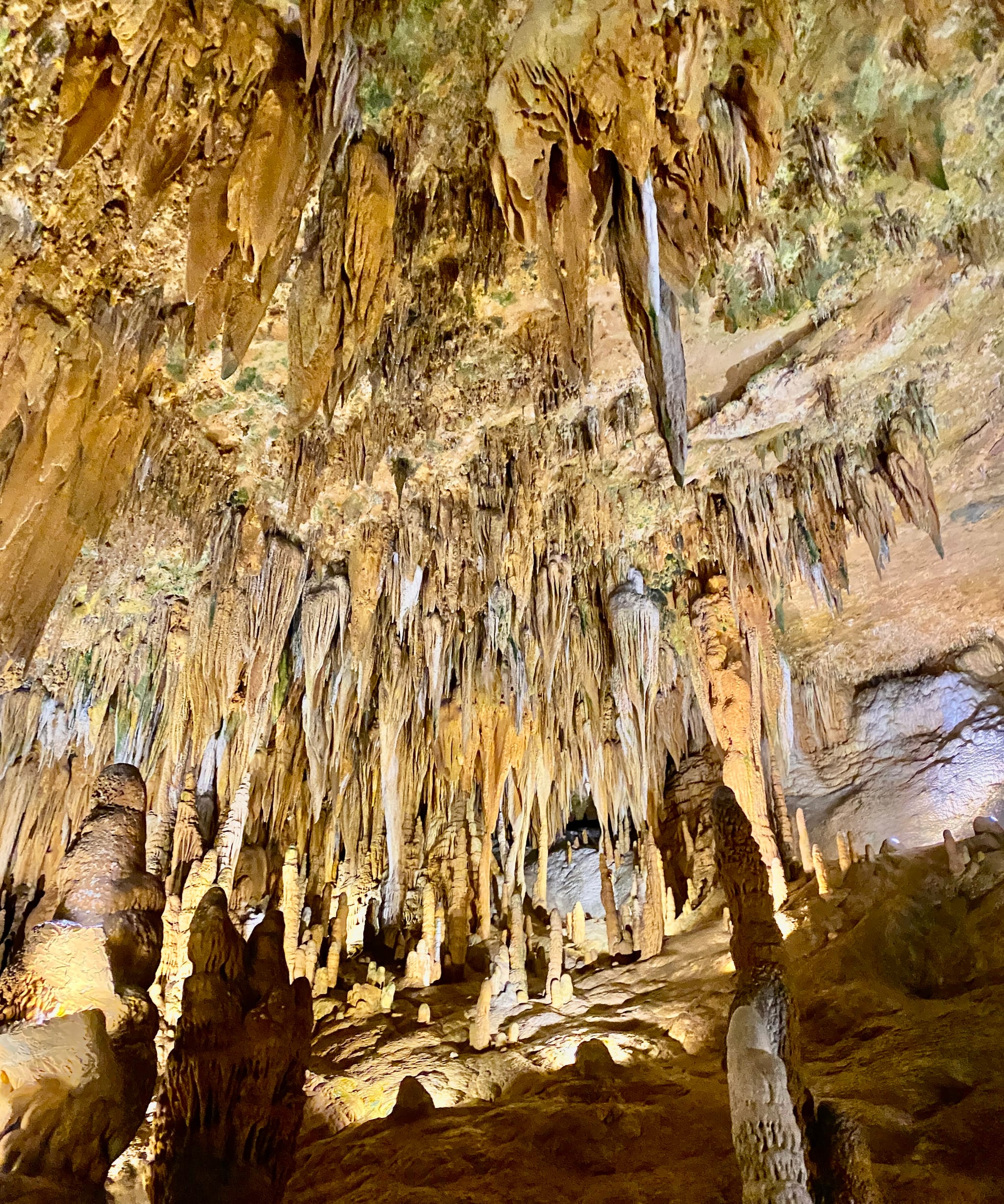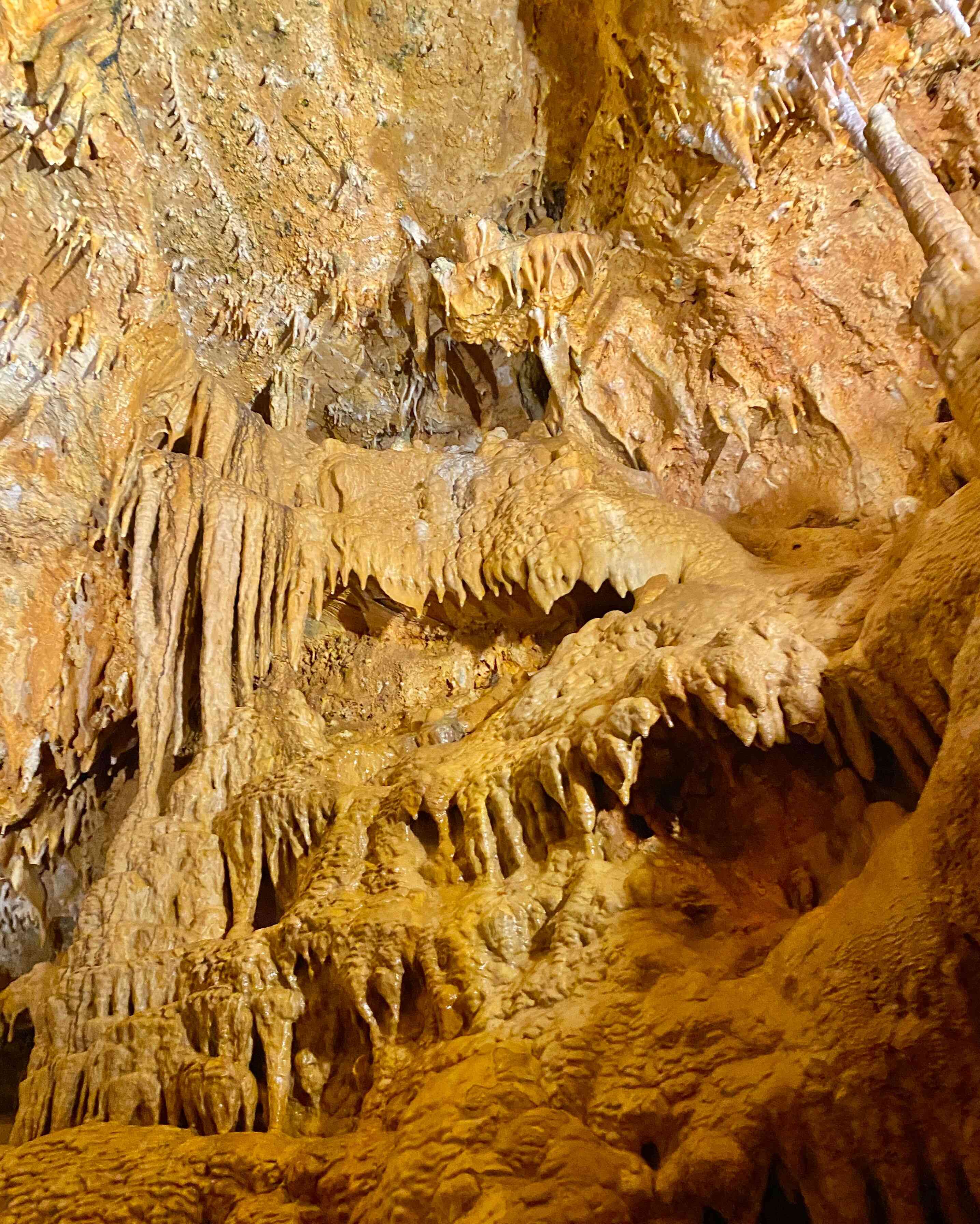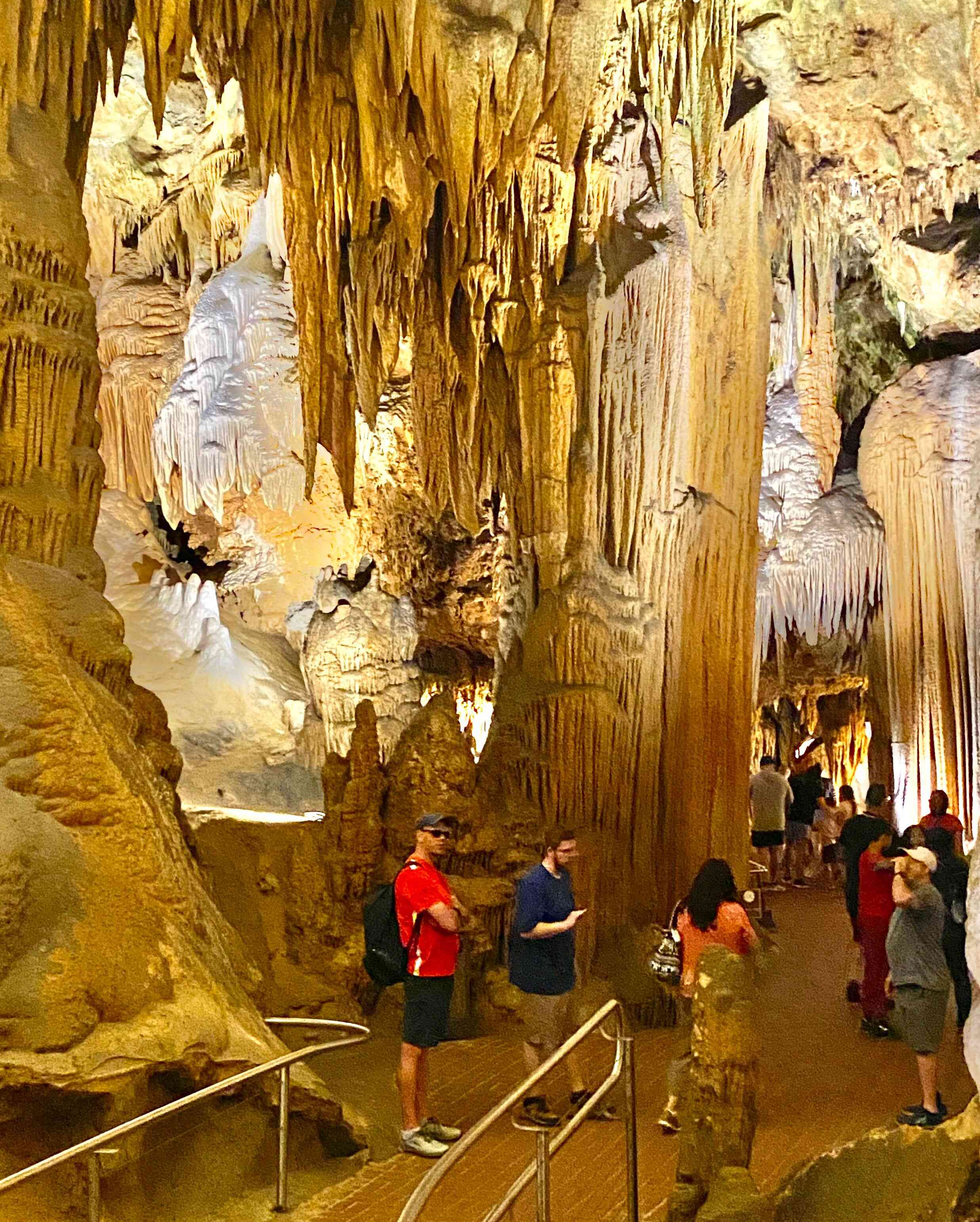 The one-hour tour (we spent longer because there were just too many amazing formations to see) is about a mile and a quarter long. It is an active cave meaning the water continues to drip and make formations. Federal and state law prohibits people from touching the formations. The Caverns are estimated to be about fifty million years old!