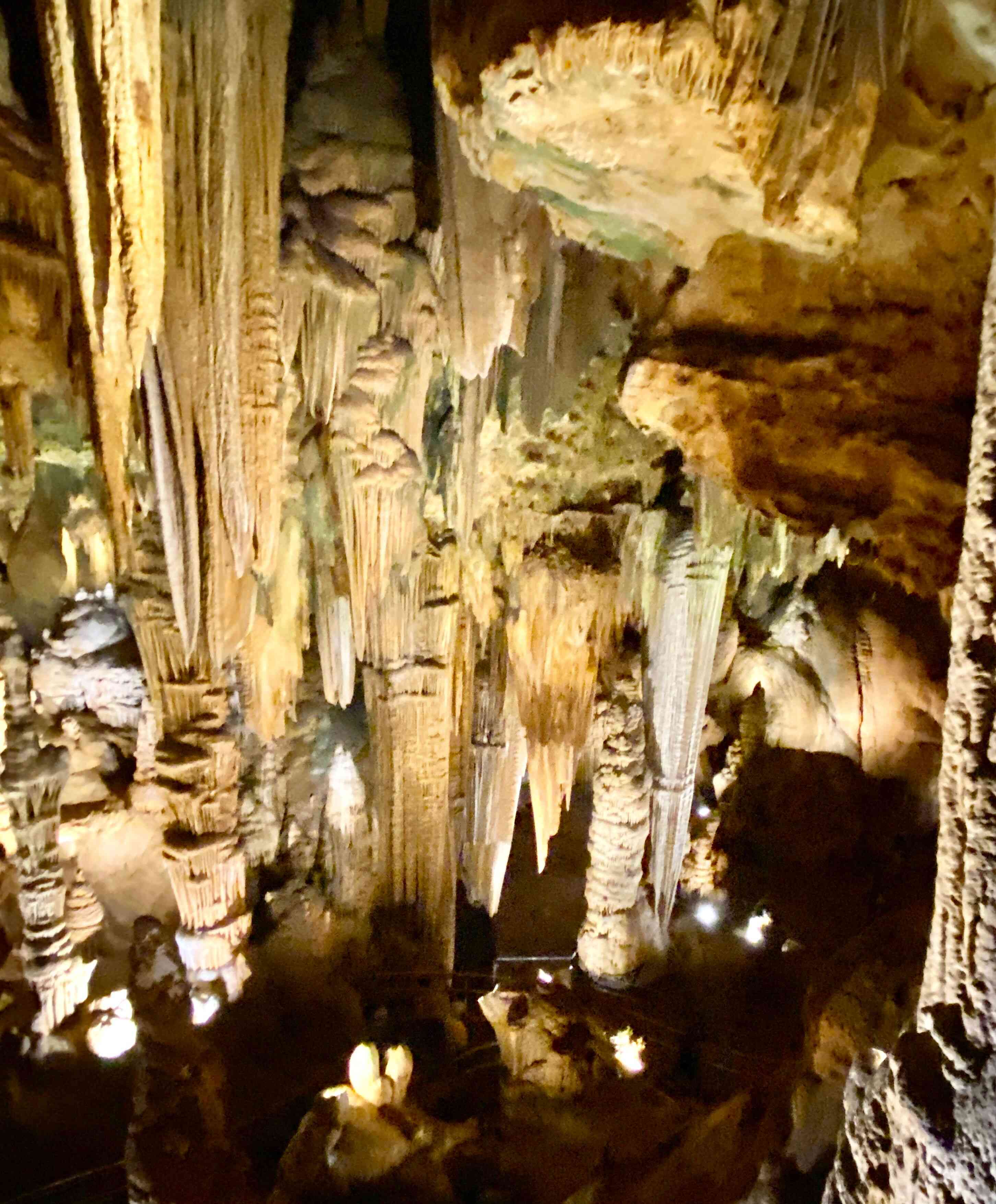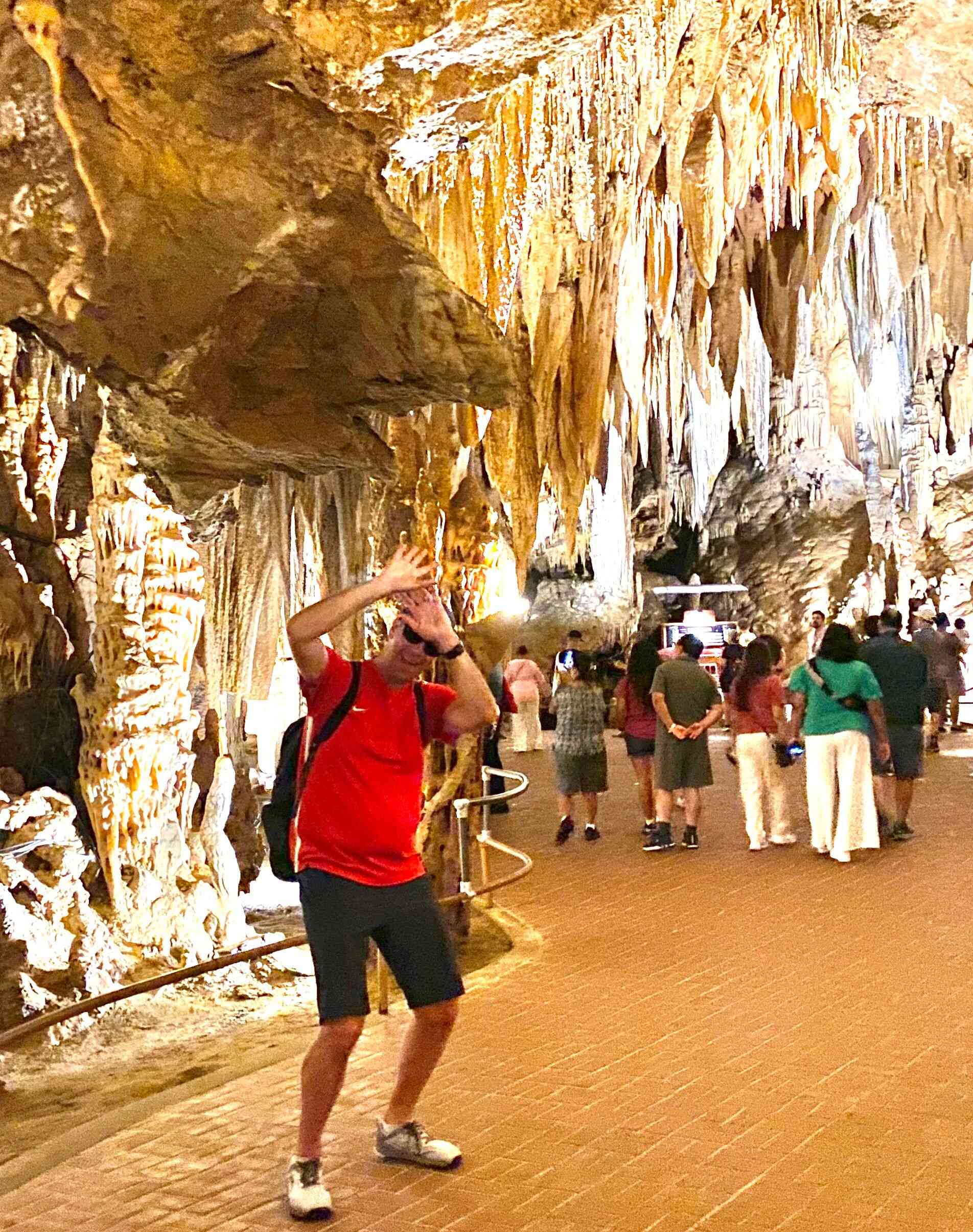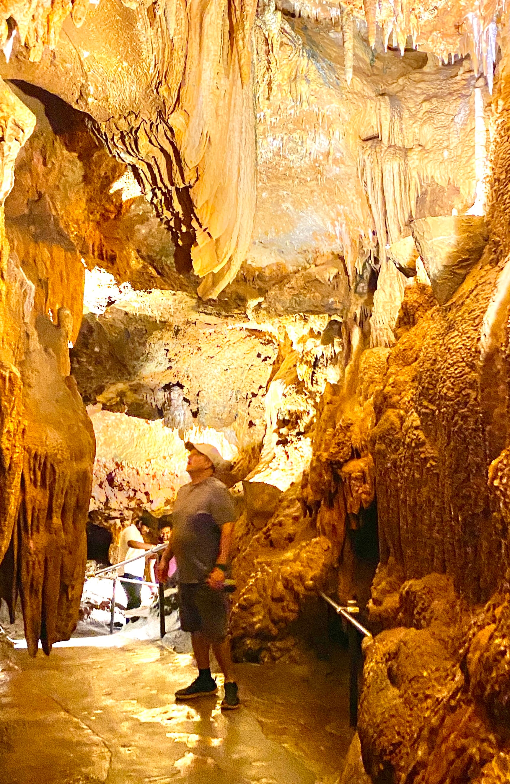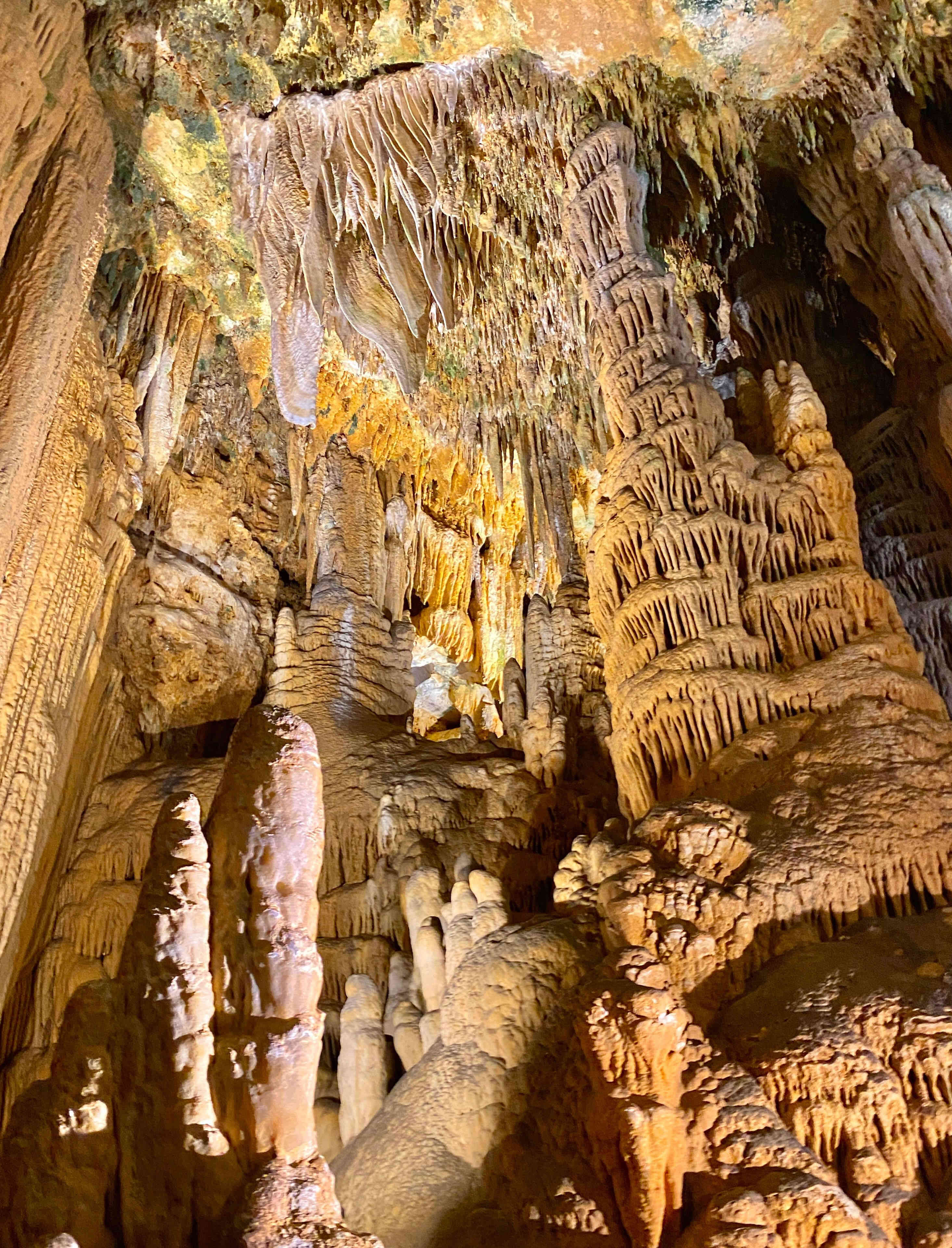 The one-hour tour (we spent longer because there were just too many amazing formations to see) is about a mile and a quarter long. It is an active cave meaning the water continues to drip and make formations. Federal and state law prohibits people from touching the formations. The Caverns are estimated to be about fifty million years old!