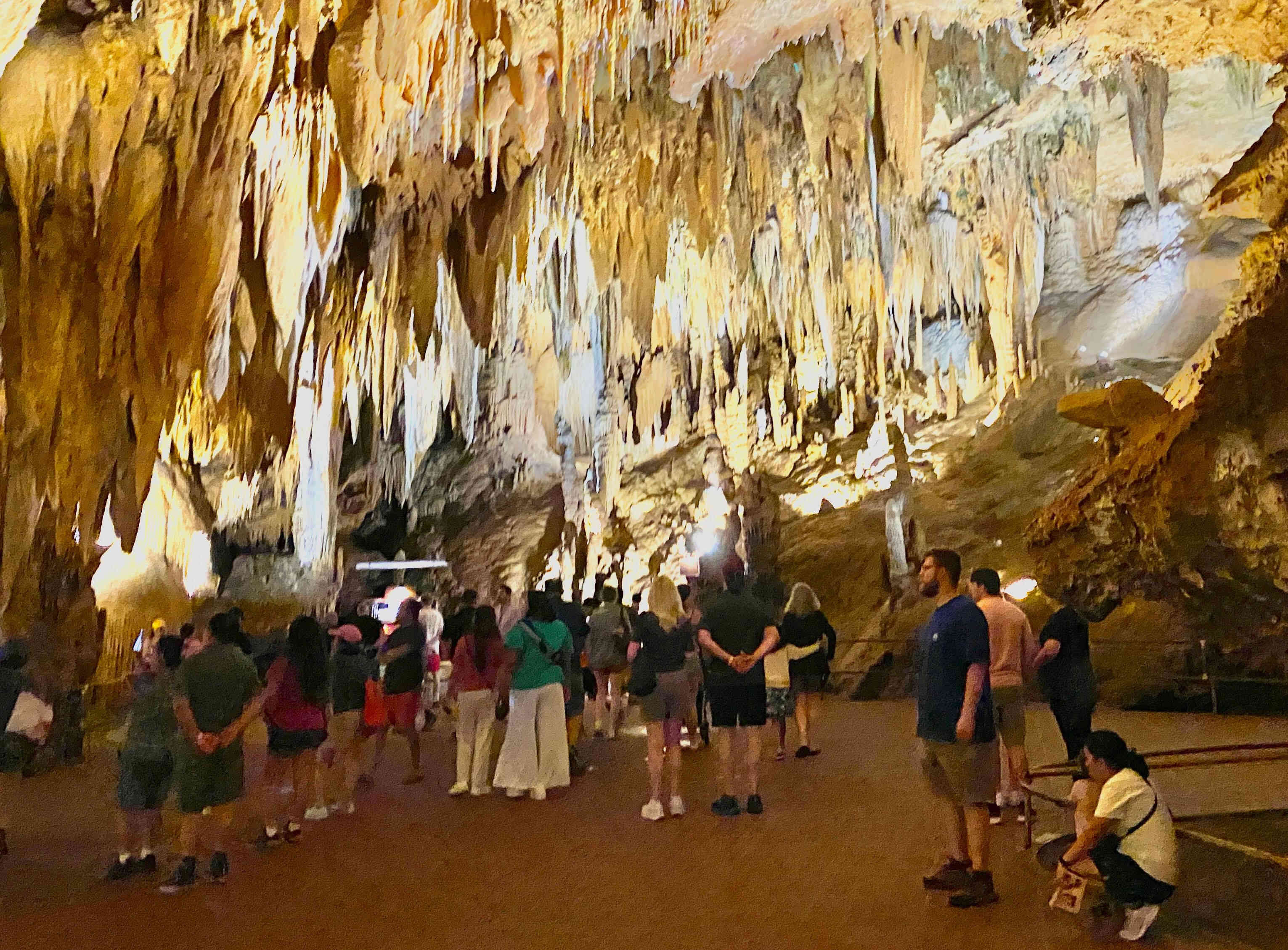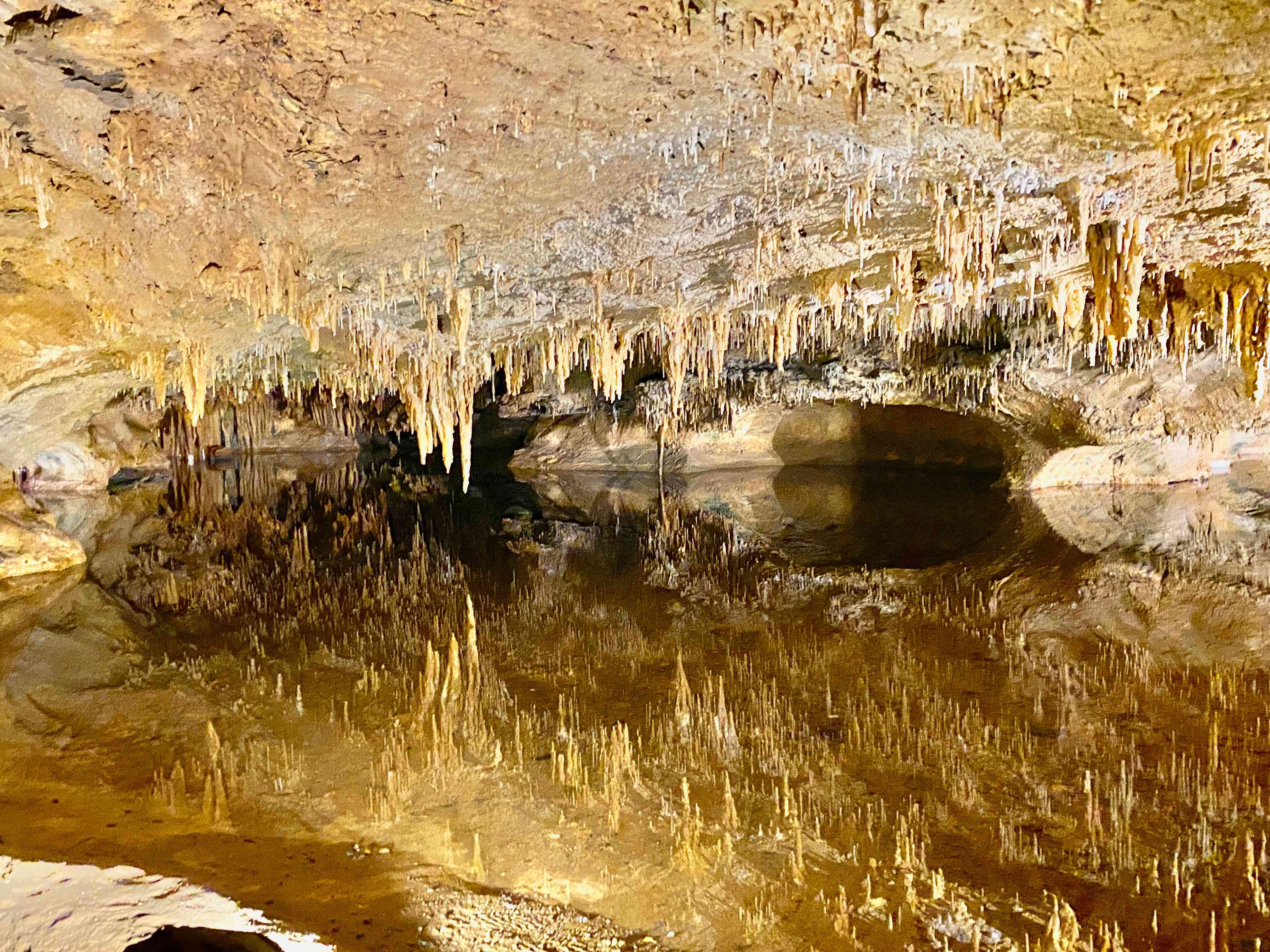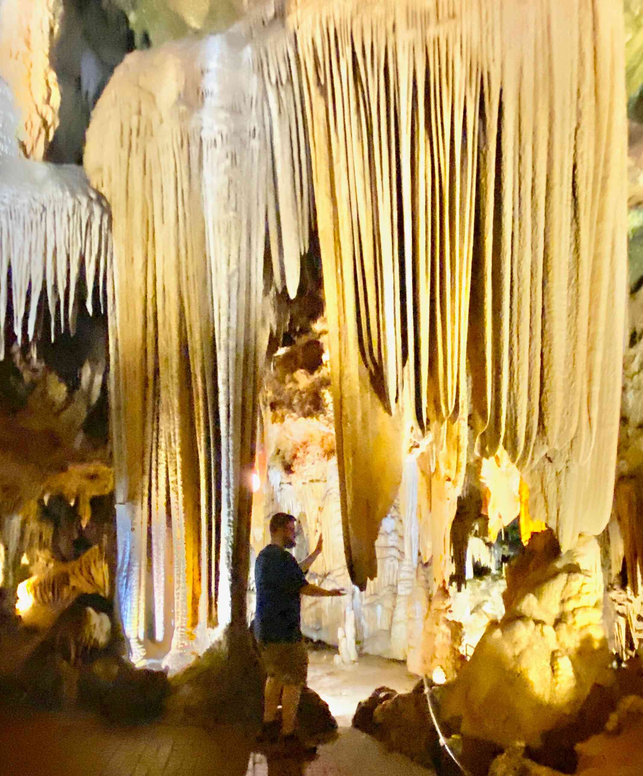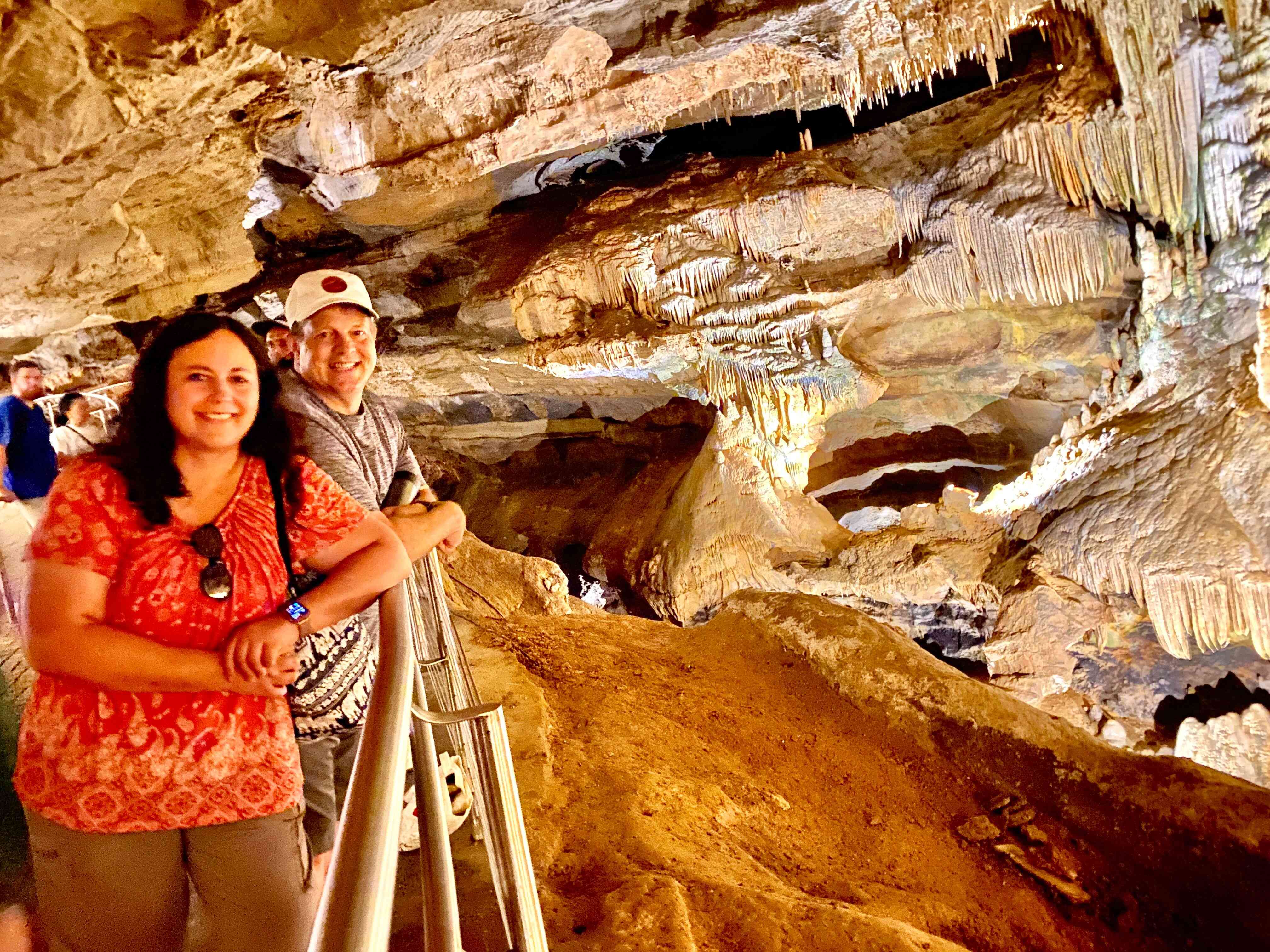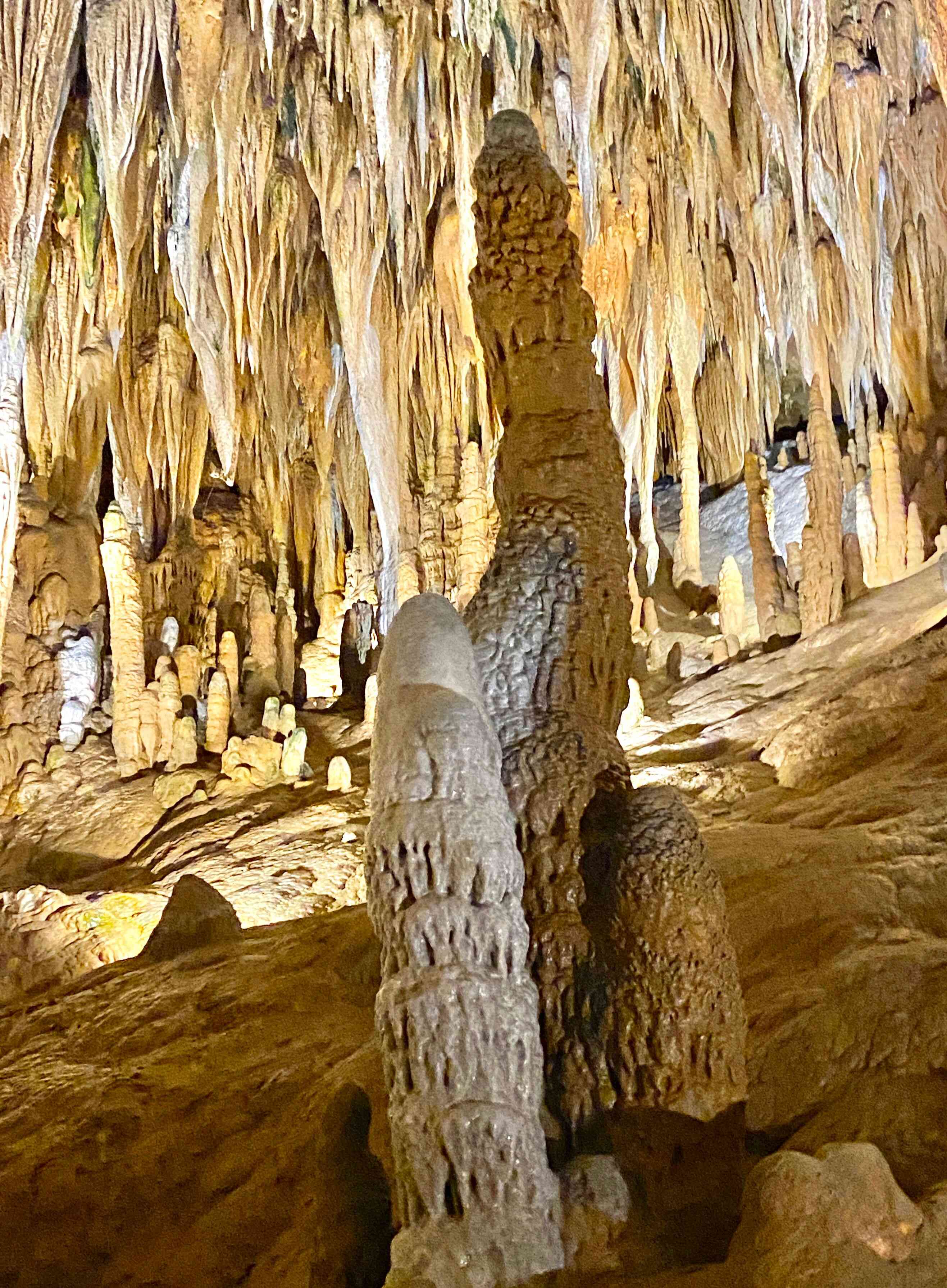 The one-hour tour (we spent longer because there were just too many amazing formations to see) is about a mile and a quarter long. It is an active cave meaning the water continues to drip and make formations. Federal and state law prohibits people from touching the formations. The Caverns are estimated to be about fifty million years old!