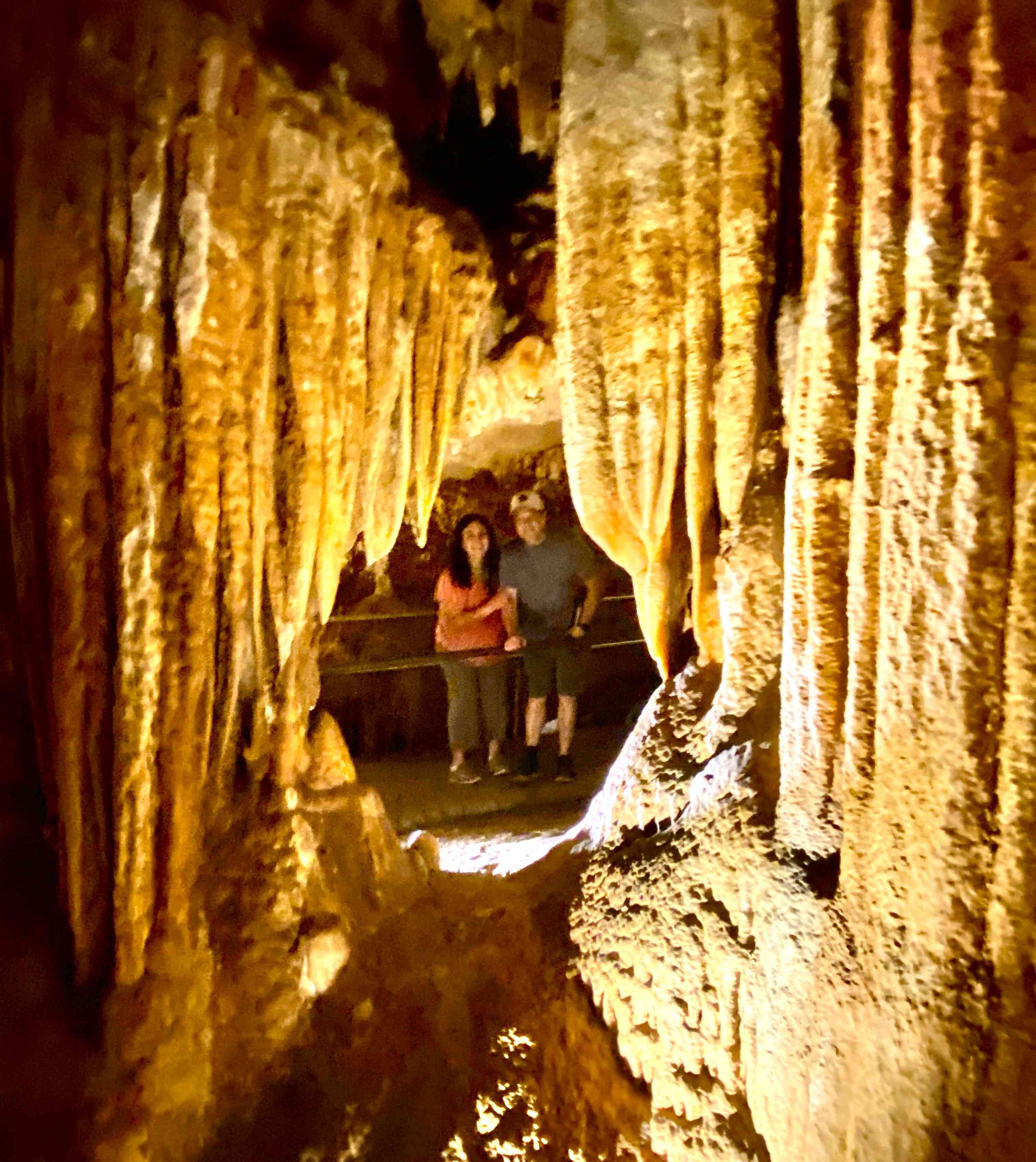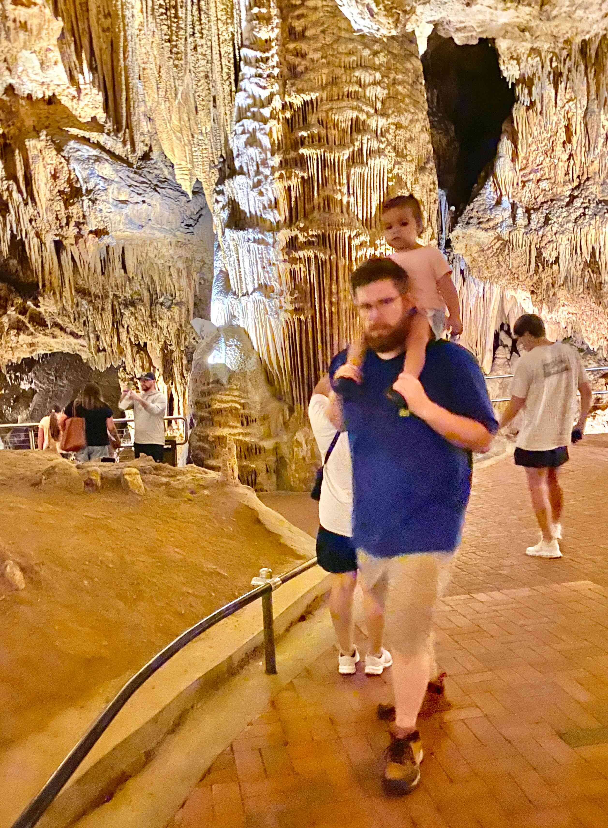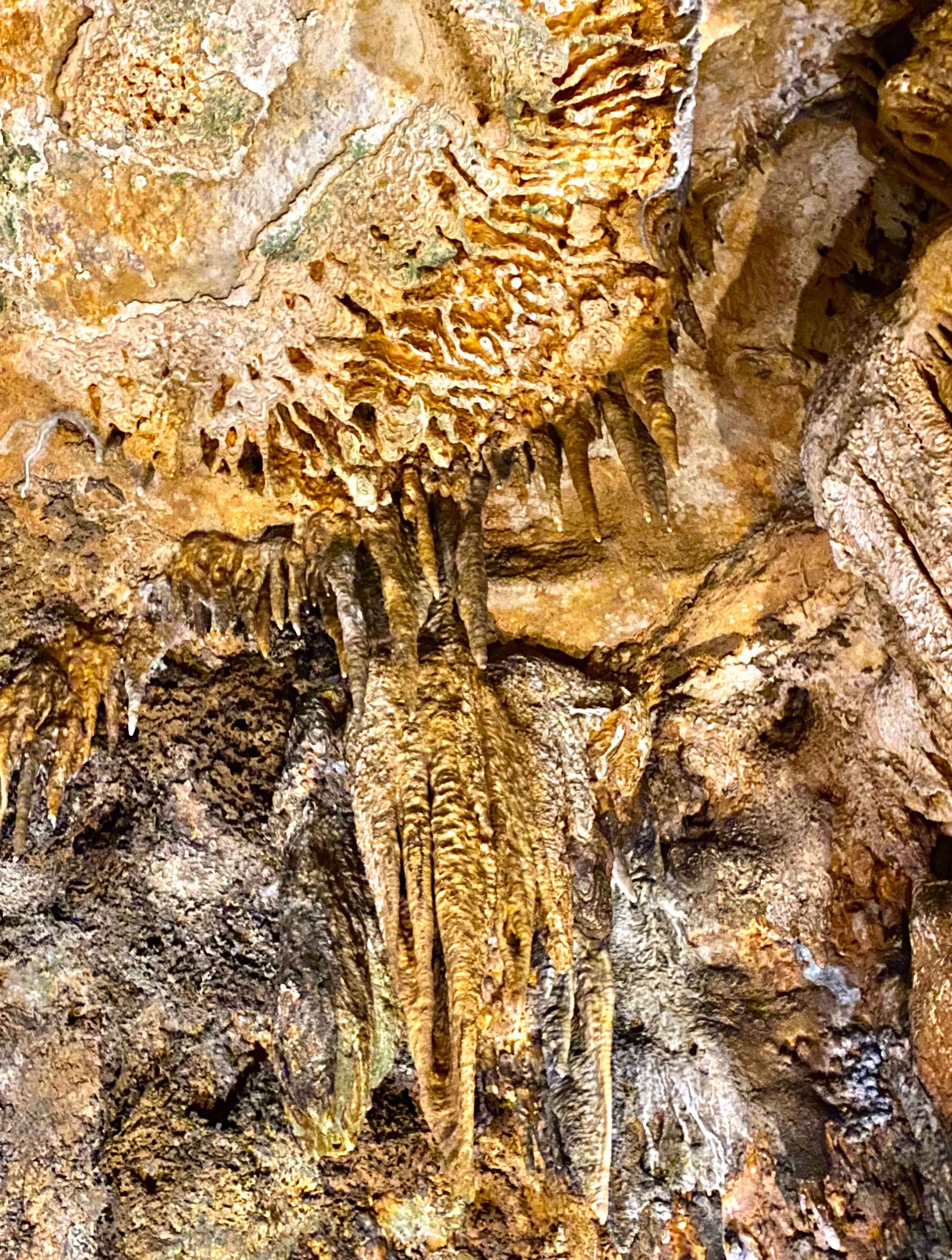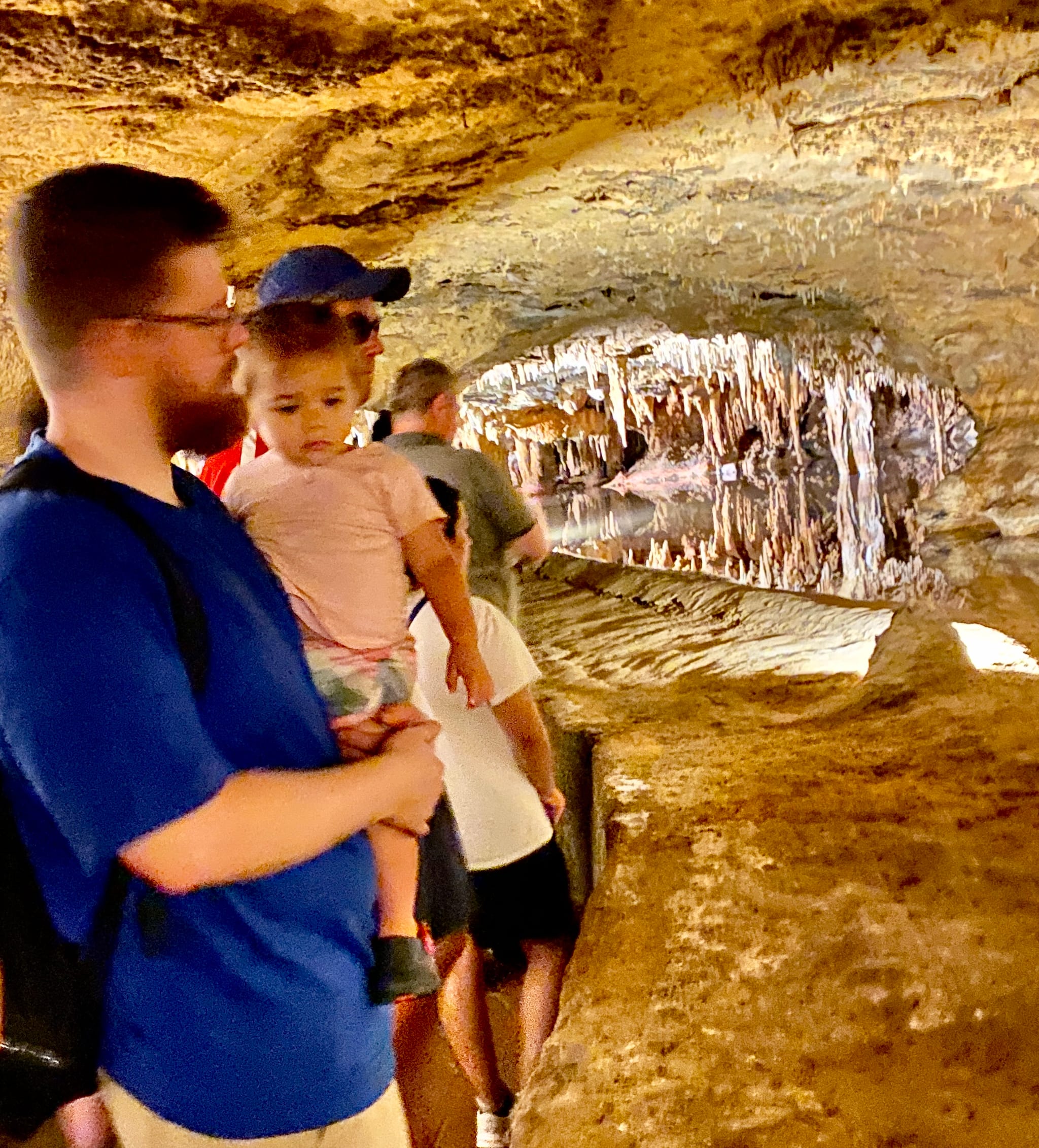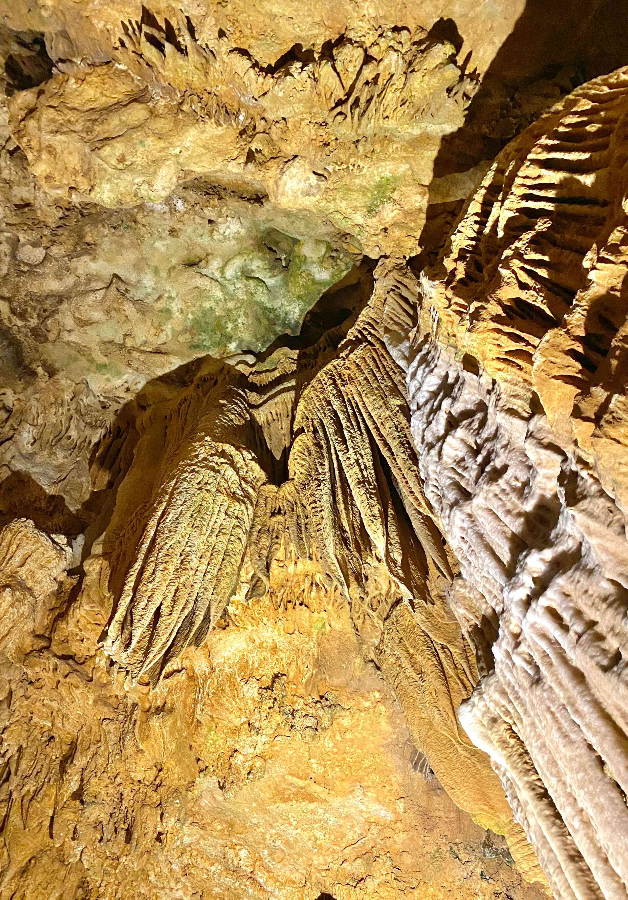 The one-hour tour (we spent longer because there were just too many amazing formations to see) is about a mile and a quarter long. It is an active cave meaning the water continues to drip and make formations. Federal and state law prohibits people from touching the formations. The Caverns are estimated to be about fifty million years old!