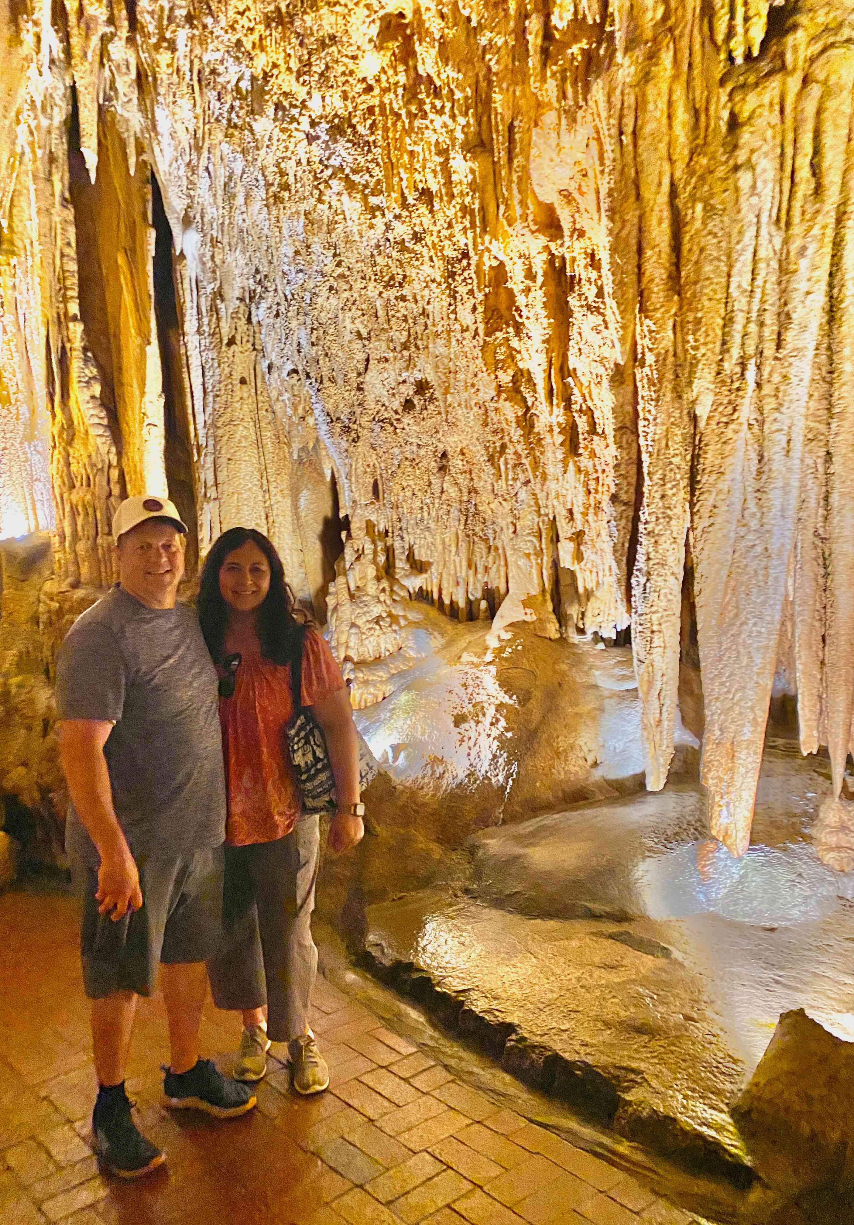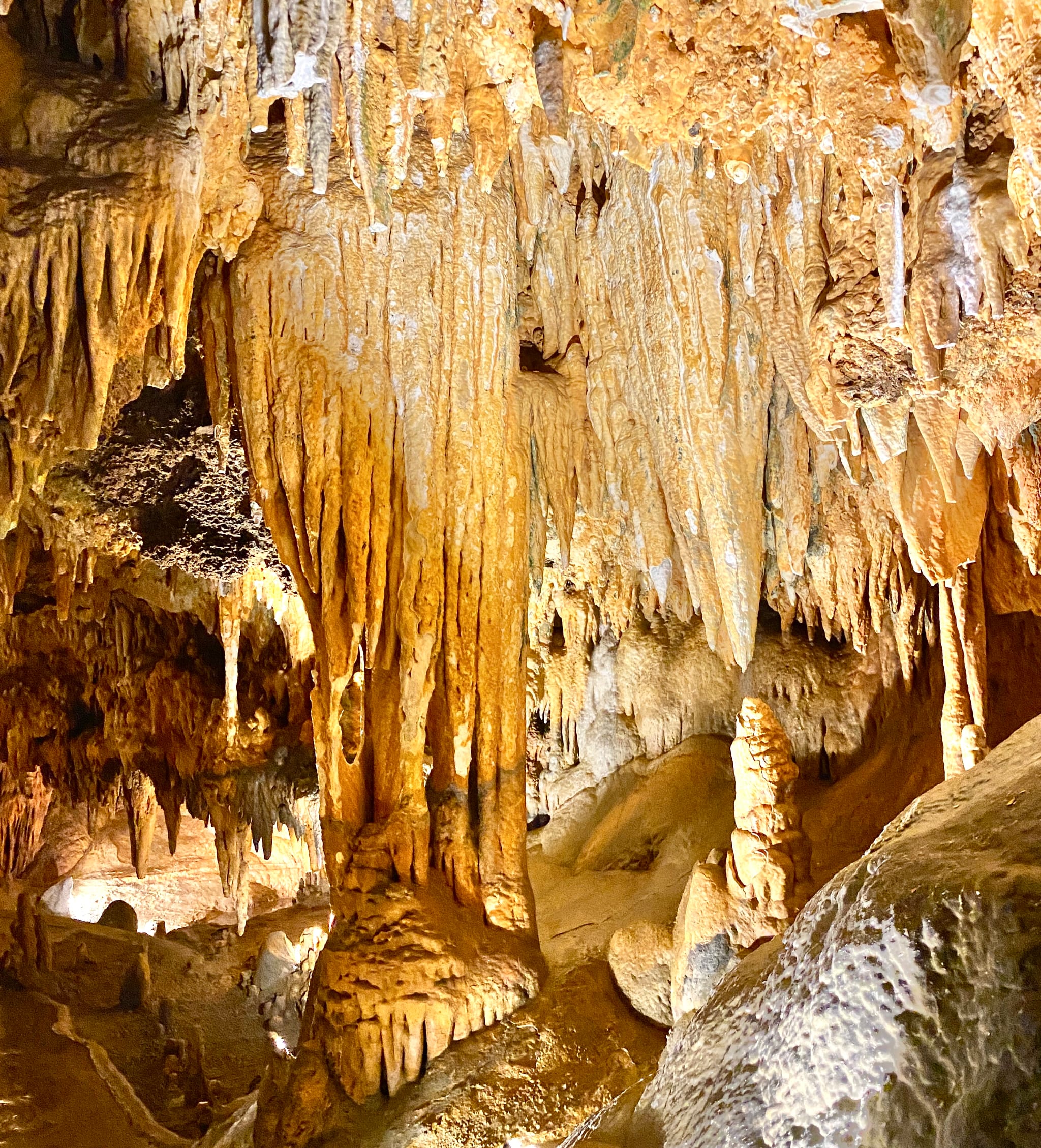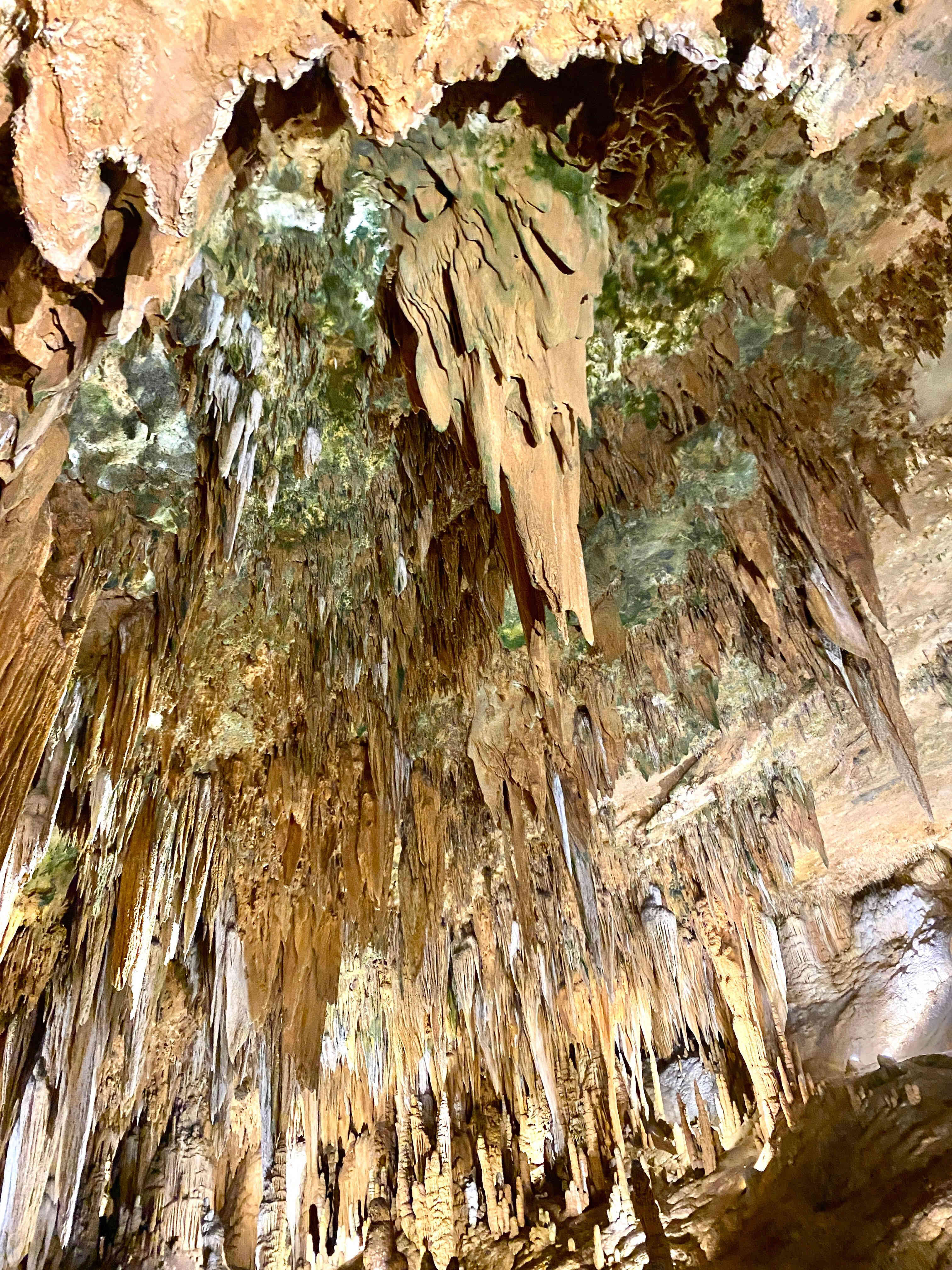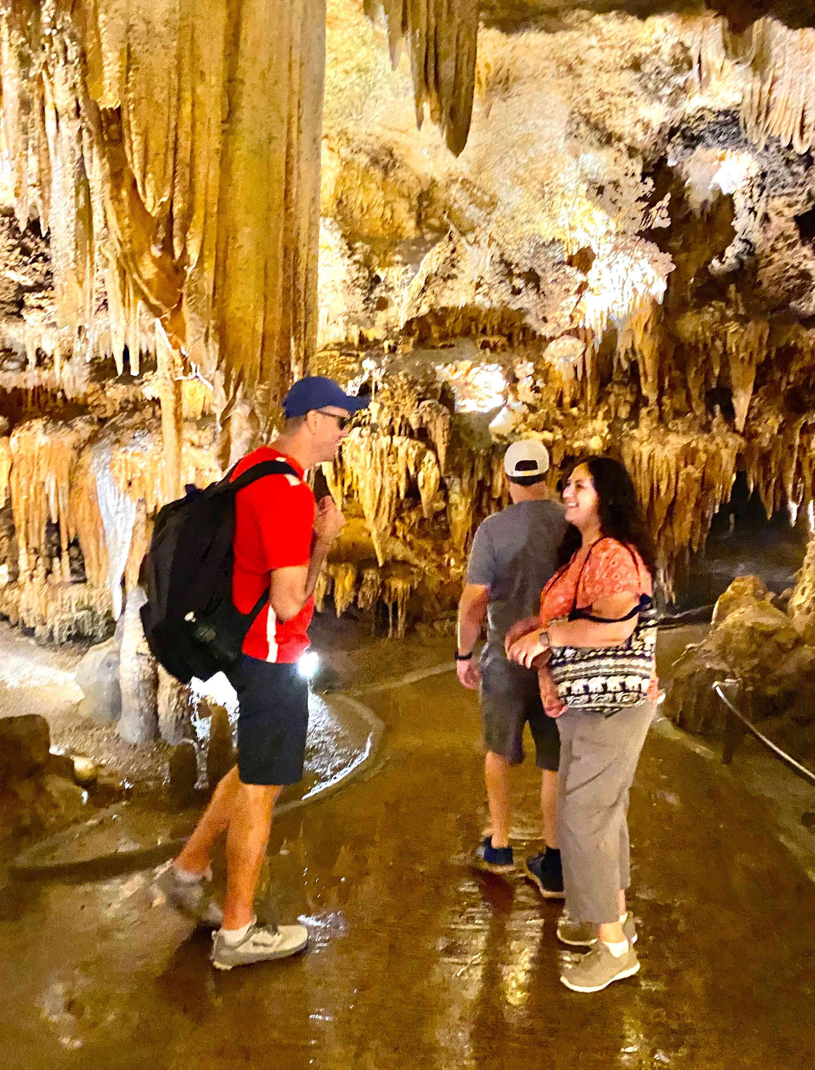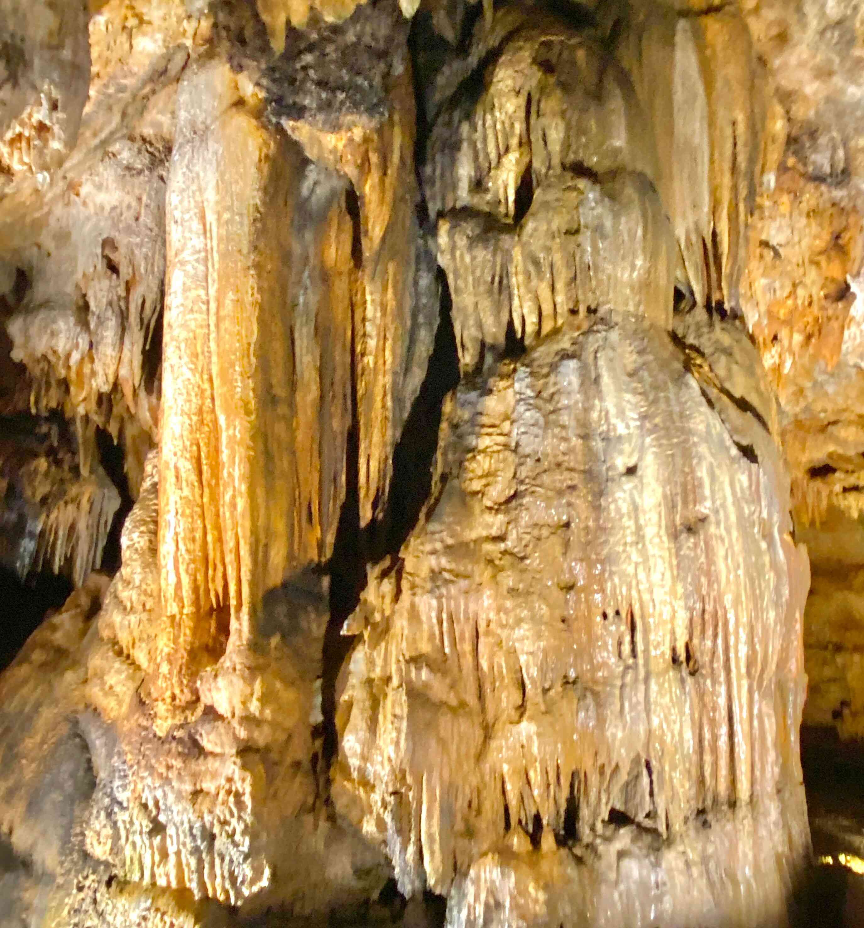 The one-hour tour (we spent longer because there were just too many amazing formations to see) is about a mile and a quarter long. It is an active cave meaning the water continues to drip and make formations. Federal and state law prohibits people from touching the formations. The Caverns are estimated to be about fifty million years old!