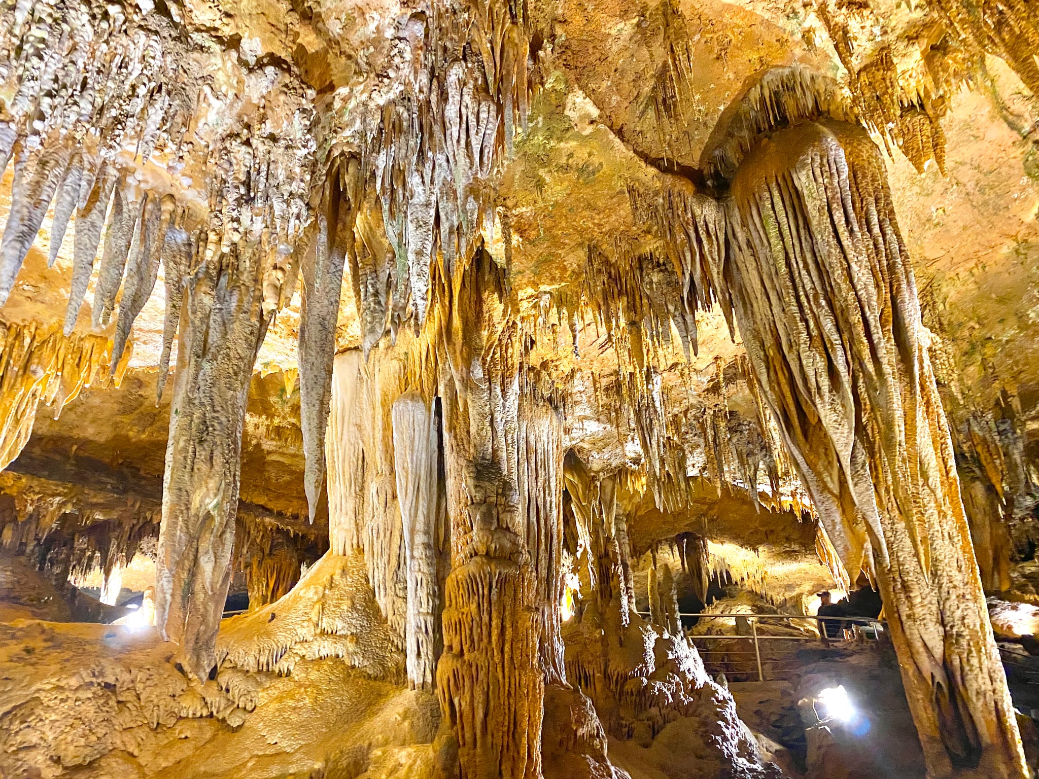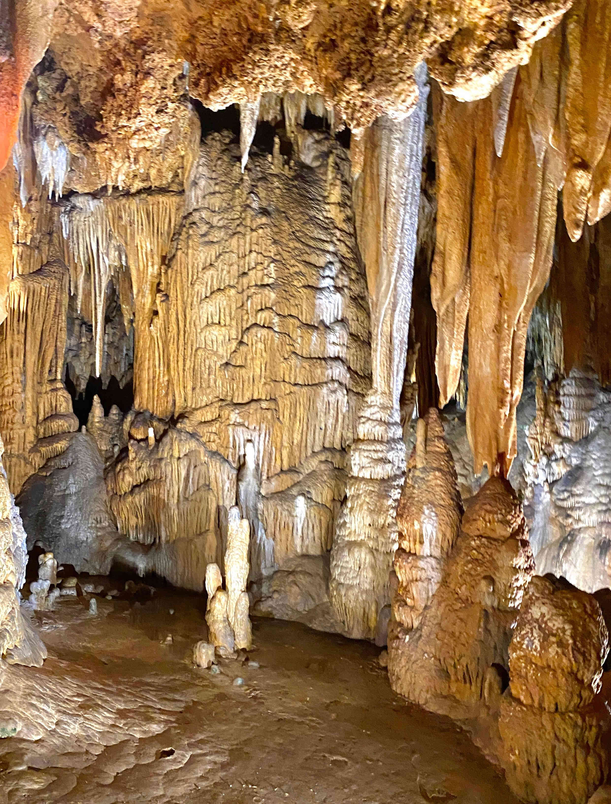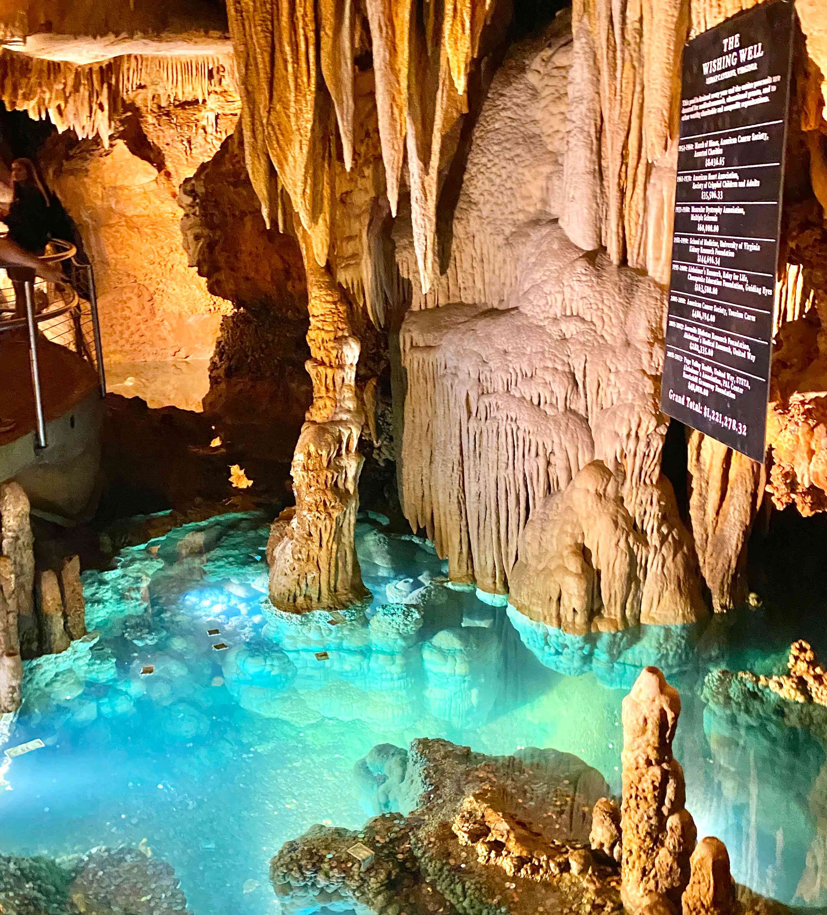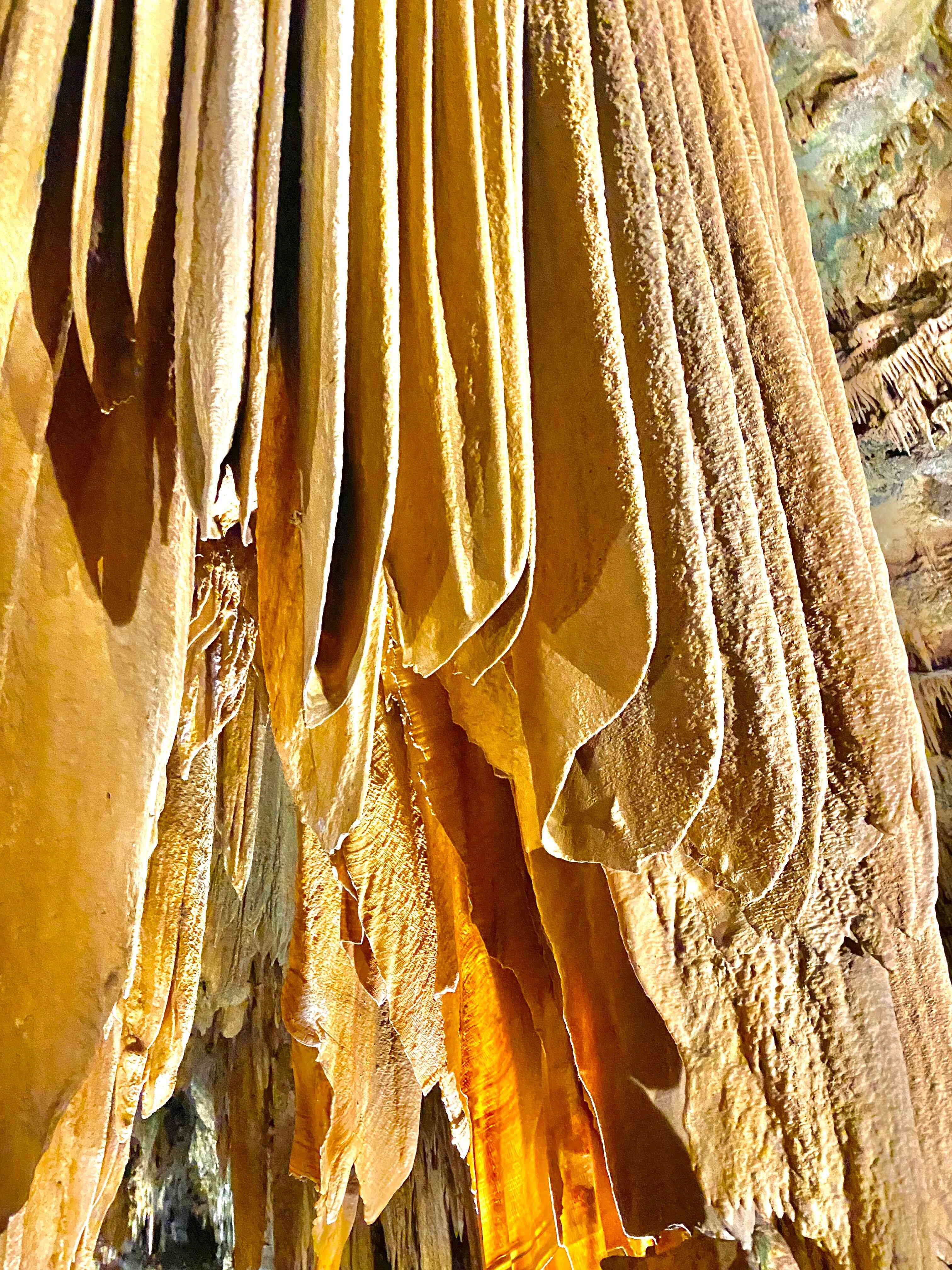 The one-hour tour (we spent longer because there were just too many amazing formations to see) is about a mile and a quarter long. It is an active cave meaning the water continues to drip and make formations. Federal and state law prohibits people from touching the formations. The Caverns are estimated to be about fifty million years old!