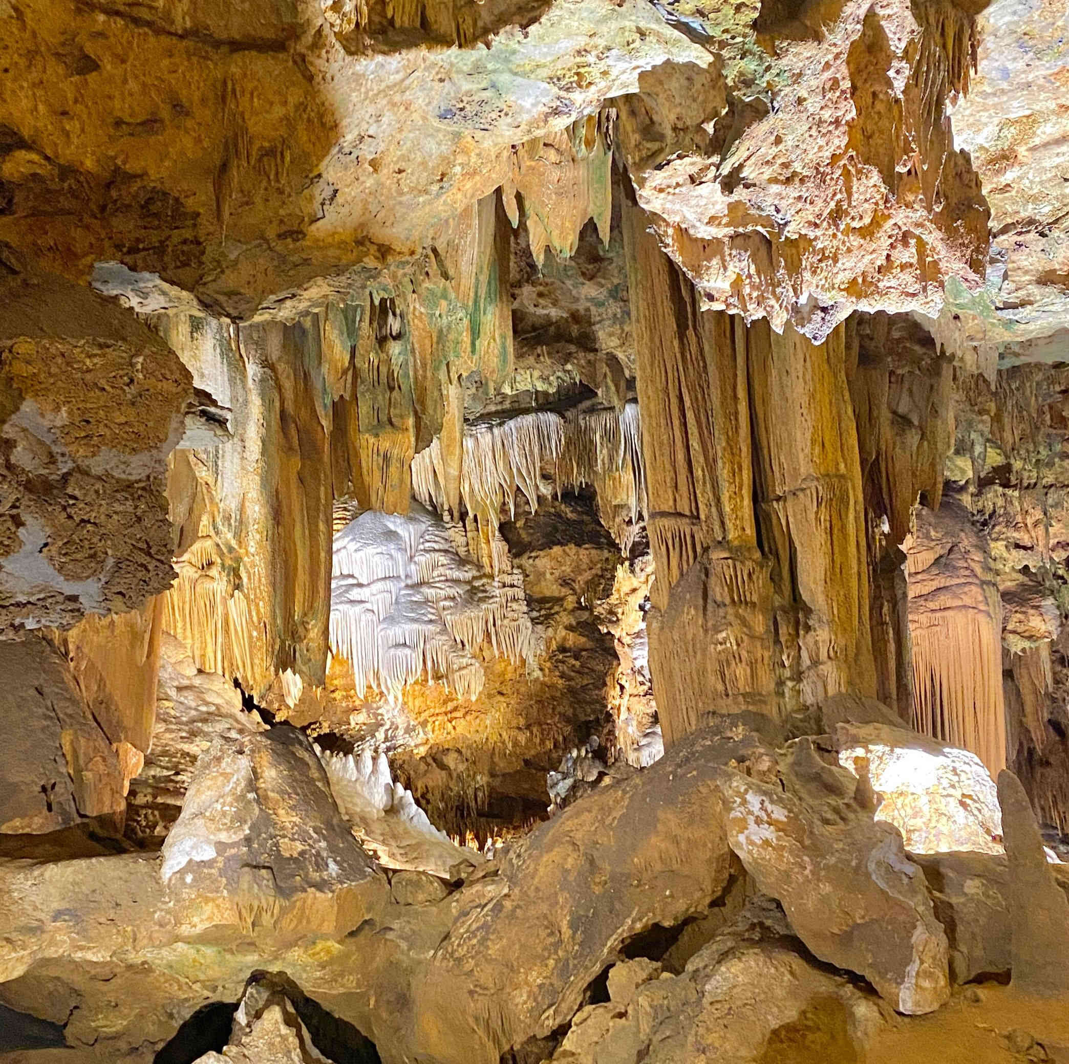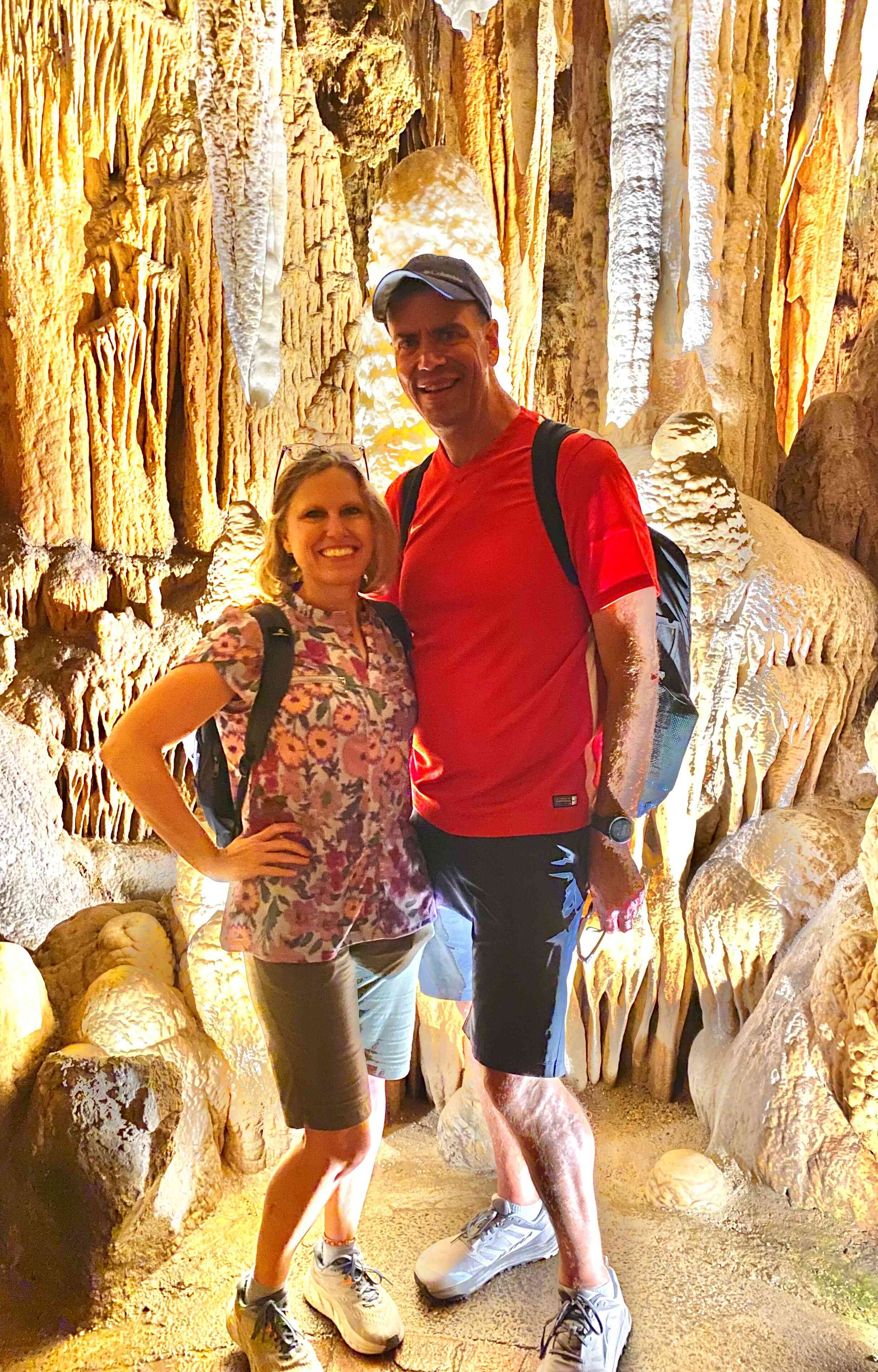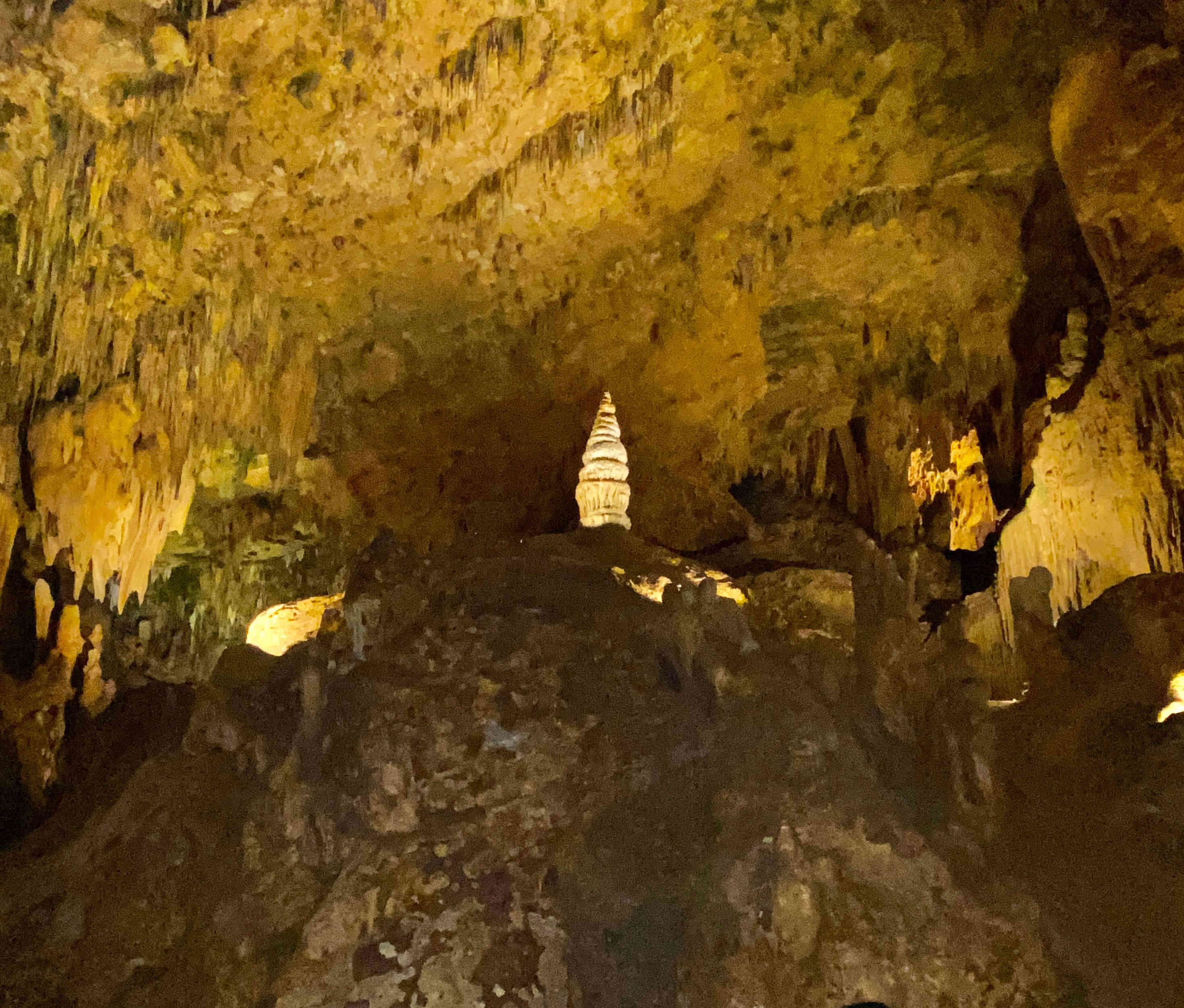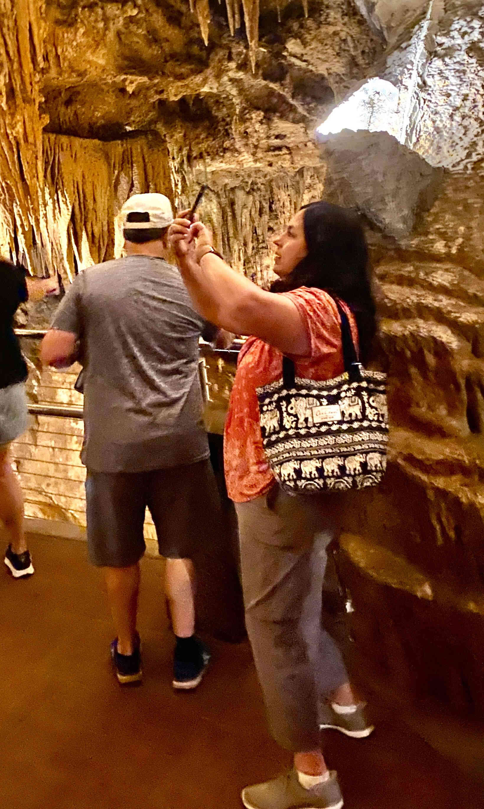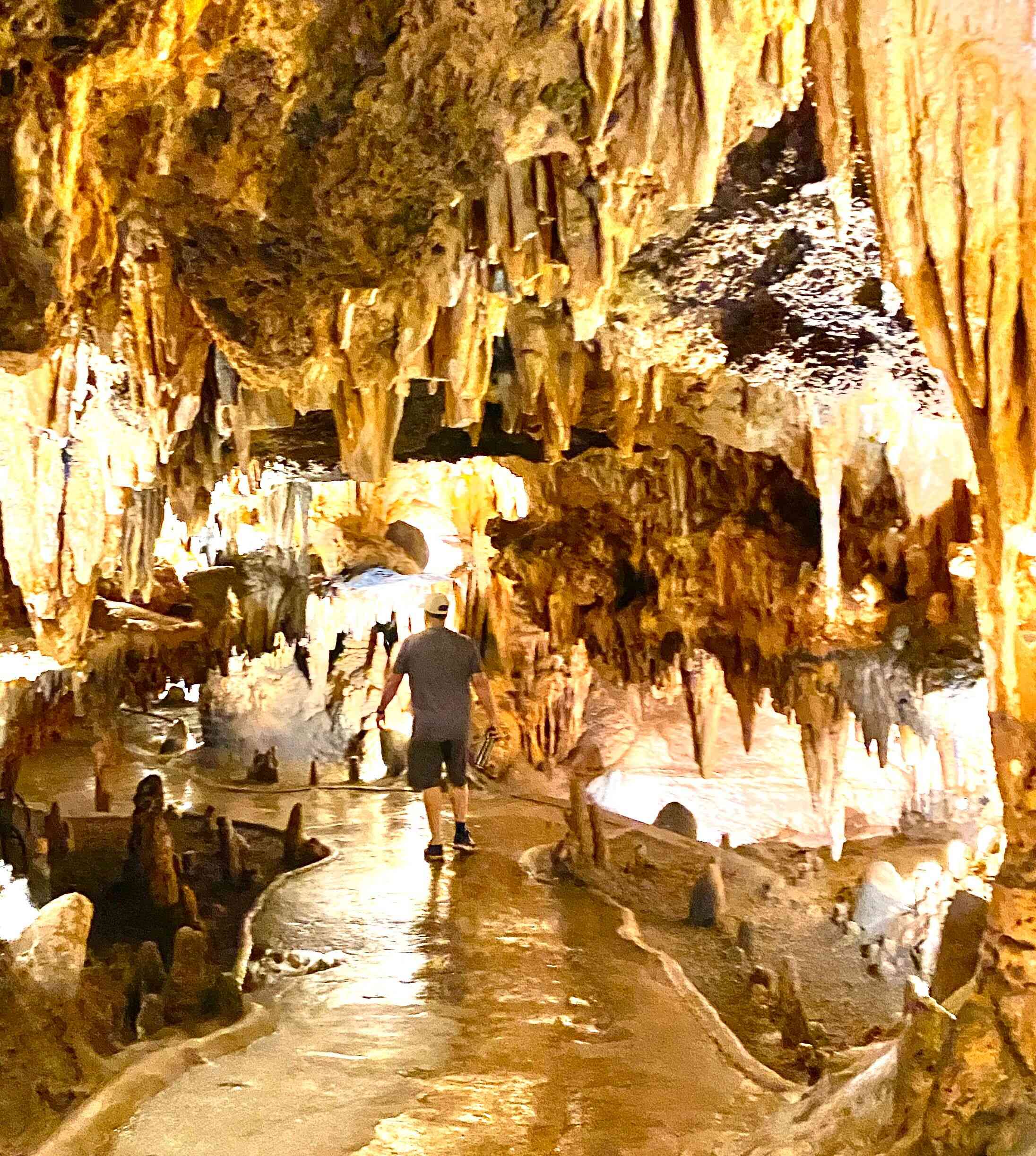 The one-hour tour (we spent longer because there were just too many amazing formations to see) is about a mile and a quarter long. It is an active cave meaning the water continues to drip and make formations. Federal and state law prohibits people from touching the formations. The Caverns are estimated to be about fifty million years old!