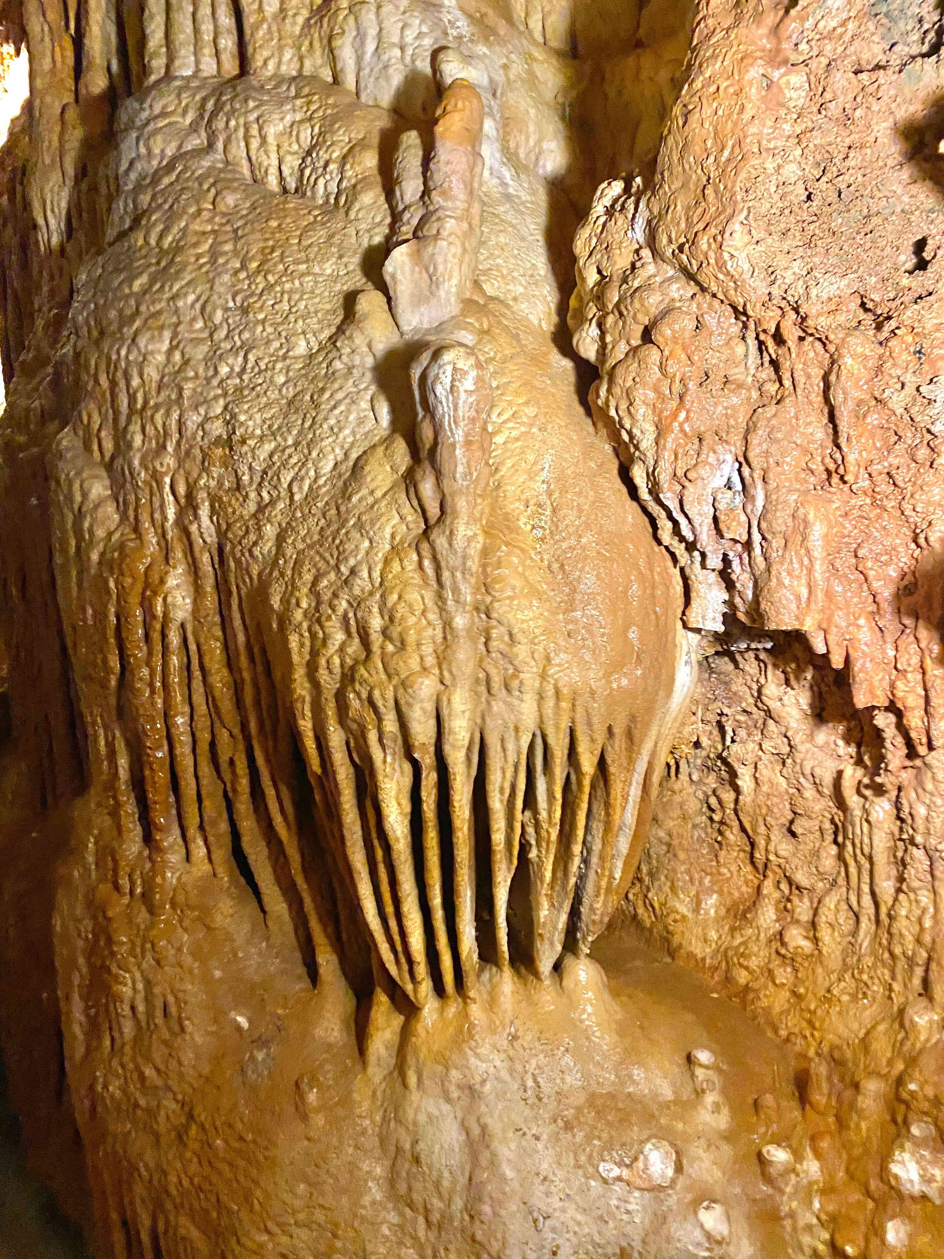 Also in Giant's Hall is this unique formation with a fluted stalactite and rounded stalagmite growing together.
