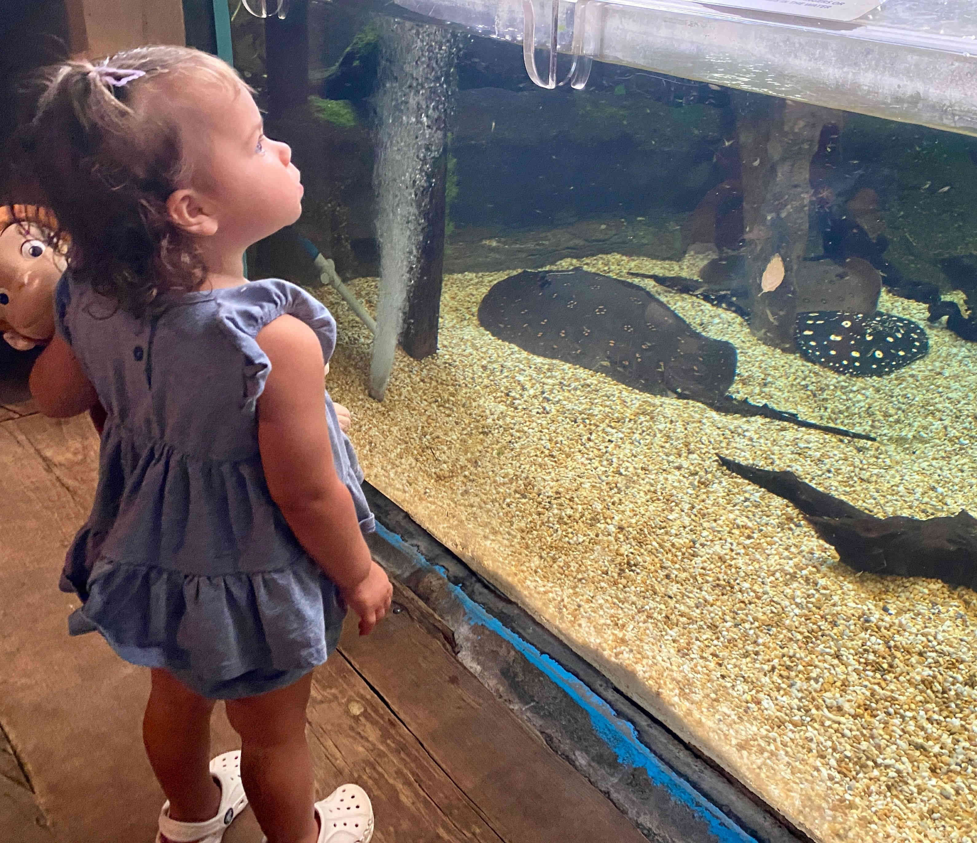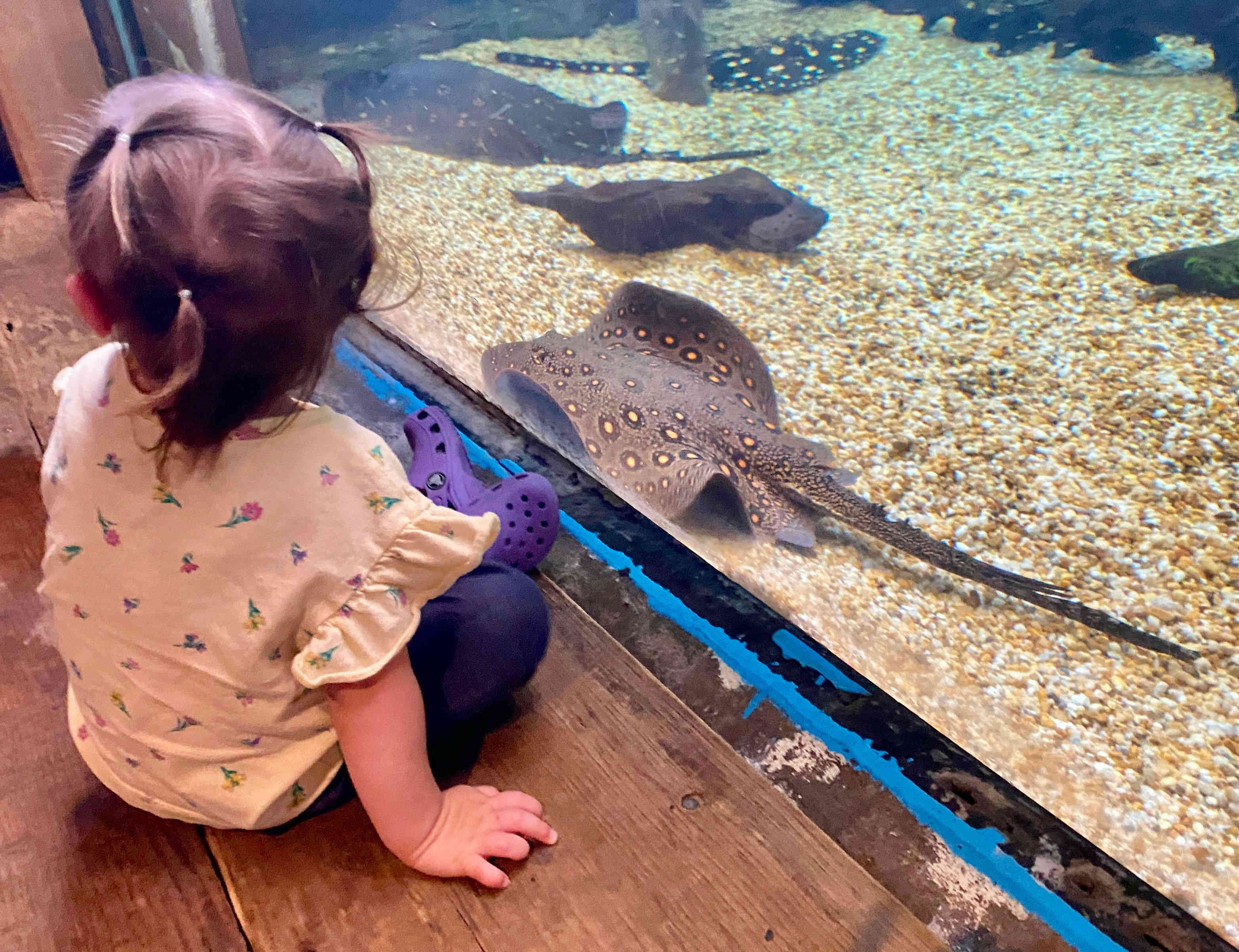 Beautiful stingrays, with their interesting patterns, right at eye level! And many more fun animals...