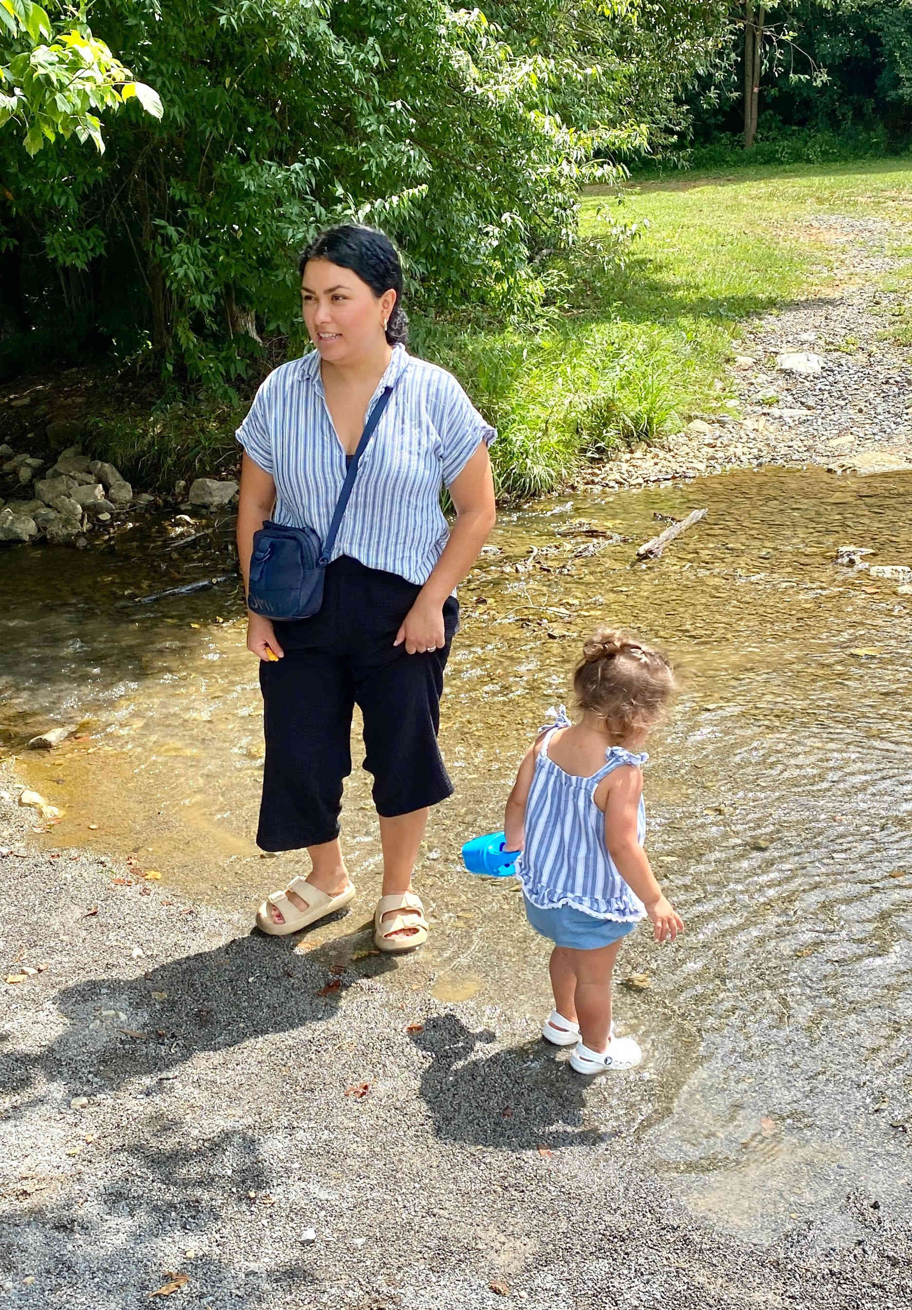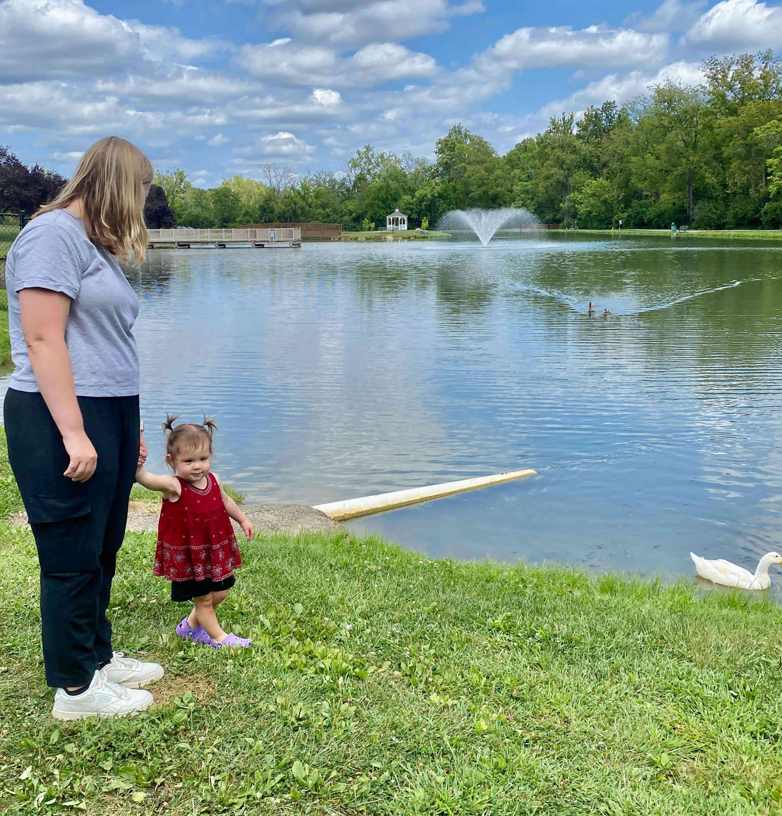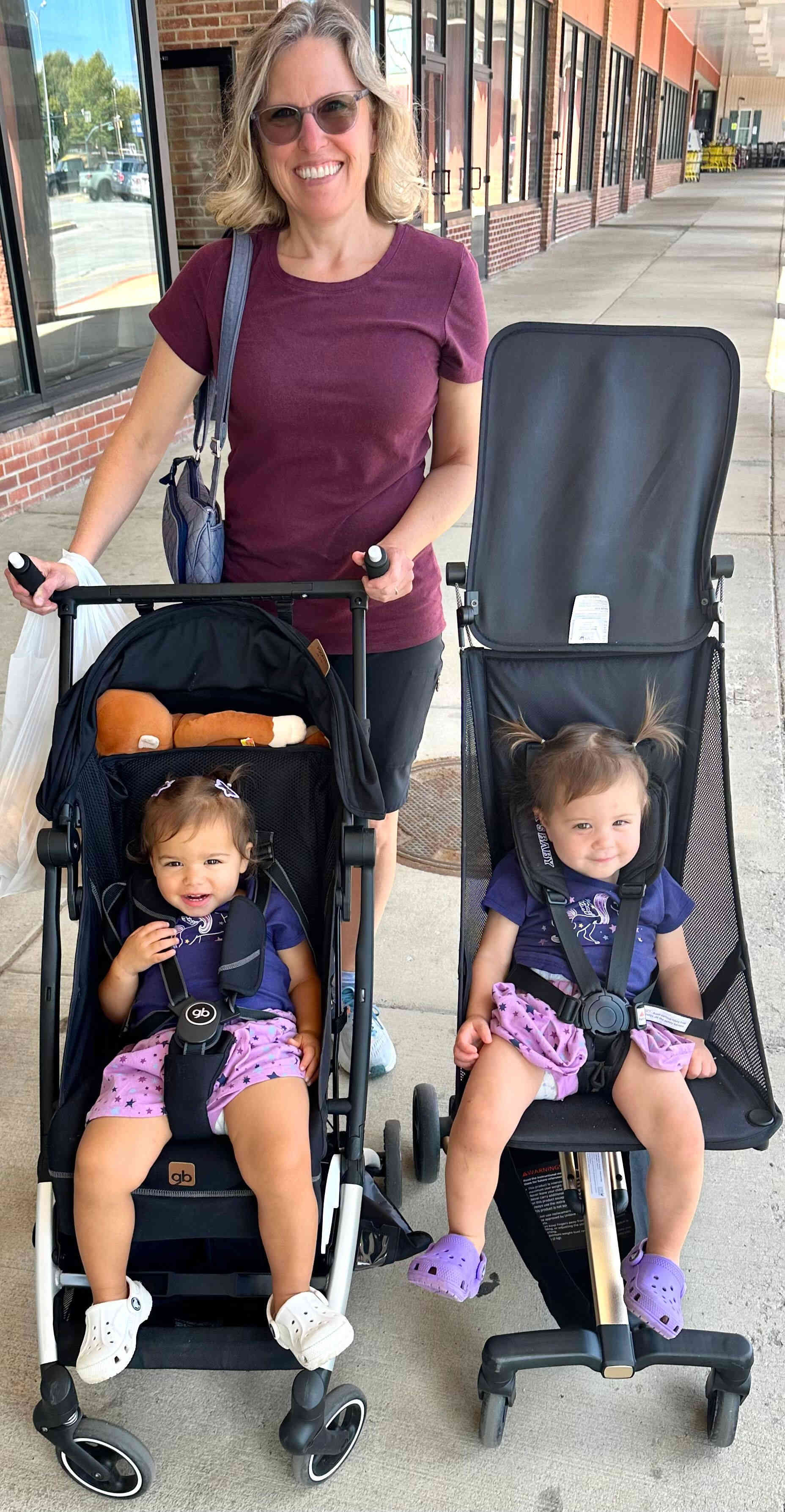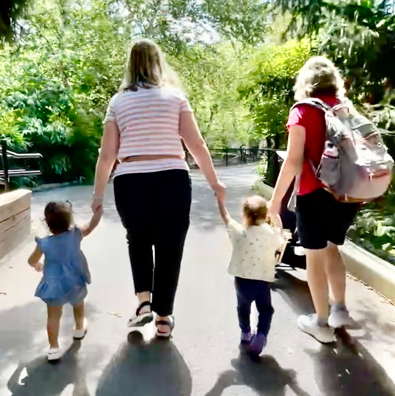Aubrey and I walking with the girls and giving them a break from their strollers.