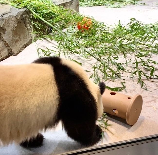 But my favorite animals in the whole zoo were the Giant Pandas on loan from China! One of the pandas was definitely more playful than another!