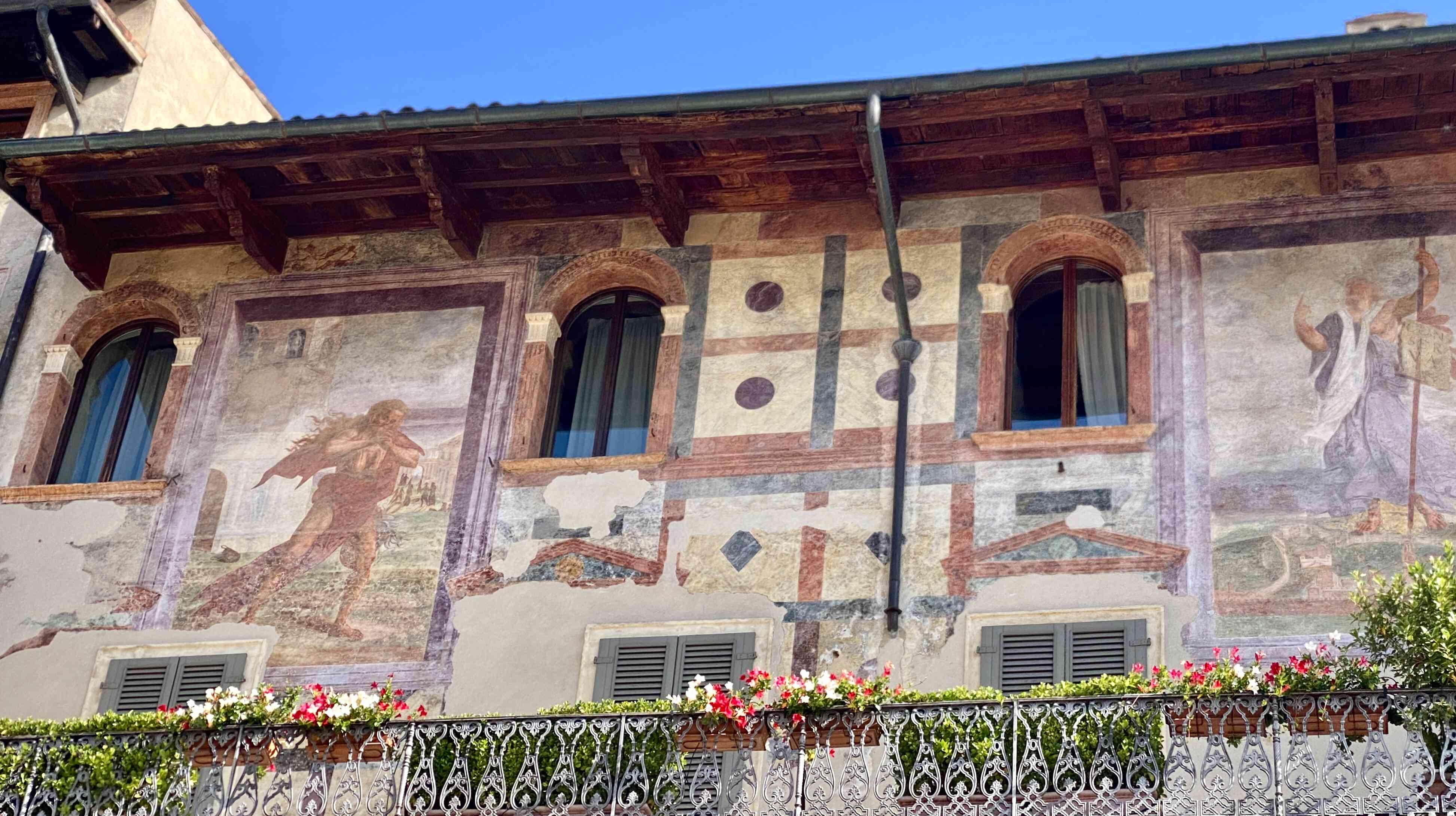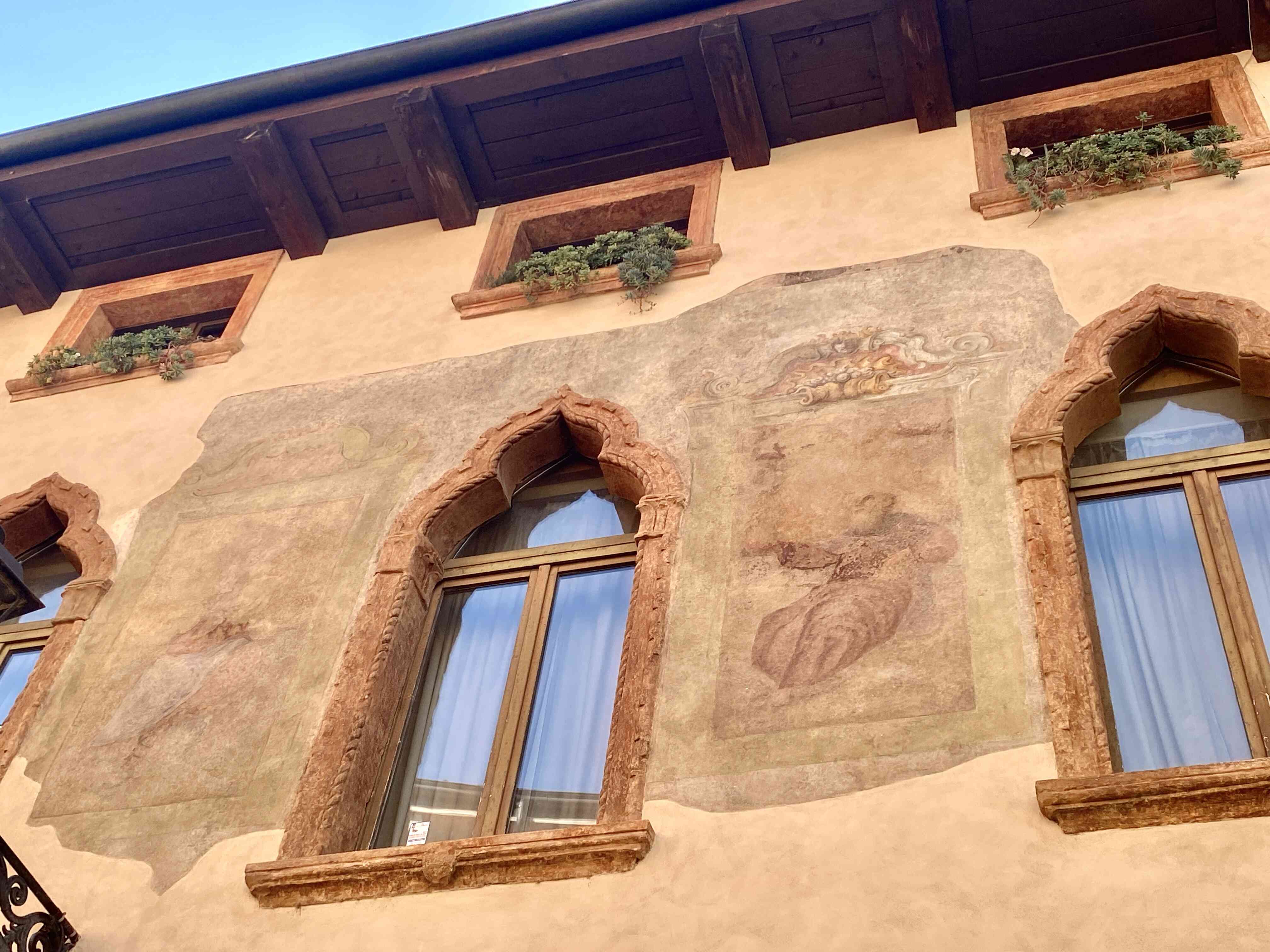 One of the oldest buildings in Verona with more frescos, but notice the differently shaped windows—not the typical Roman style.