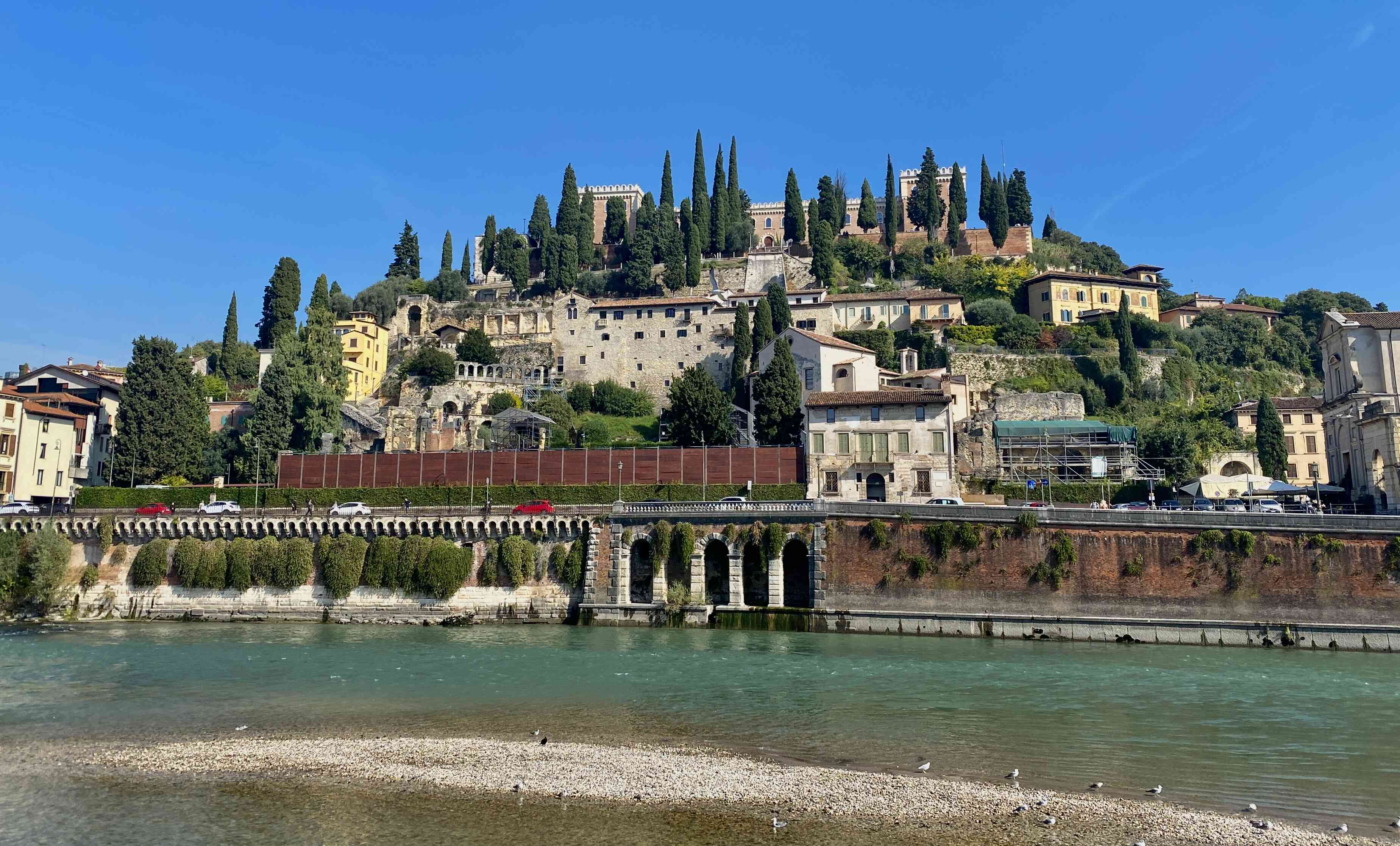 View of Castel San Pietro from across the river.