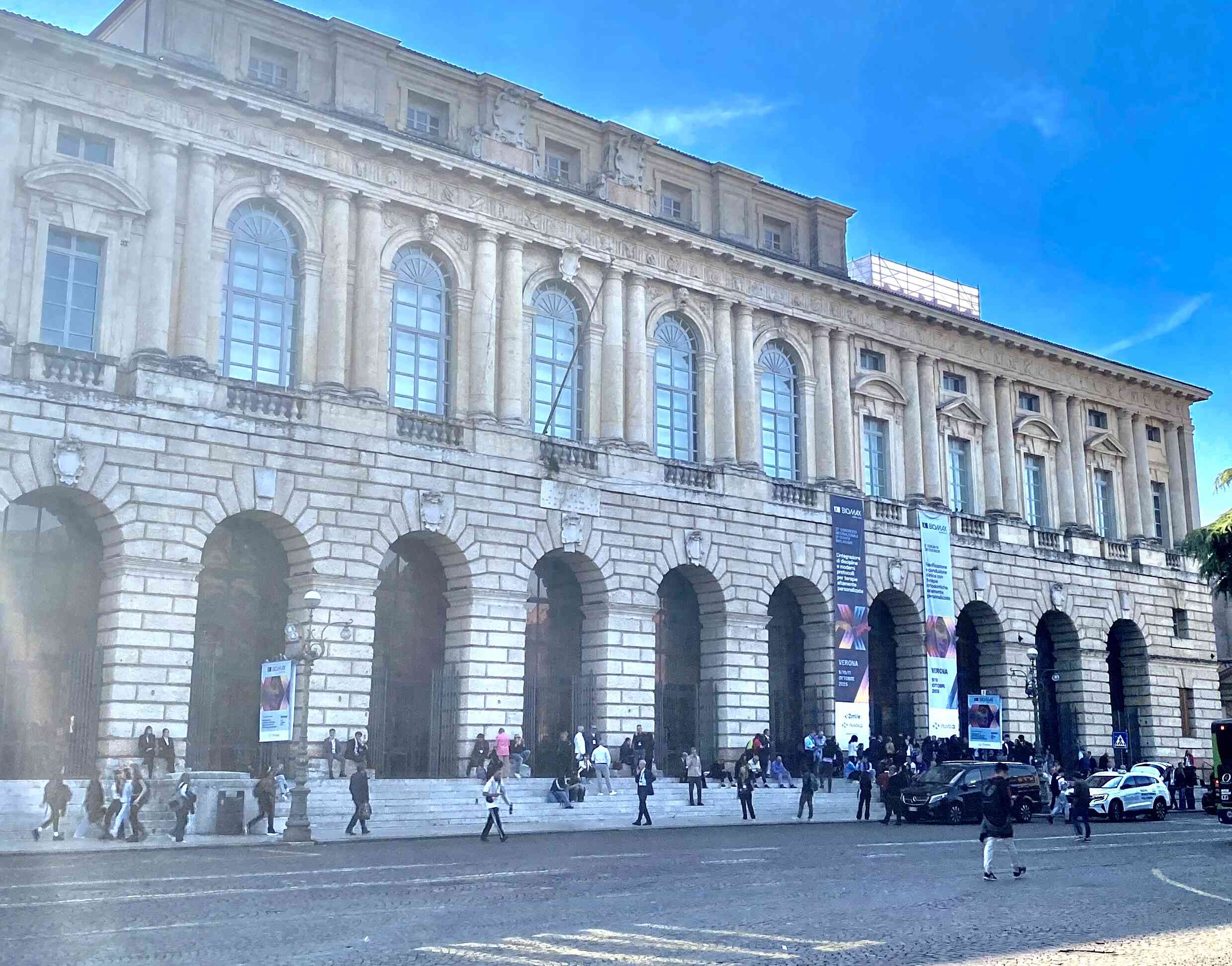 View of the Verona flee market below where we got lunch, and bought souvenirs.