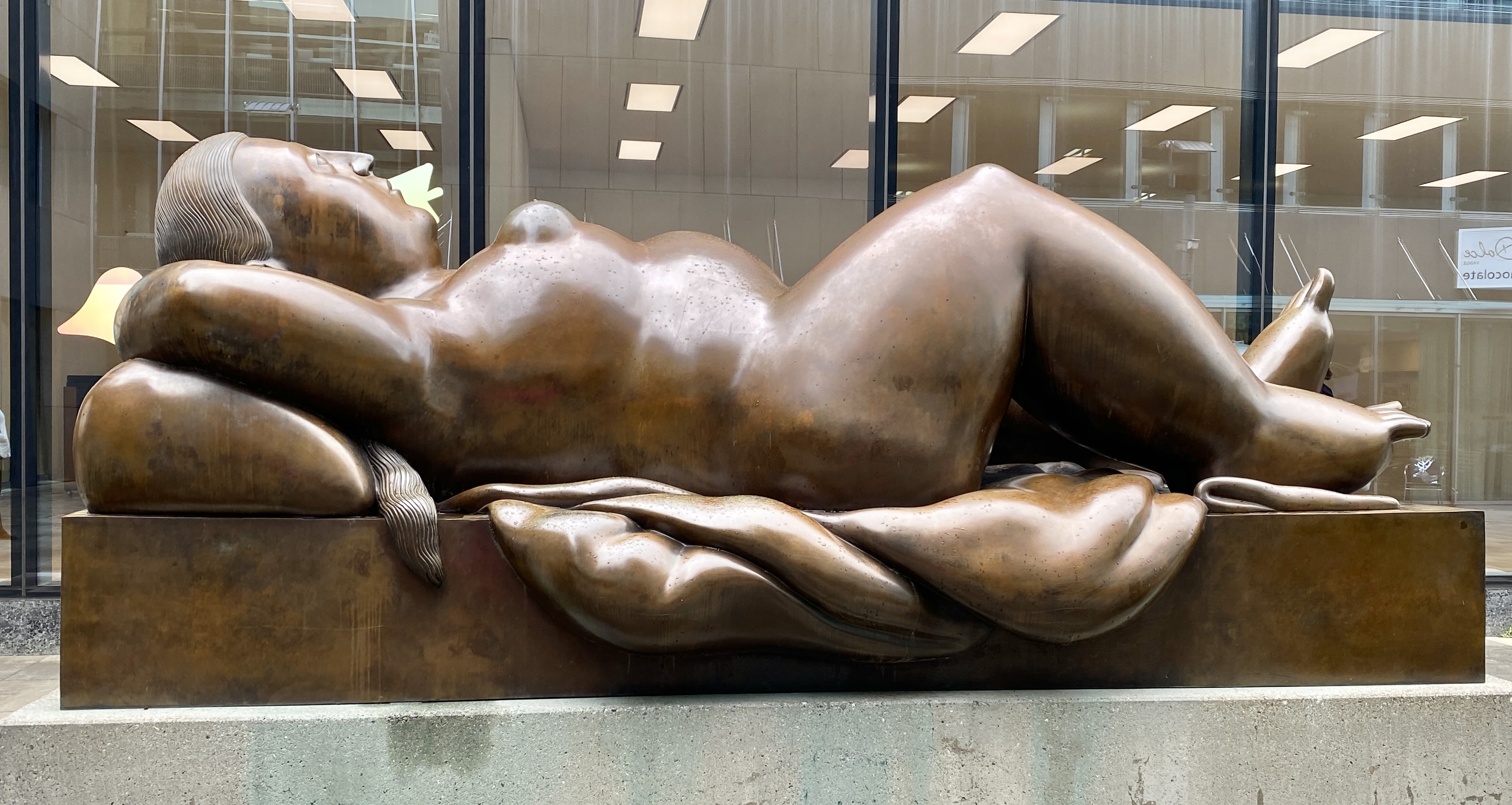 Kunstmuseum Liechtenstein houses international modern and contemporary art, showcasing Reclining Woman von Fernando Botero, located on the outside of the museum.