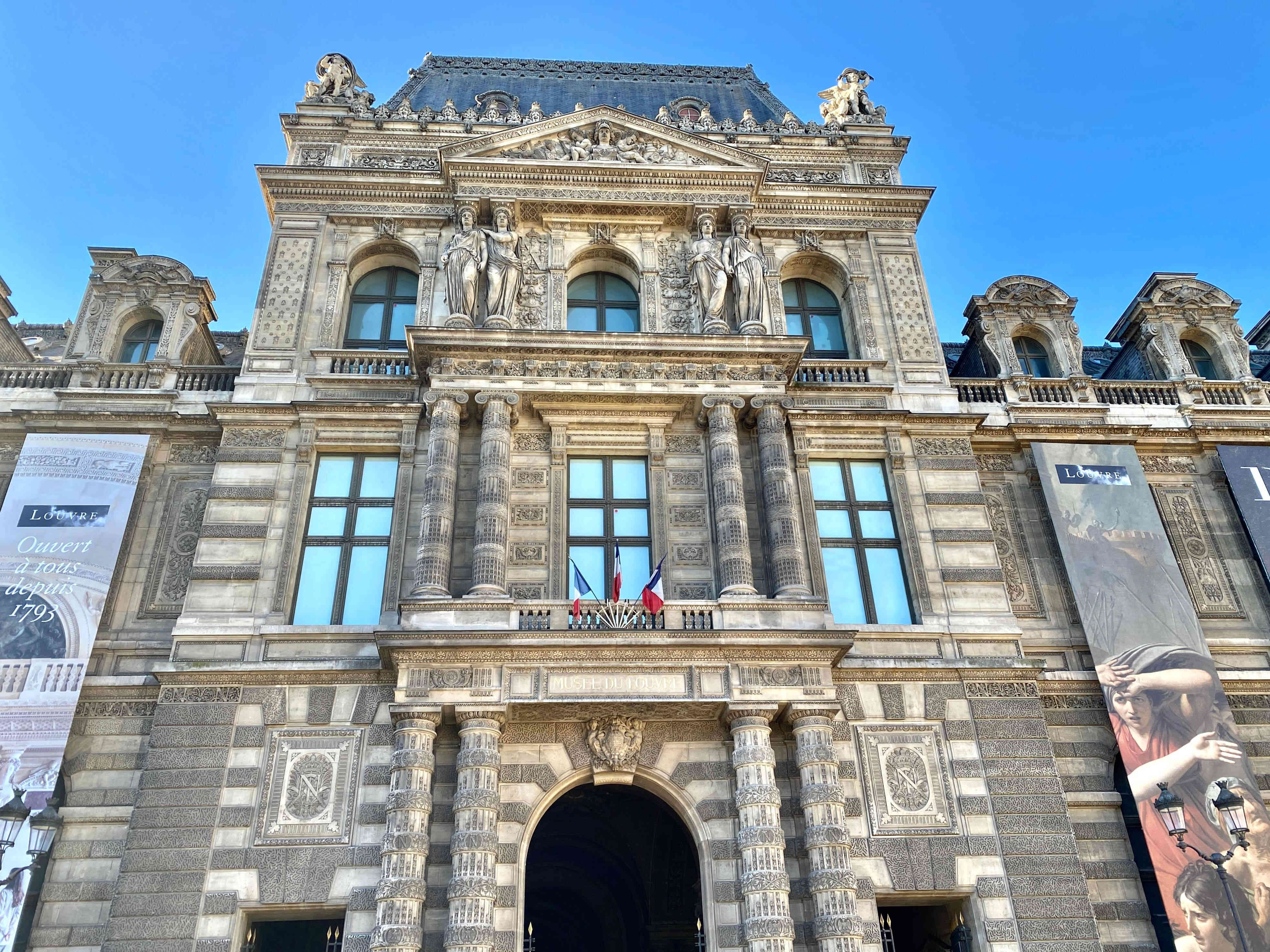 The beautiful Louvre exterior in classical French Renaissance architecture.