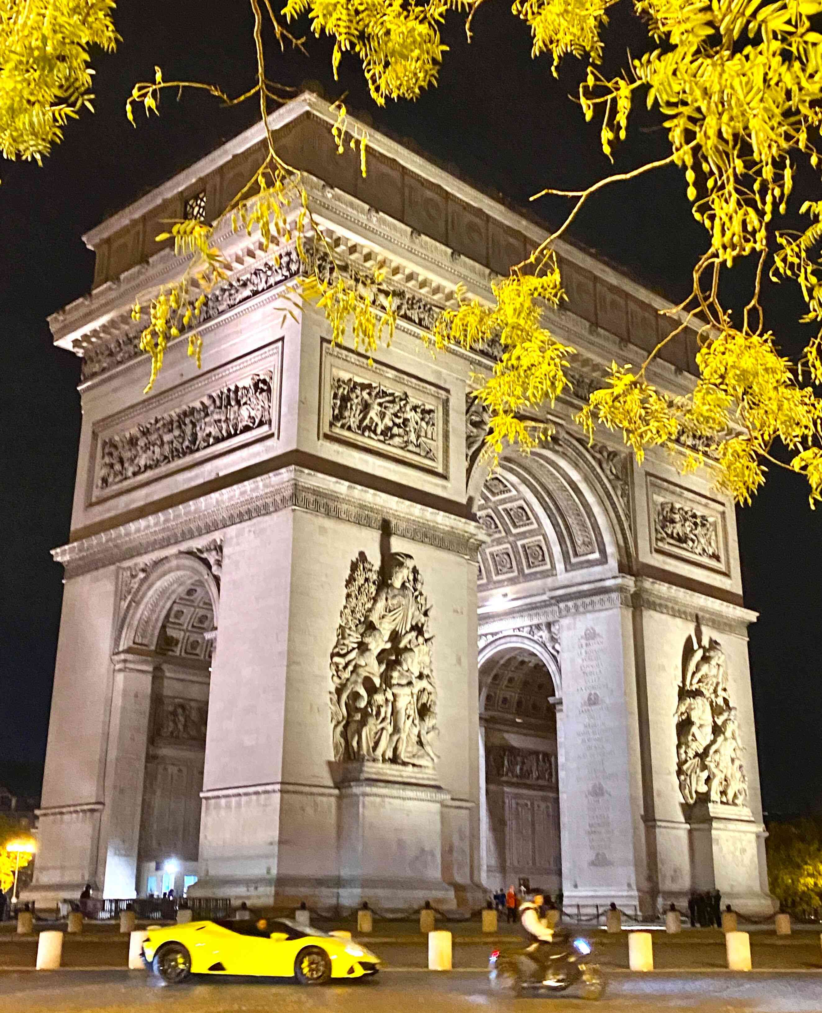 I'm pretty proud of this picture with the bright yellow tree branches and leaves accentuating the Arc from above, and a Lamborghini of the same color, accentuating the structure from below! Magical! (Did I mention that Lamborghini's are my favorite car?)