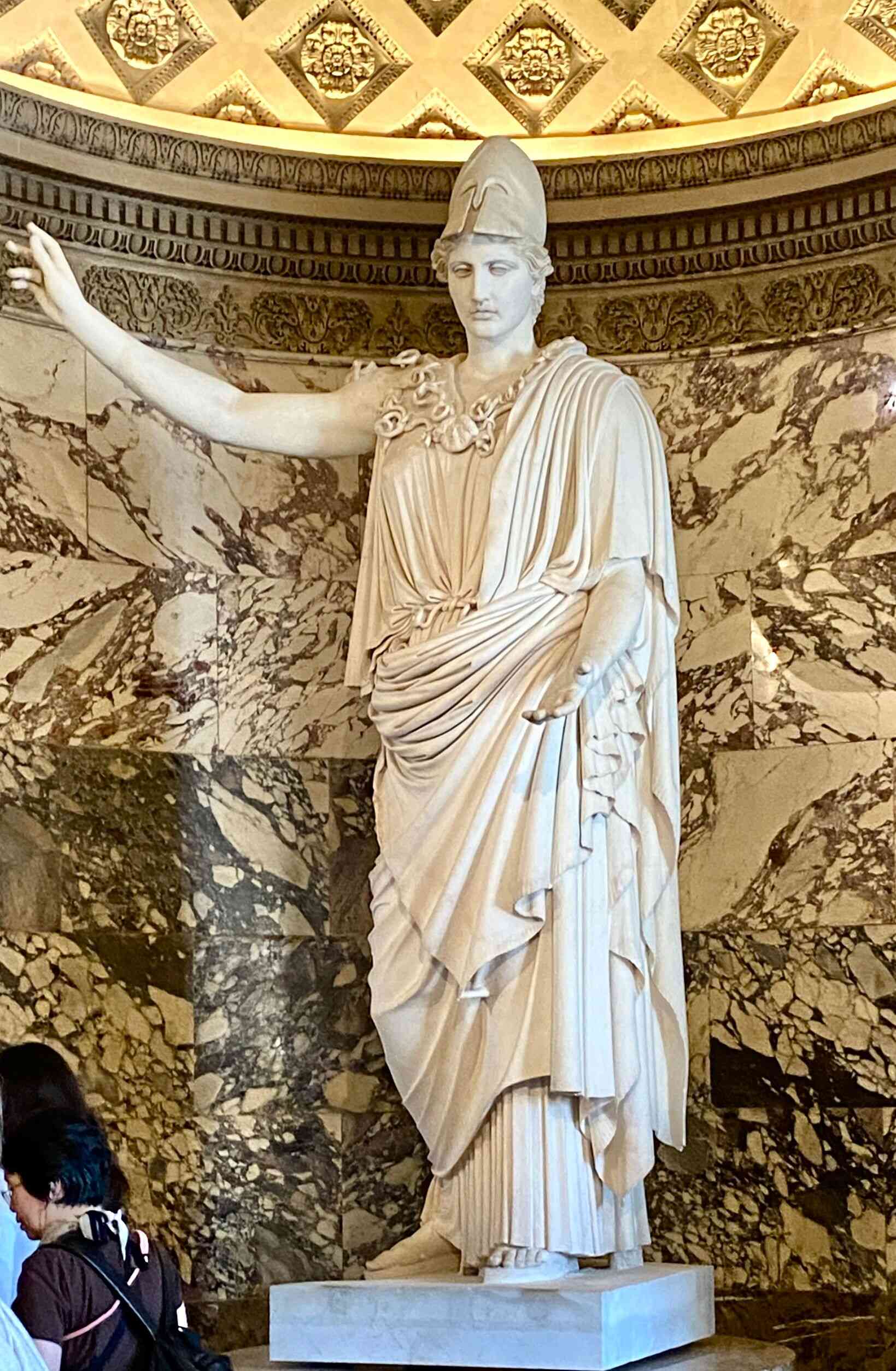 Athens of Velletri is a marble statue from the 1st century Imperial Period, discovered in Velletri in 1797. Her Corinthian helmet is a symbol of her role as the goddess of defensive war and strategy.