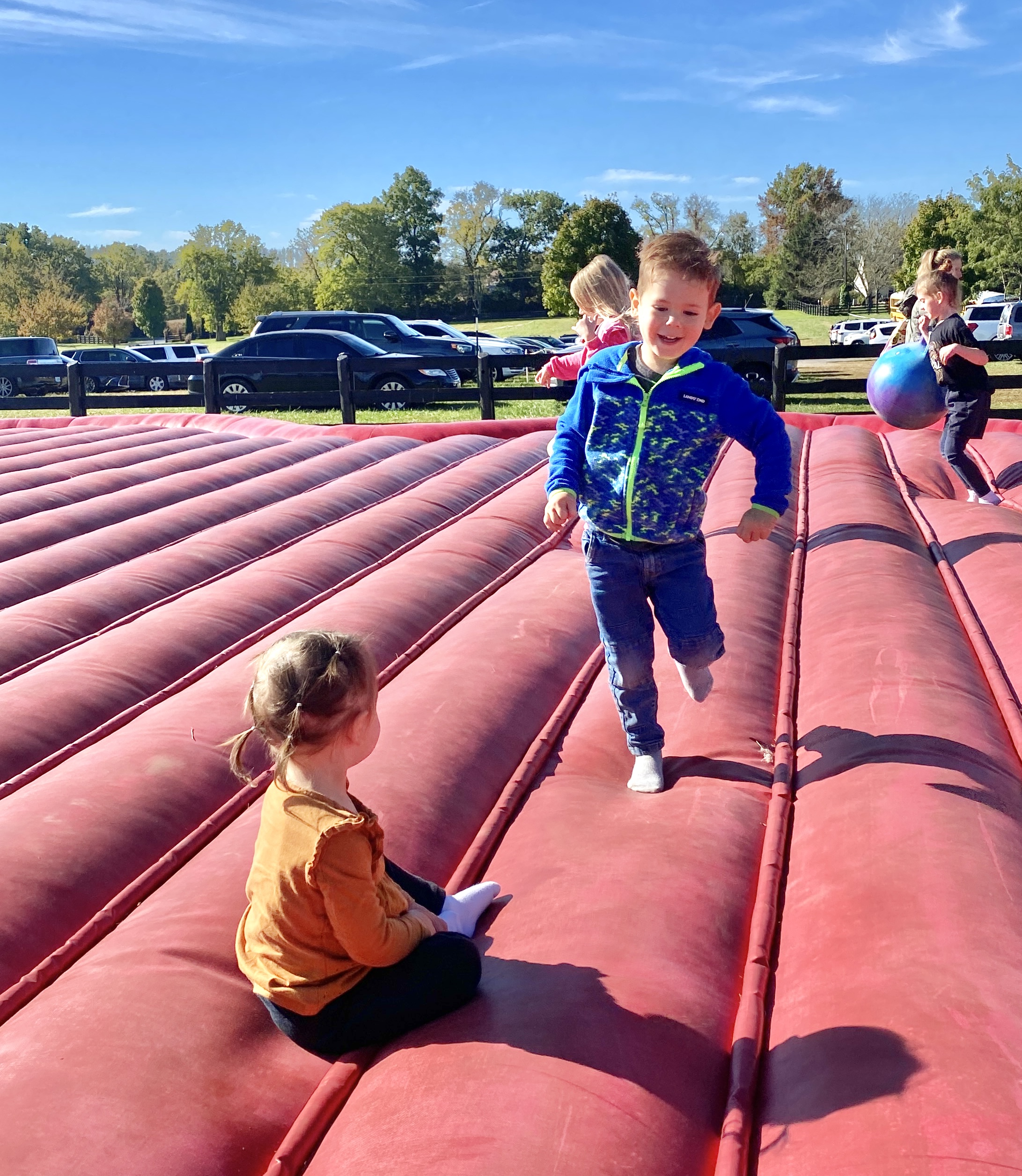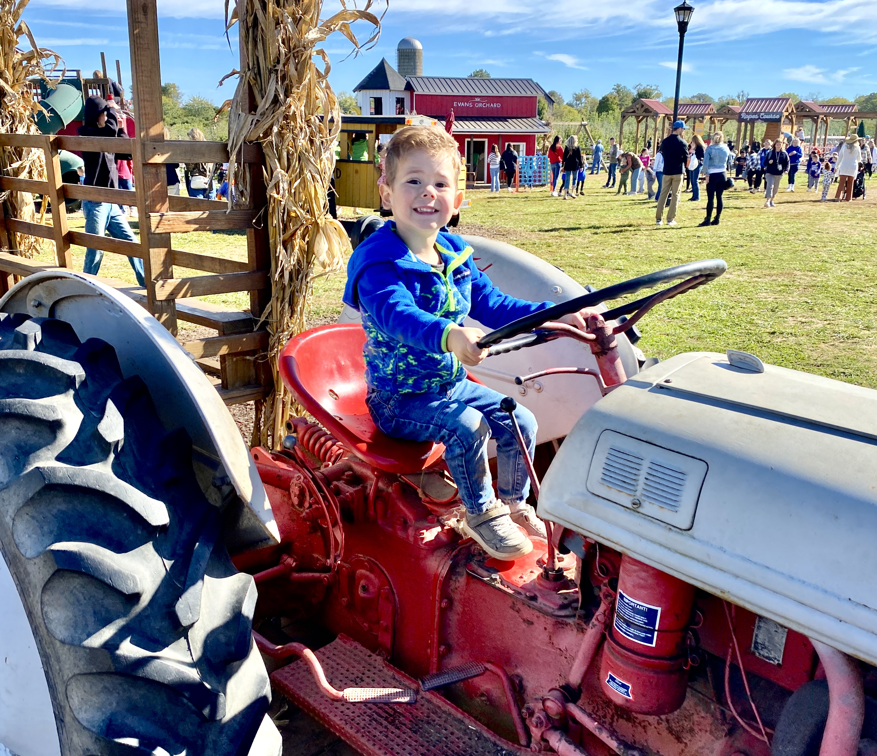 One of the many outings Aubrey had planned for us was a morning at Even's Orchard. Aubrey kept talking about how fun the little kid area was, and that no one is ever there when she takes Claire. We just happened to pick the wrong day—Scott County Schools Even's Orchard Day! Every child of every age was there that day! I've never seen so many kids in one place before! Despite the hordes of people, the kids still had fun. Finn was so excited he just ran to every station, trying out everything—good thing we wore our running shoes!