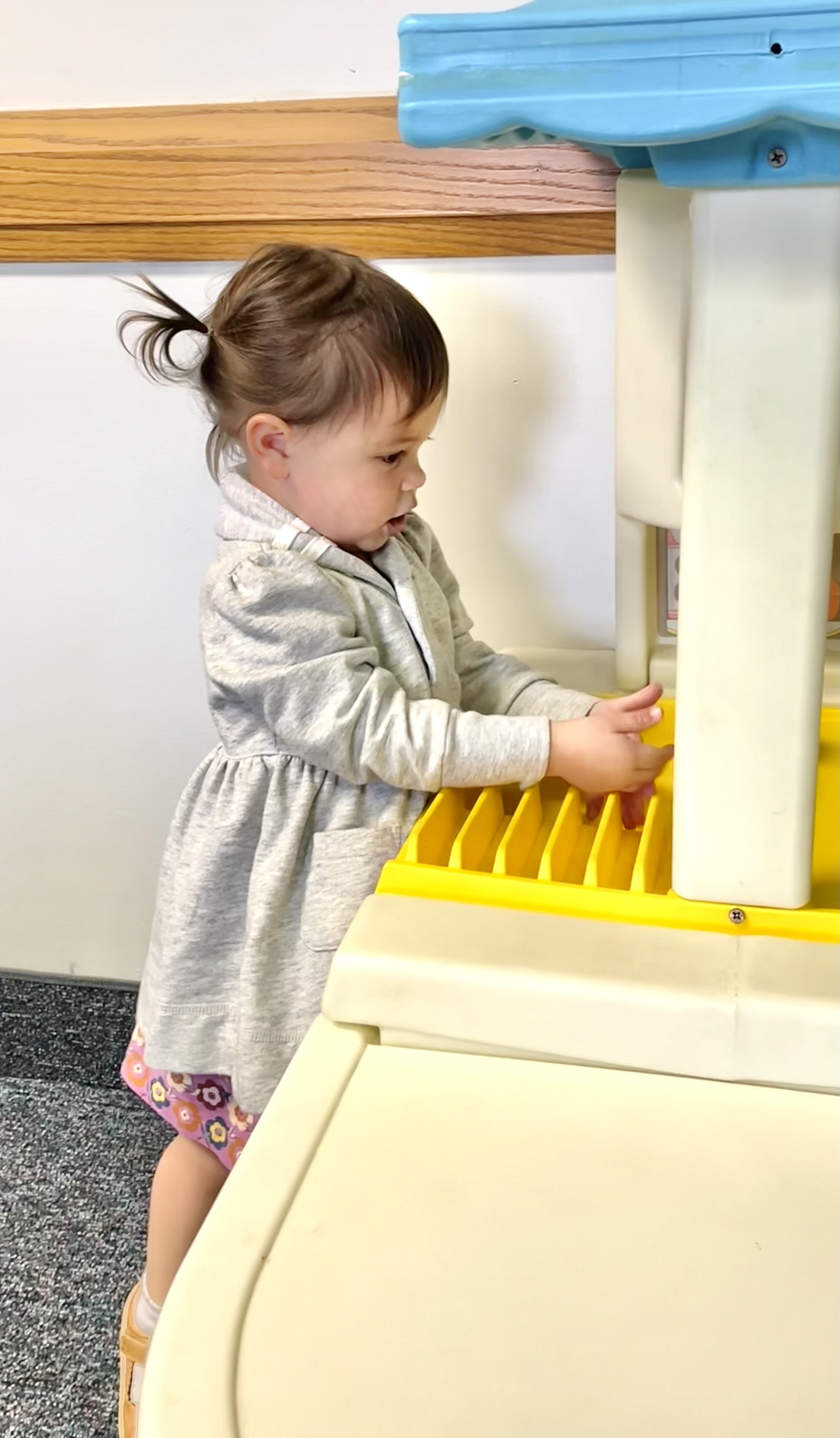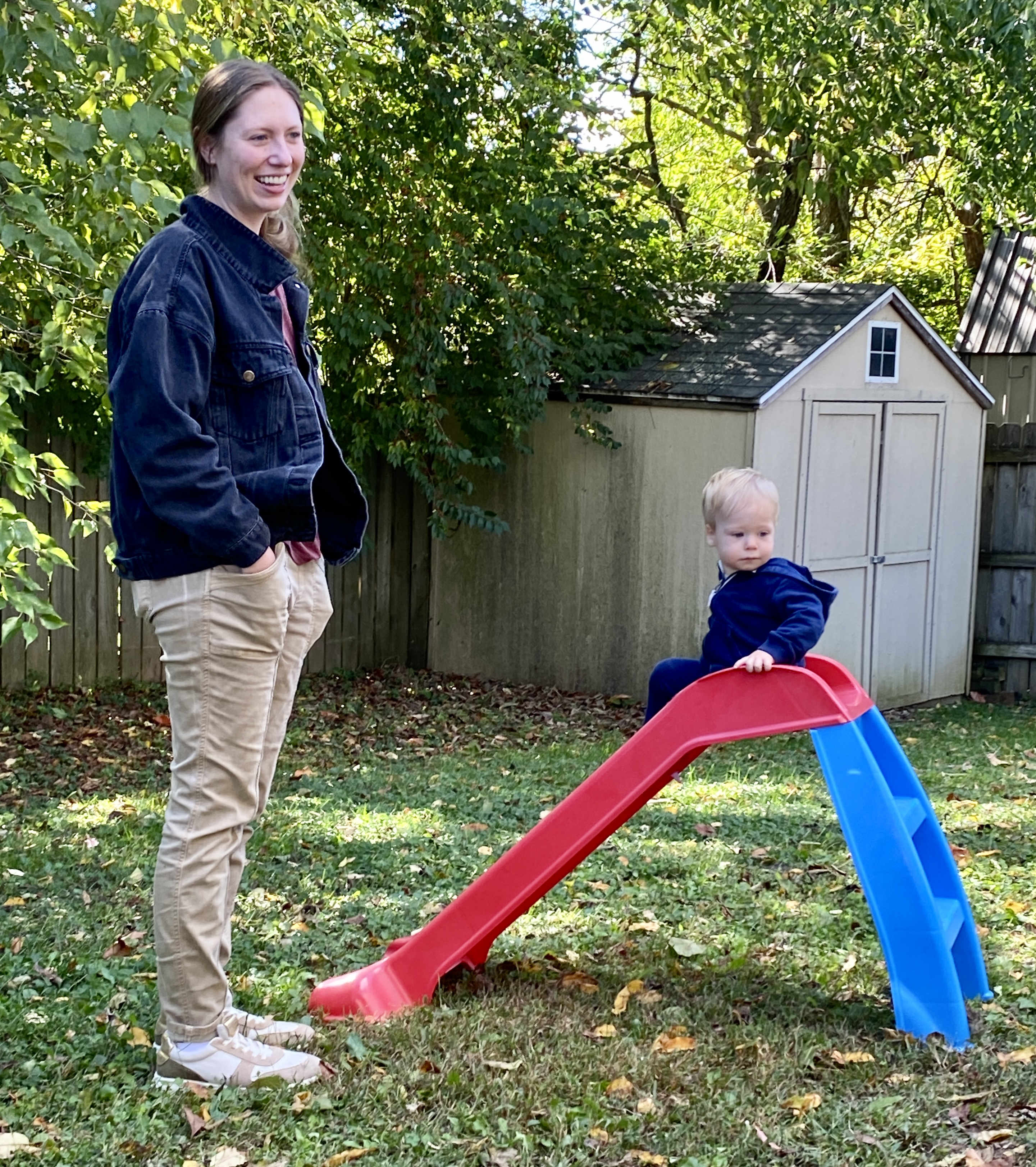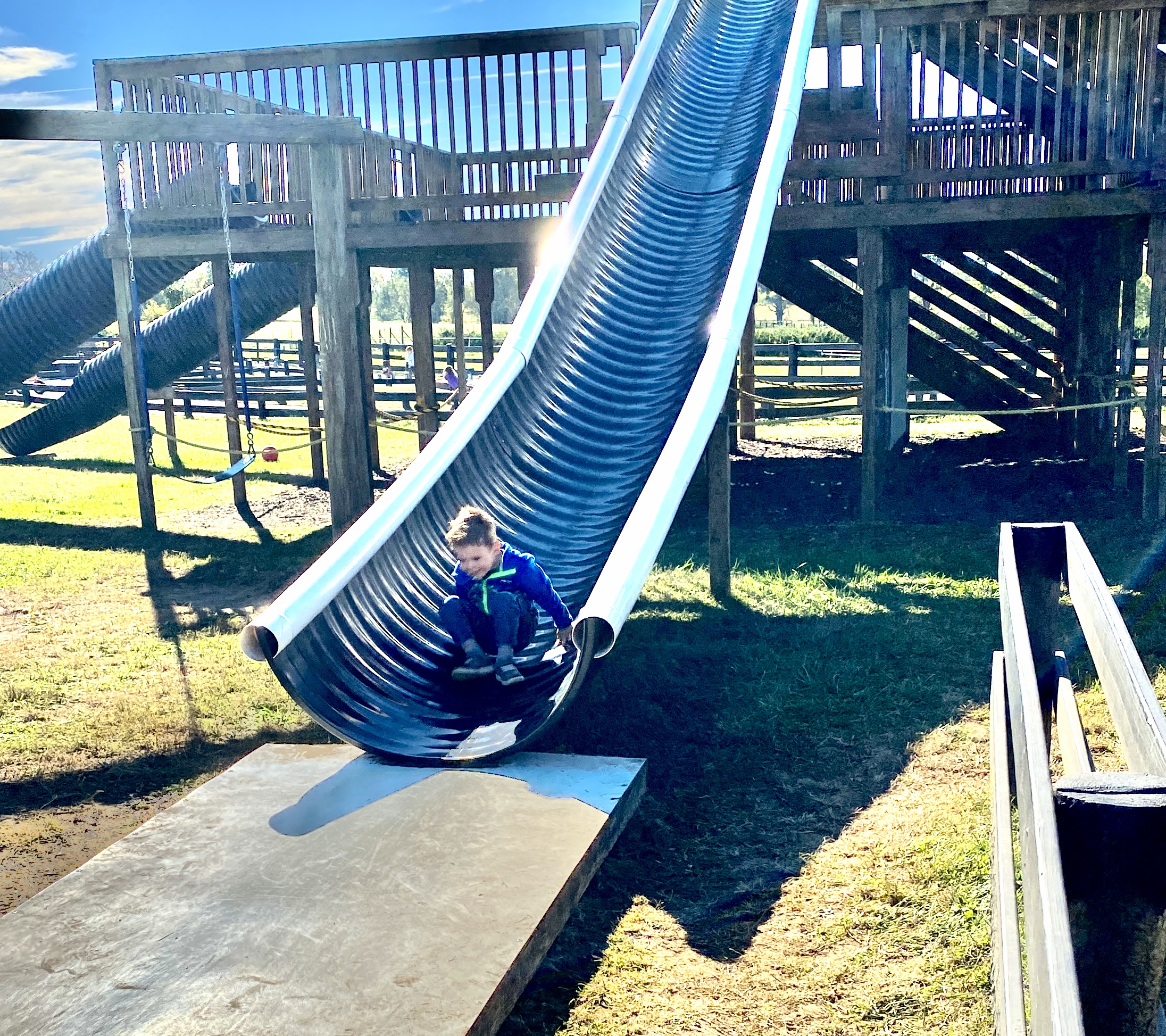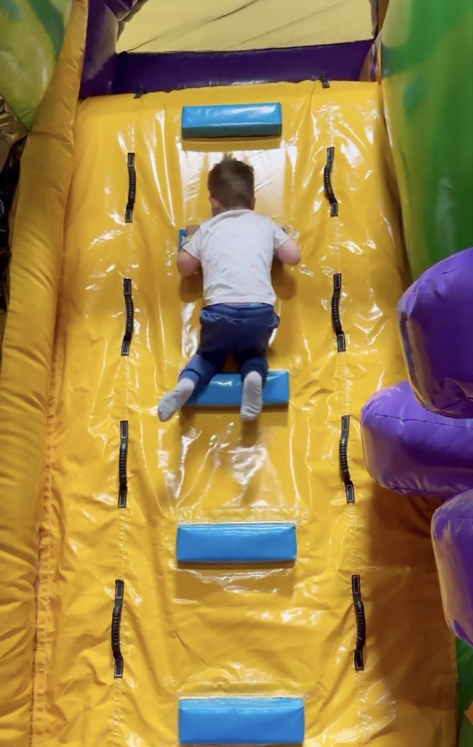Gus going down the little slide,