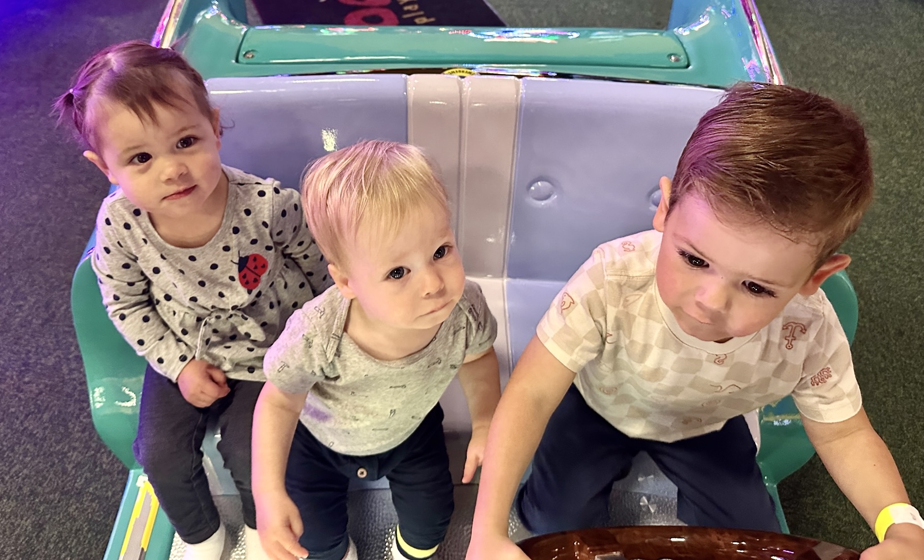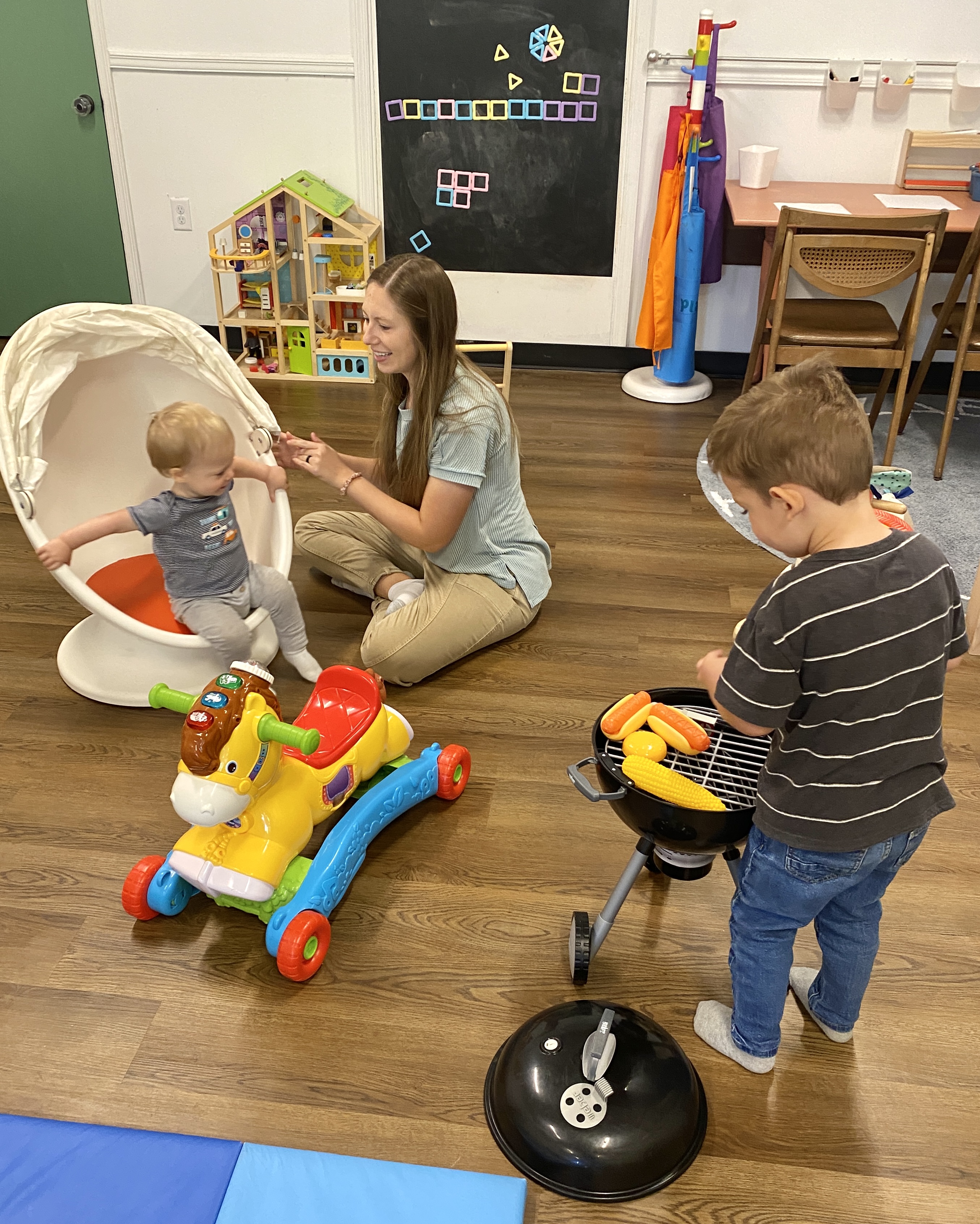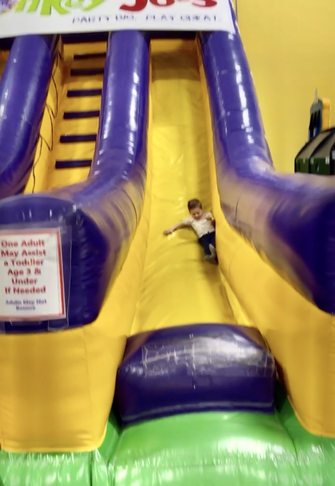 On one of the cooler days of the week, we drove to Paris, Kentucky, which like Frankfort, is only a thirty-minuet drive from Aubrey and I. Aubrey had taken Claire to this fun little playroom several times when the weather outside was not ideal. Above Gus is spinning in an egg chair while Finn cooks on the toy charcoal grill with included all the essential utensils and fixins!