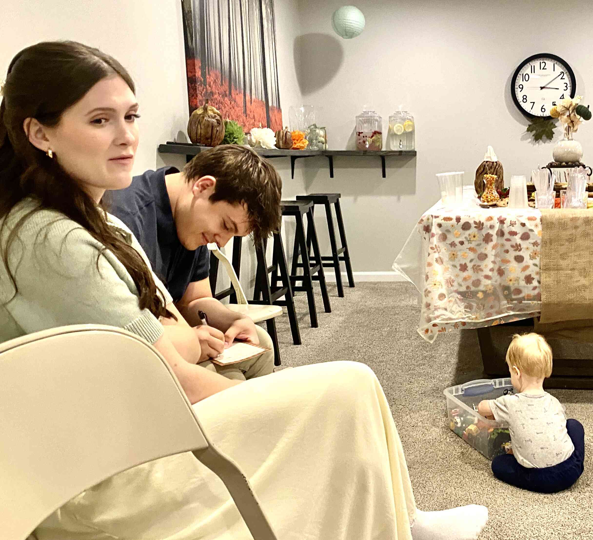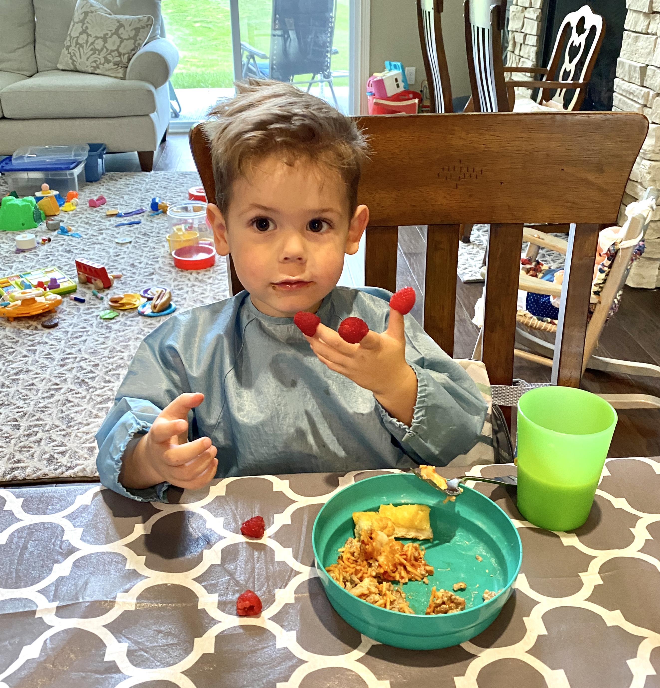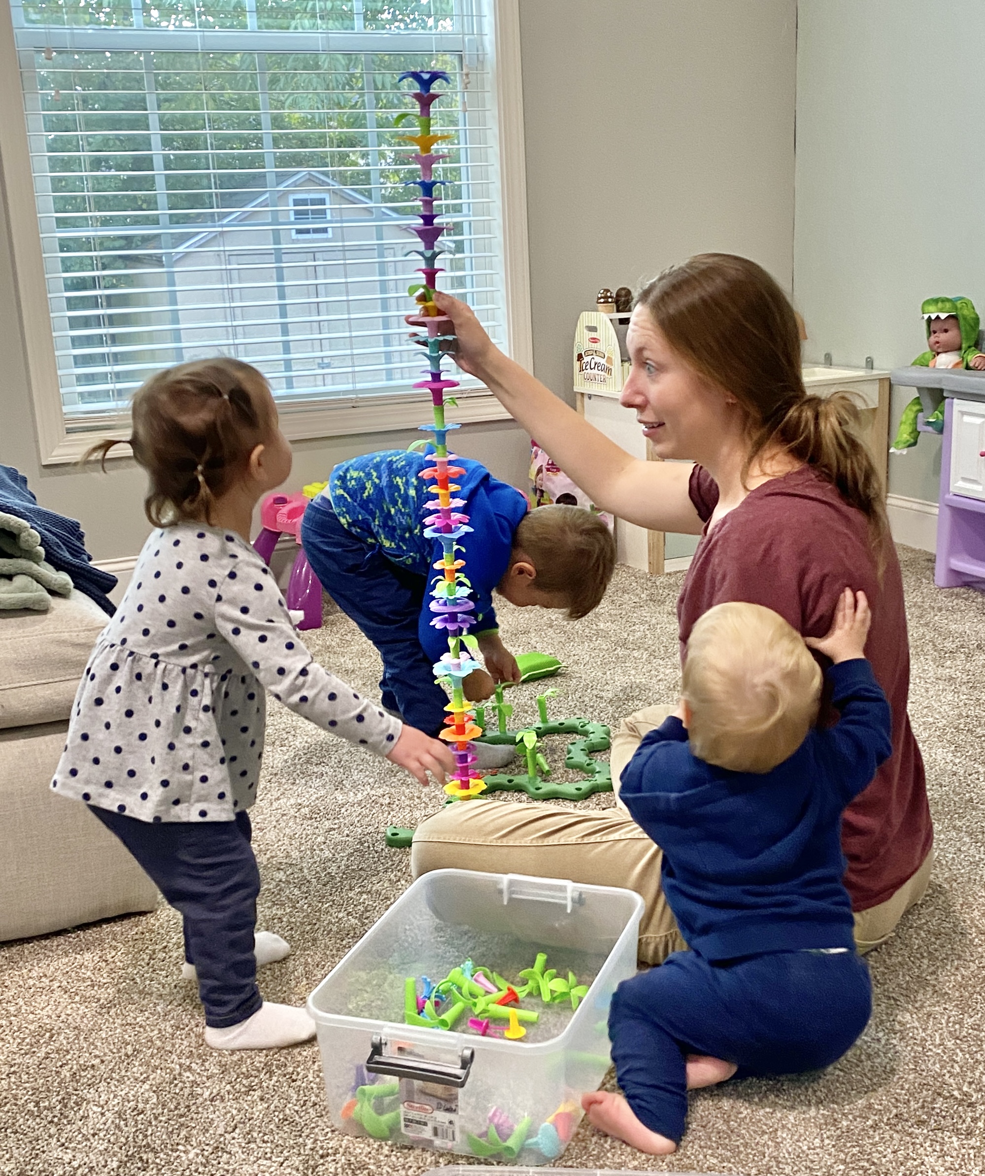 Snack time—the only one missing is Gus who wasn't old enough to attend nursery yet.