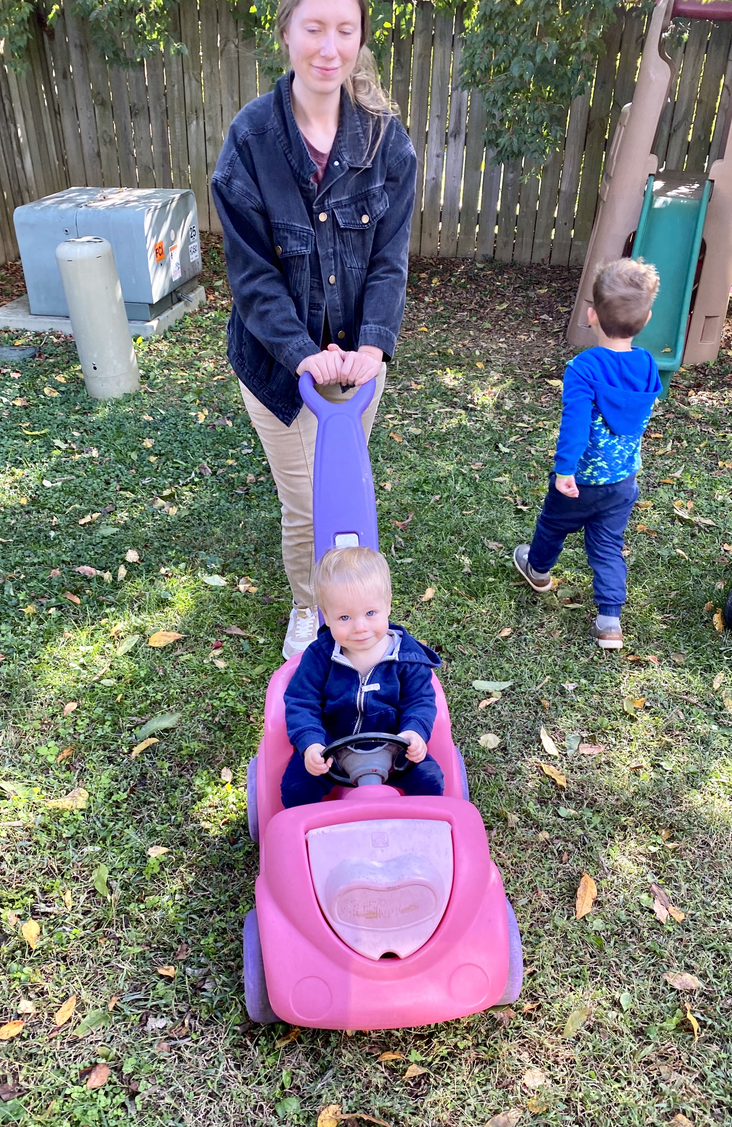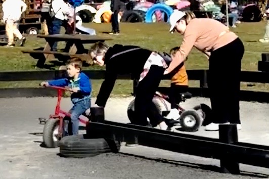 And then Aubrey and I getting a workout pushing Finn and Claire on bicycles that were too big for them—where they couldn't reach the peddles!