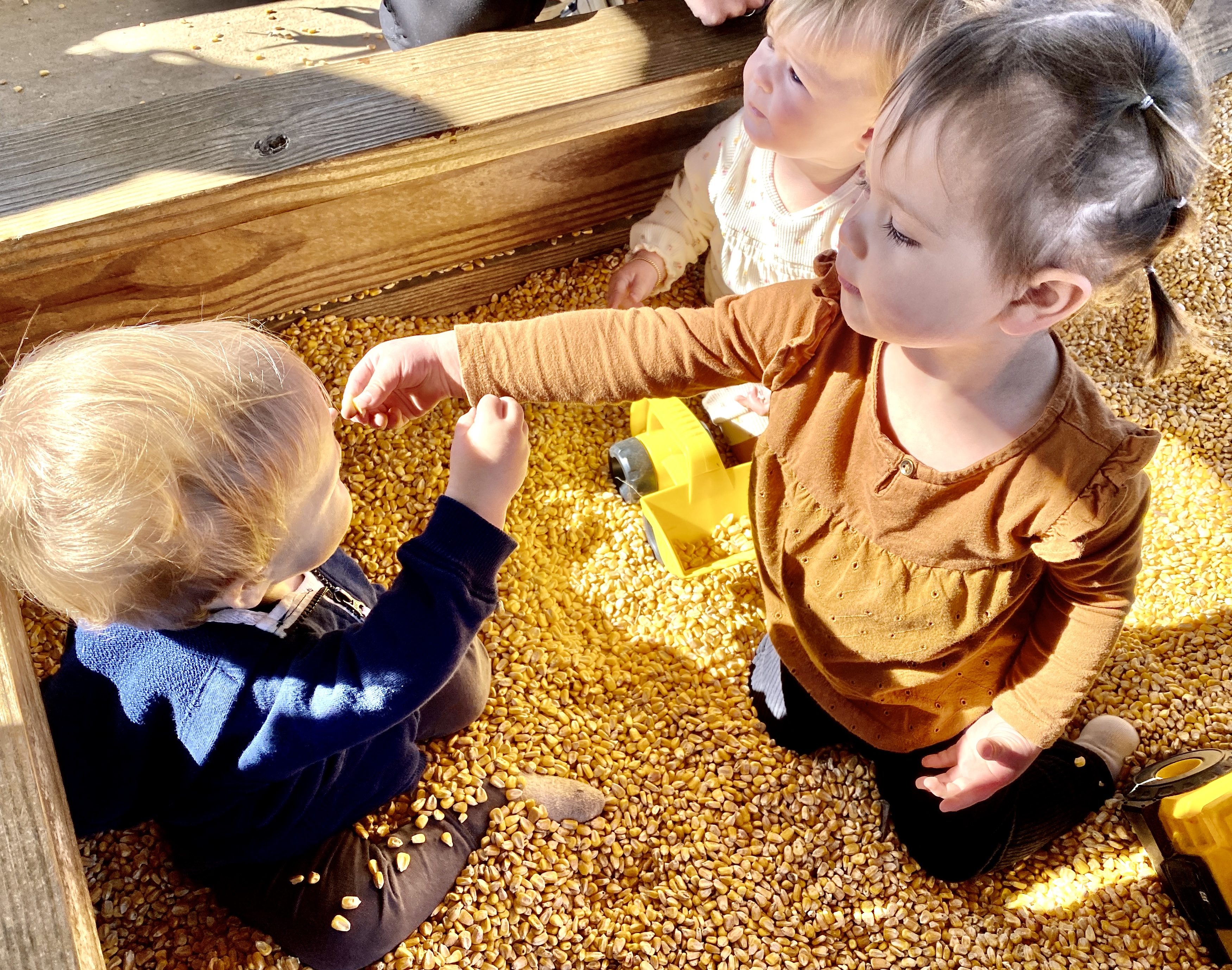 Claire and Gus loved hanging out in the corn-kernel box, but I had to keep reminding Claire not to feed Gus the corn!