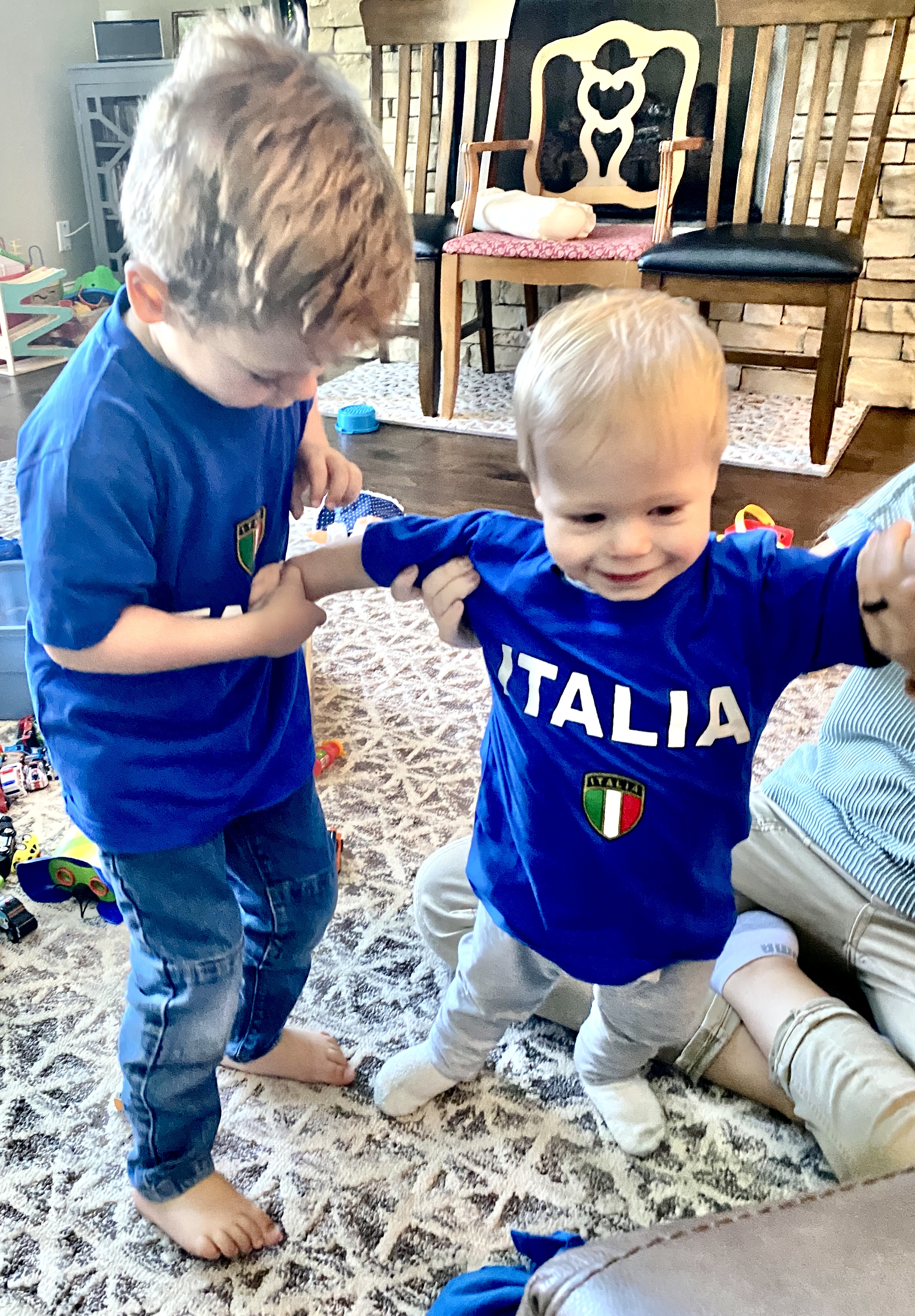 Matching Italy shirts we got the boys while in Verona, Italy.