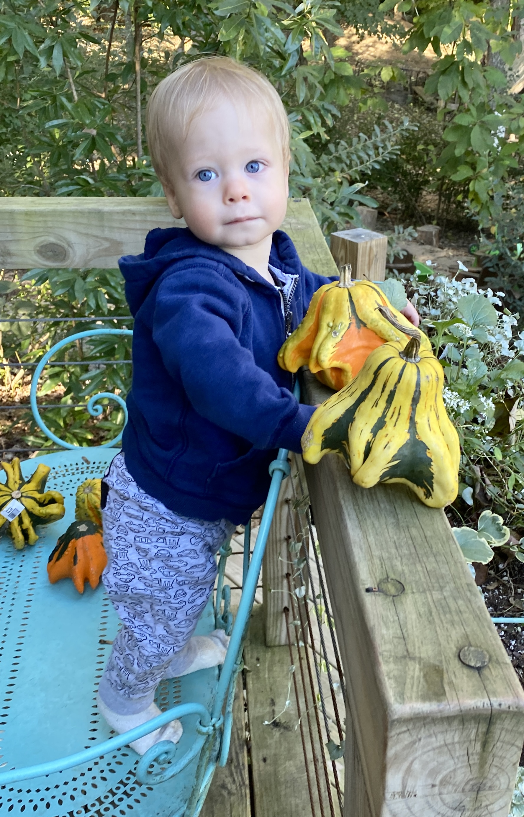 Gus having fun playing with all the colorful gourds.