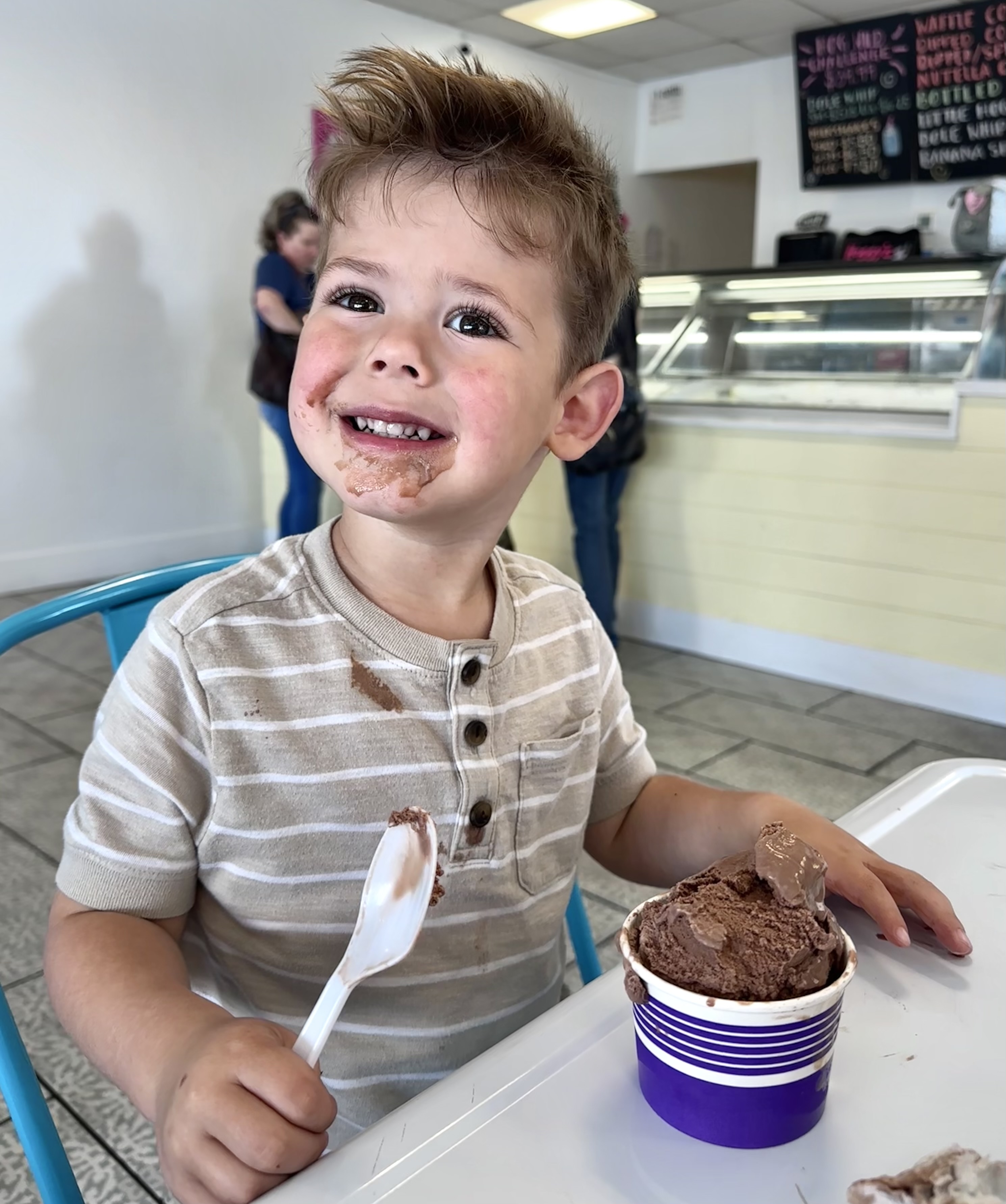 During the baby shower, Finn was living his own best life at Hoggy's Ice Cream parlor, with his grandpa!