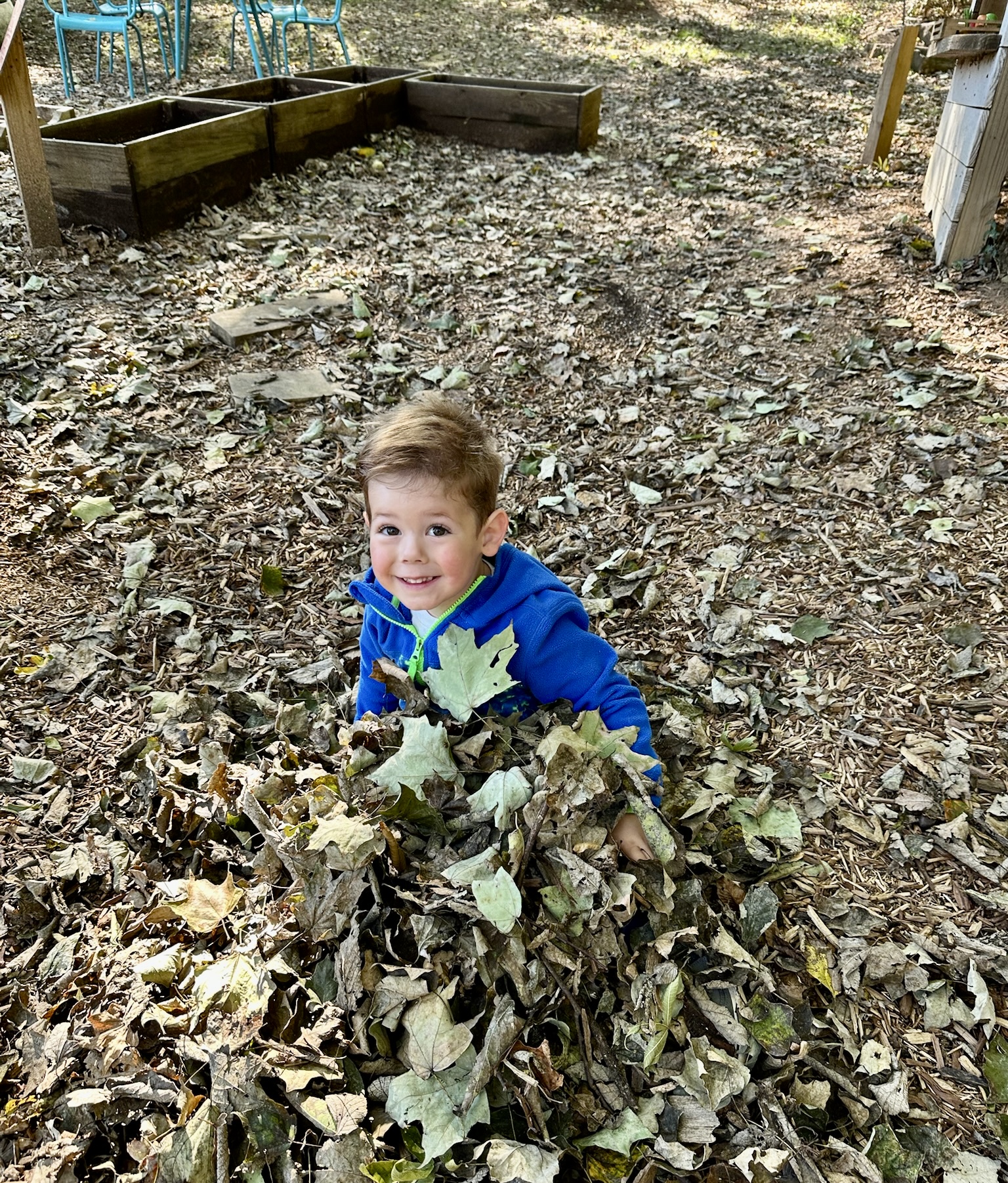 Finn had fun raking leaves and them jumping in them!