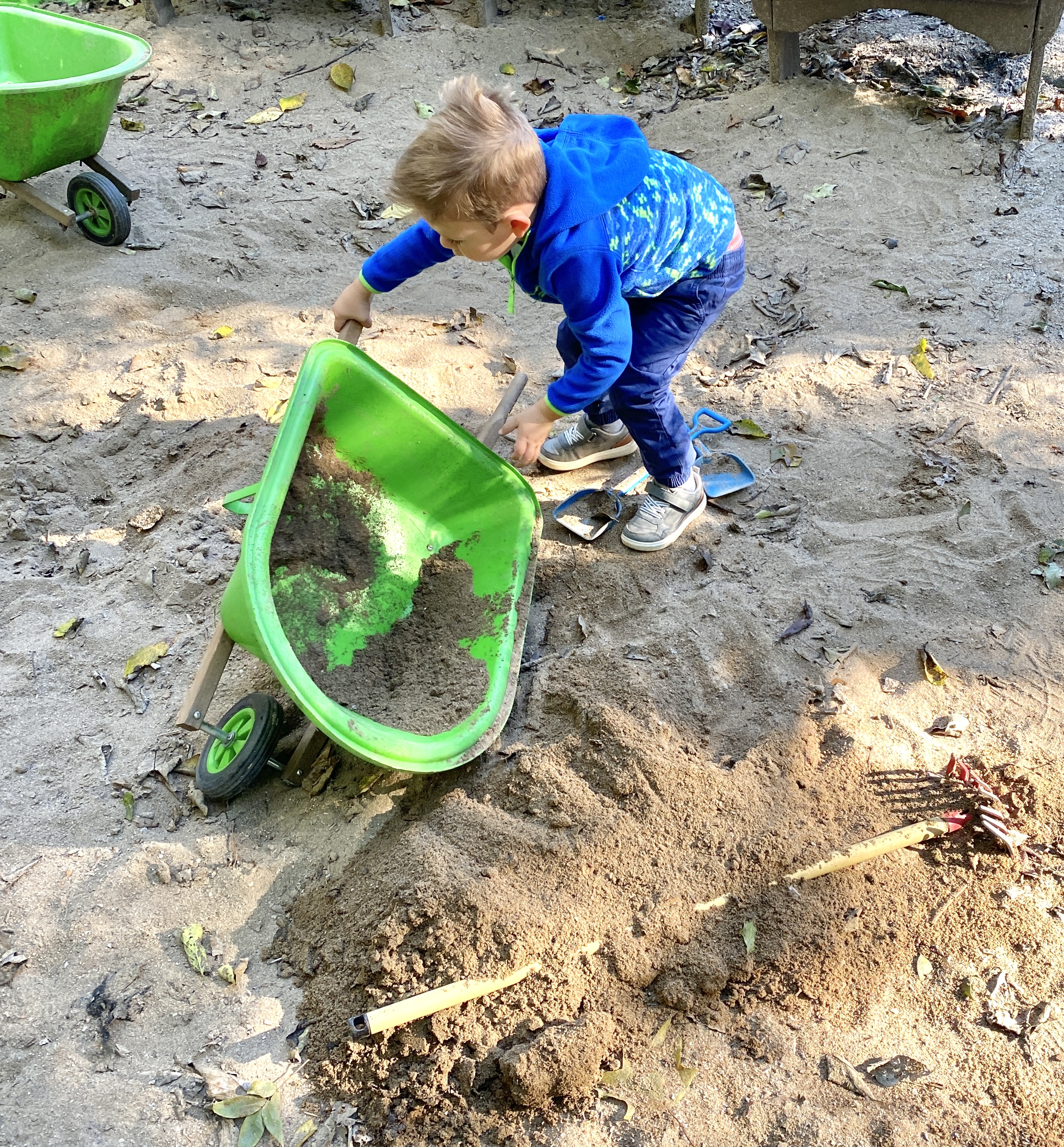 He also enjoyed playing in the huge sand box—loading all the wheelbarrows up with sand.