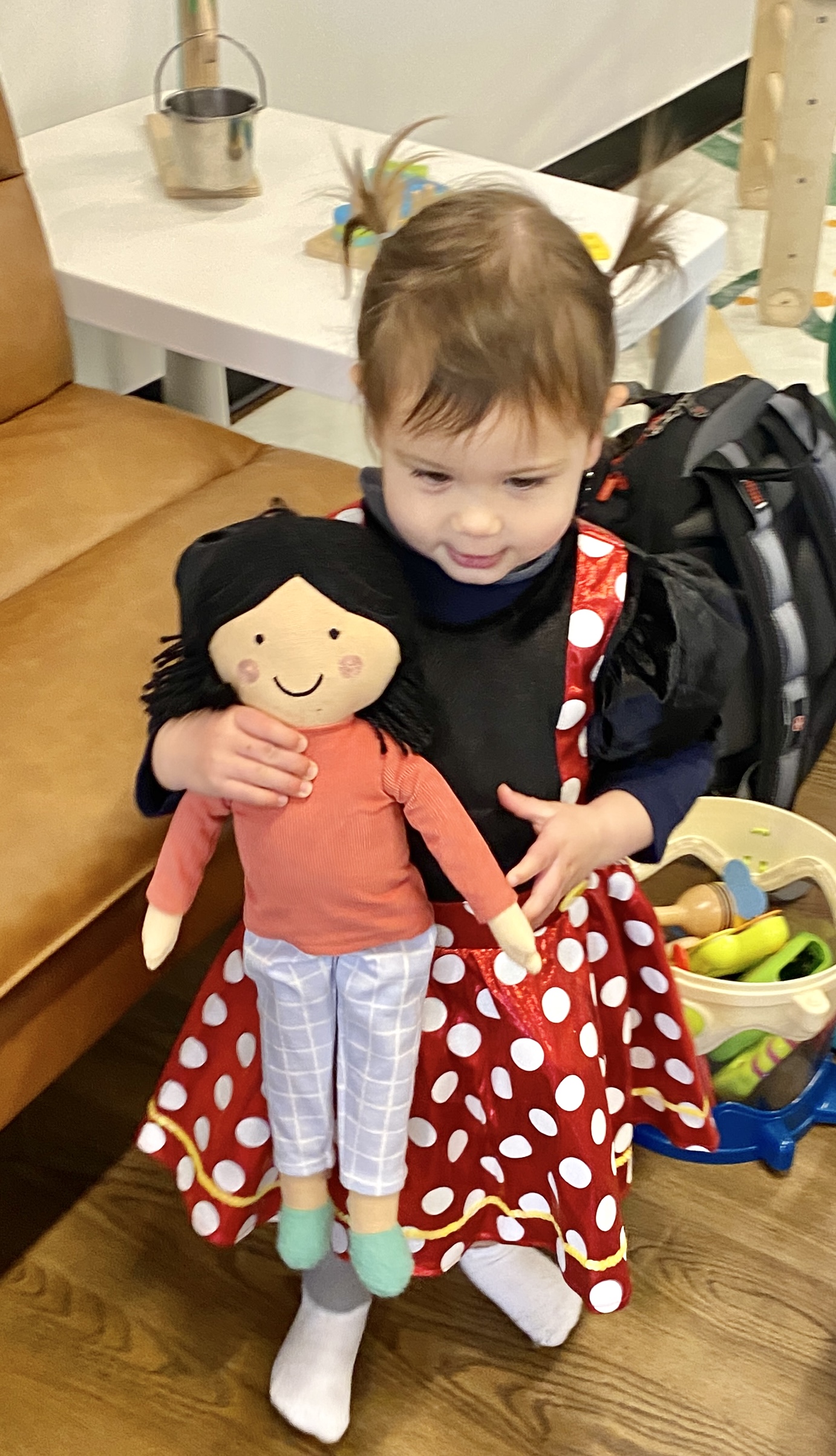 Claire choosing a dress-up dress and taking care of one of the many dolls!