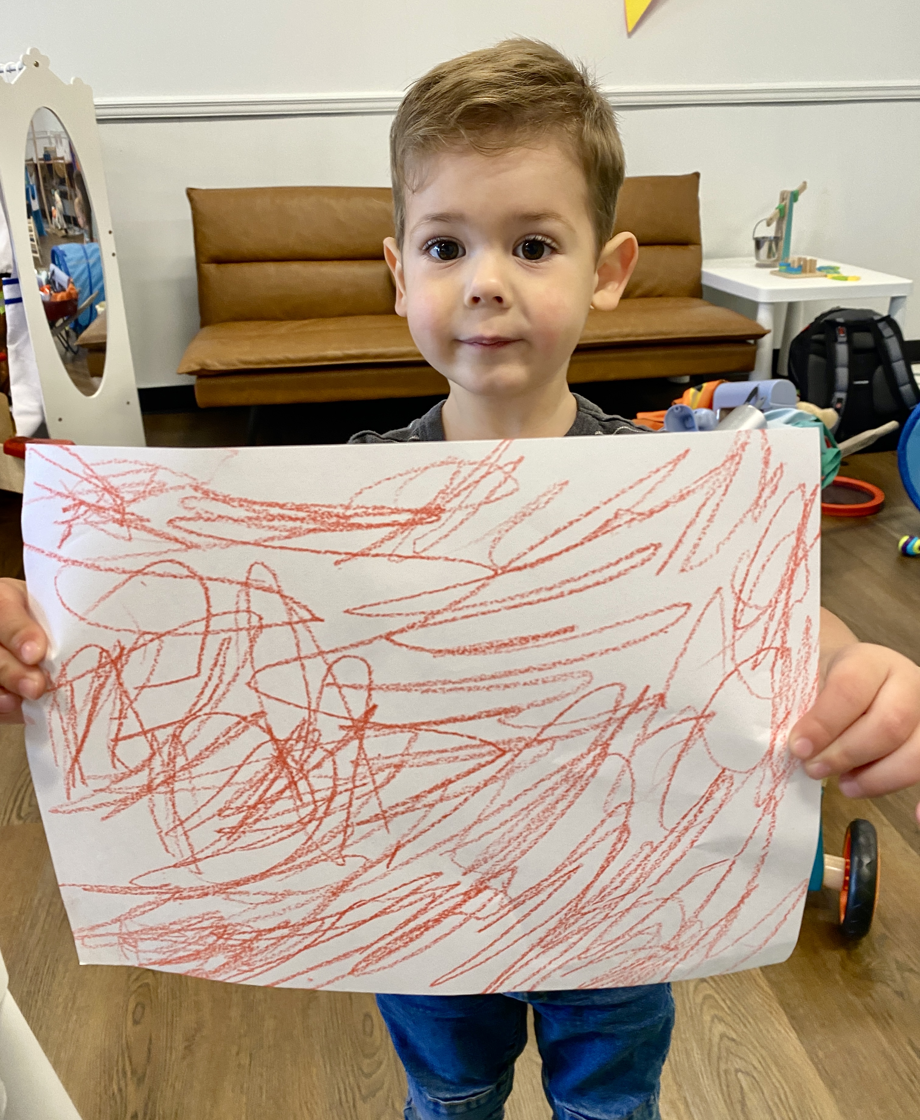Finn showing off his art work from the art station.