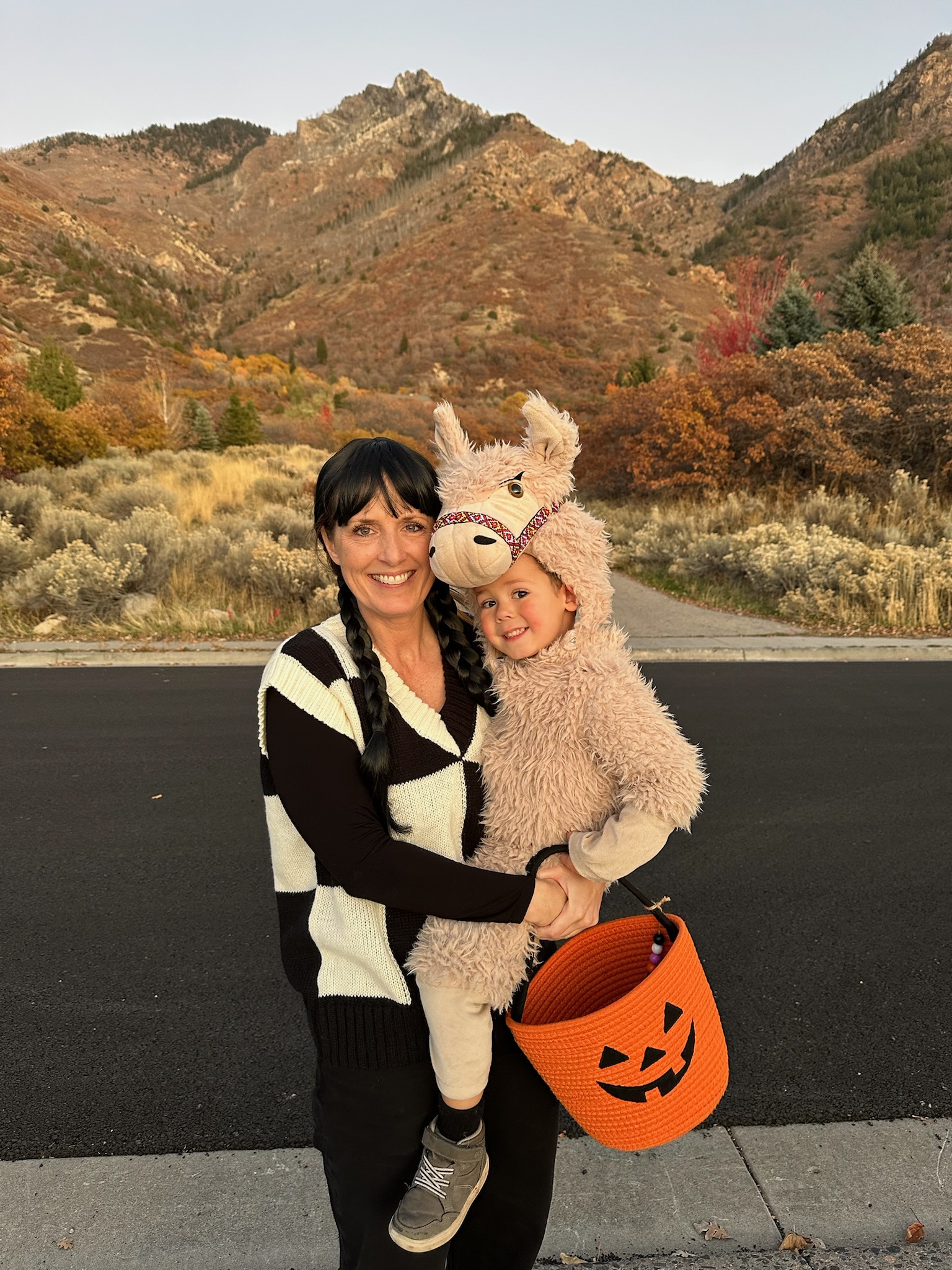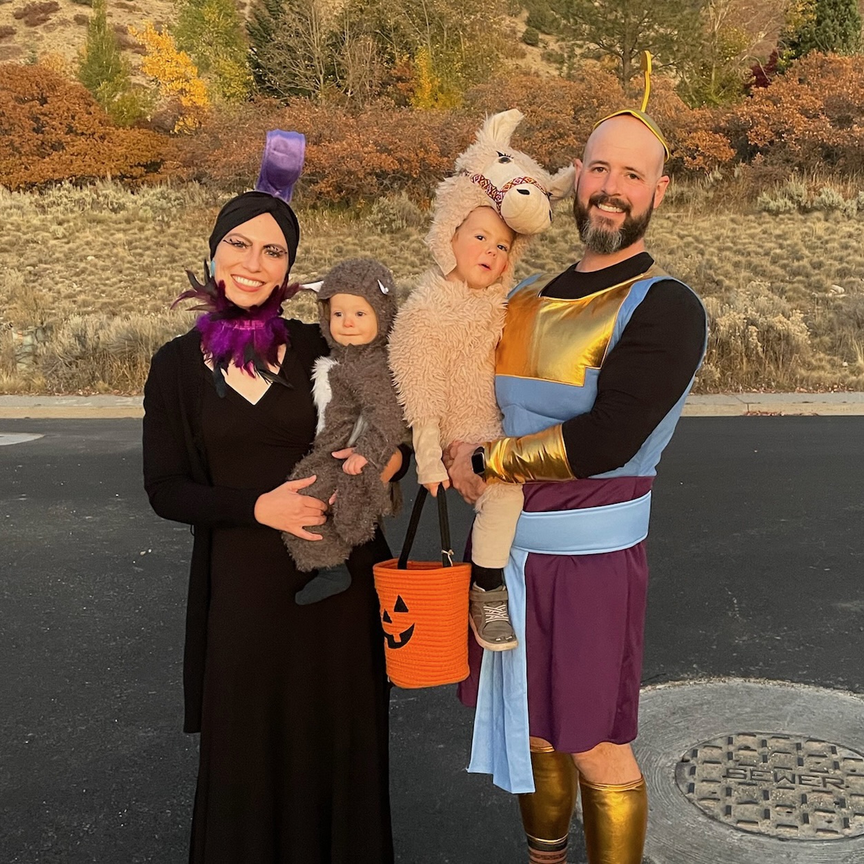 In Utah, trick-or-treating was definitely a family affair for Brittney's family who were all decked-out in Emperors New Groove—Sean as Kronk, Brittney as Yzma, and the boys dressed as Misty the Llama and Emperor Kuzco.