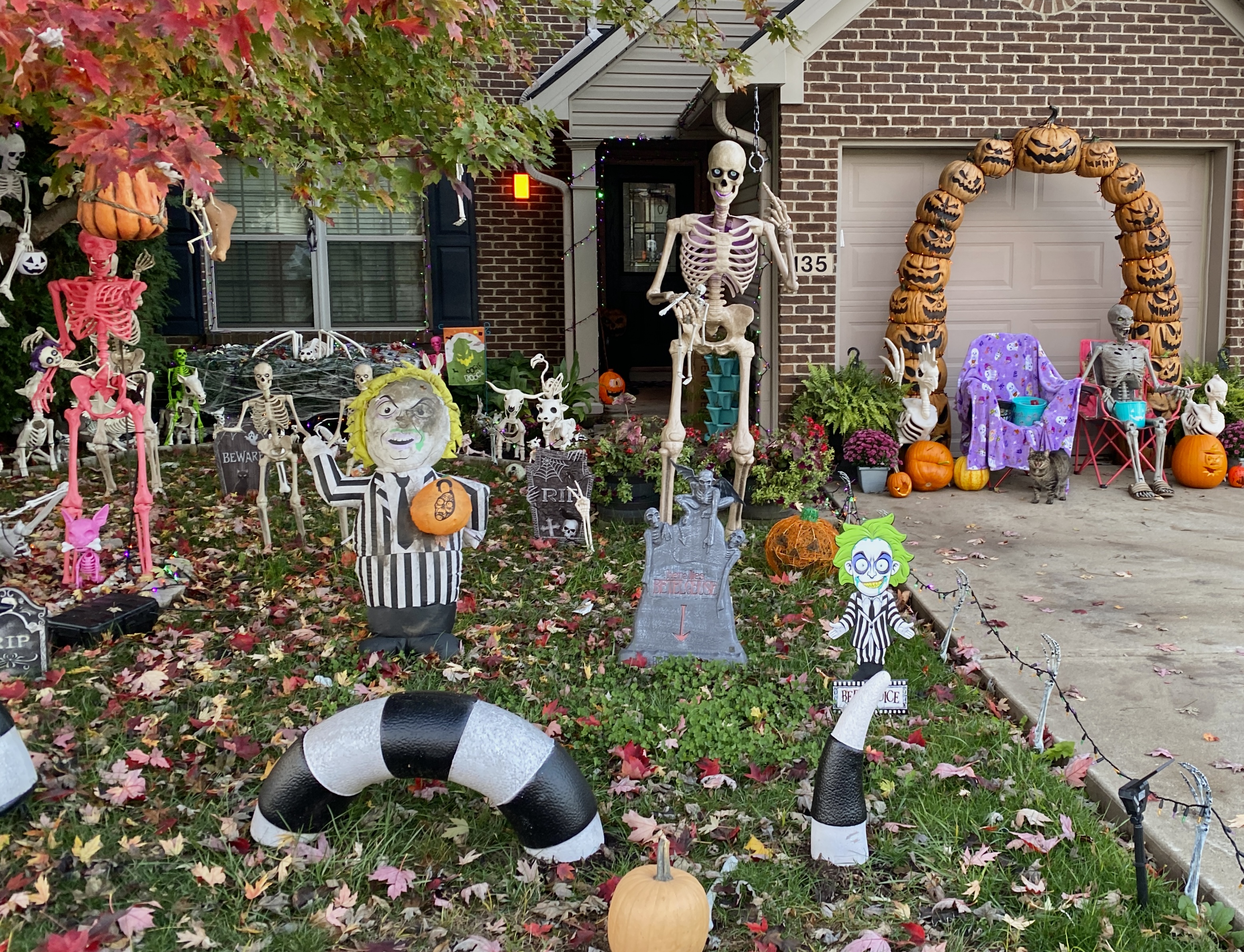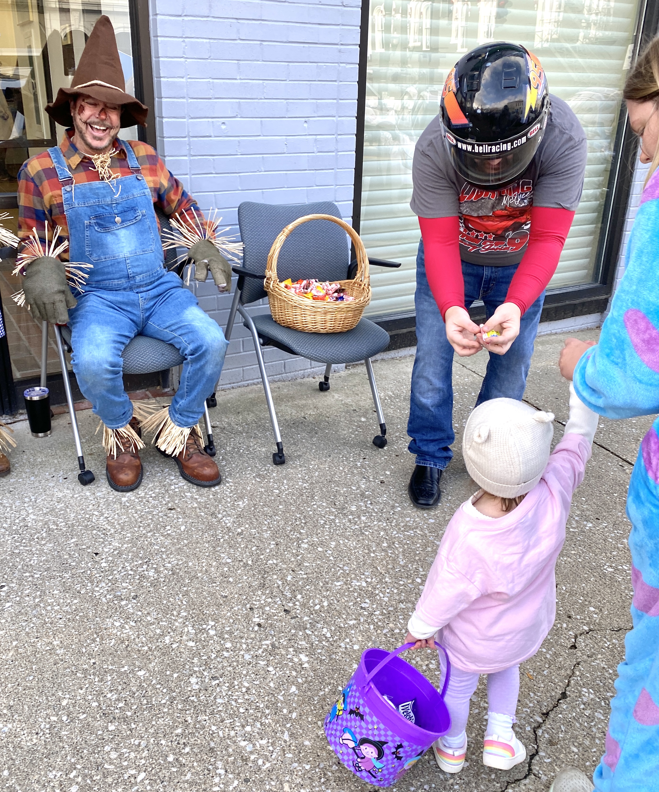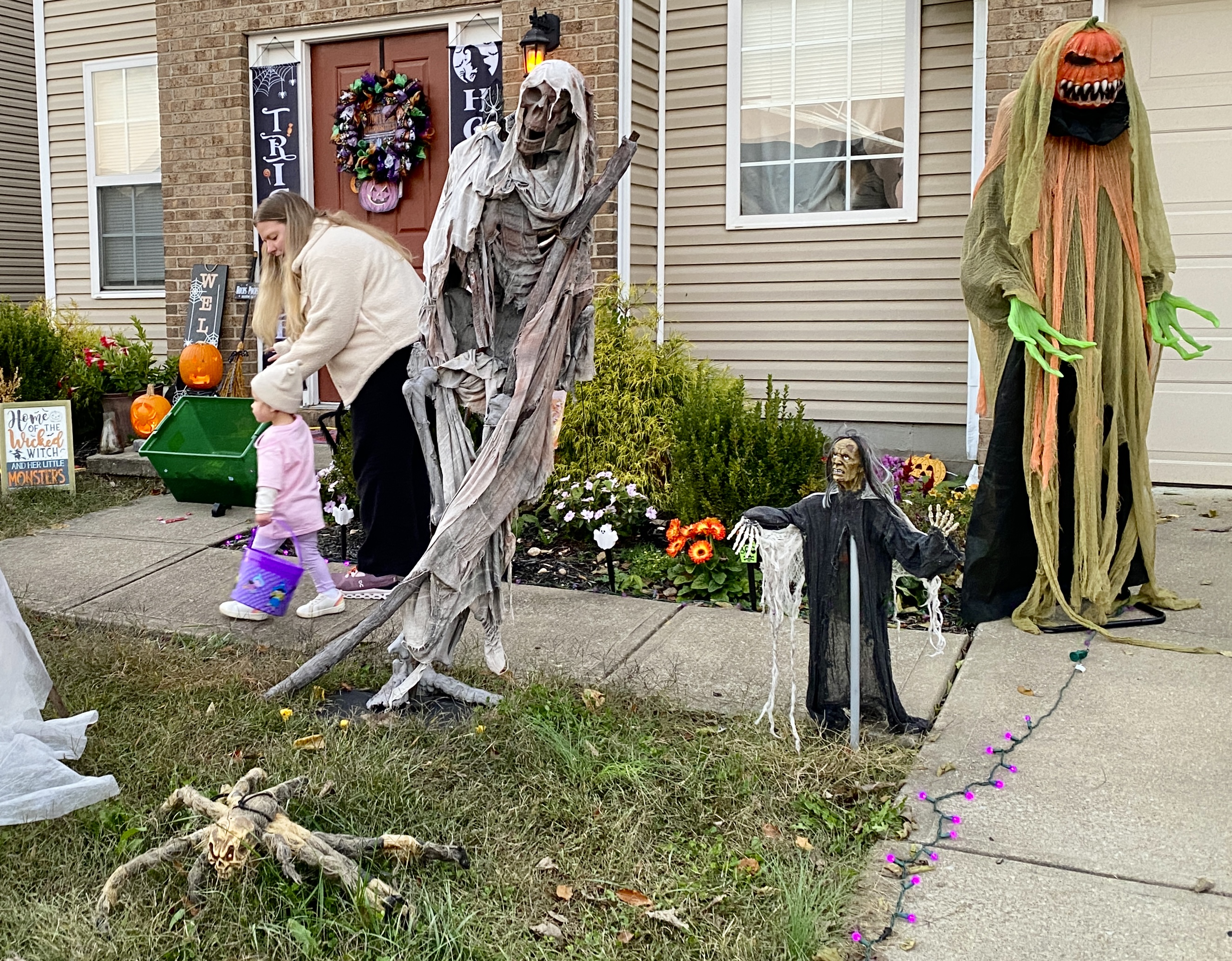 Many of the homes just left candy on the doorstep (like we did) so that they could go out trick-or treating with their kids or grandkids. I loved seeing all the parents, grandparents, and friends walking the streets and trick-or-treating together. Everyone dressed up, not just the kids, and everyone was visiting and just having a good time. It really reminded me of “days gone by”!