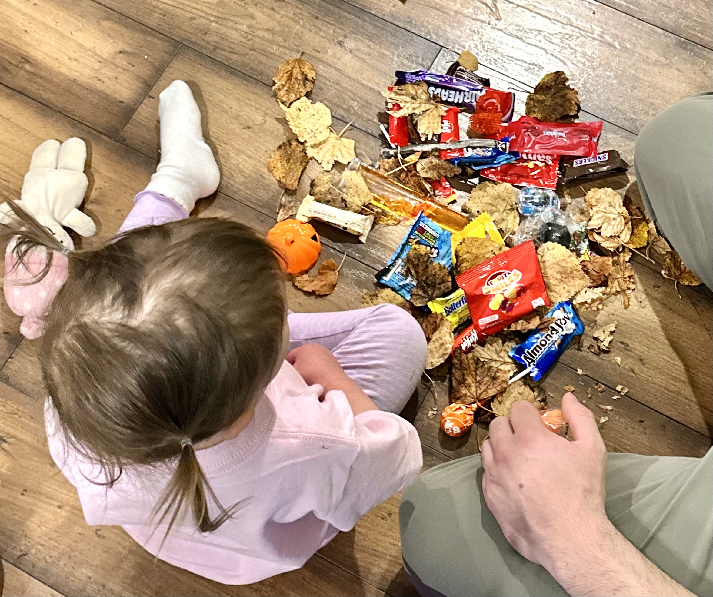 When we arrived Claire dumped out her candy, which was mixed with quite a few leaves!