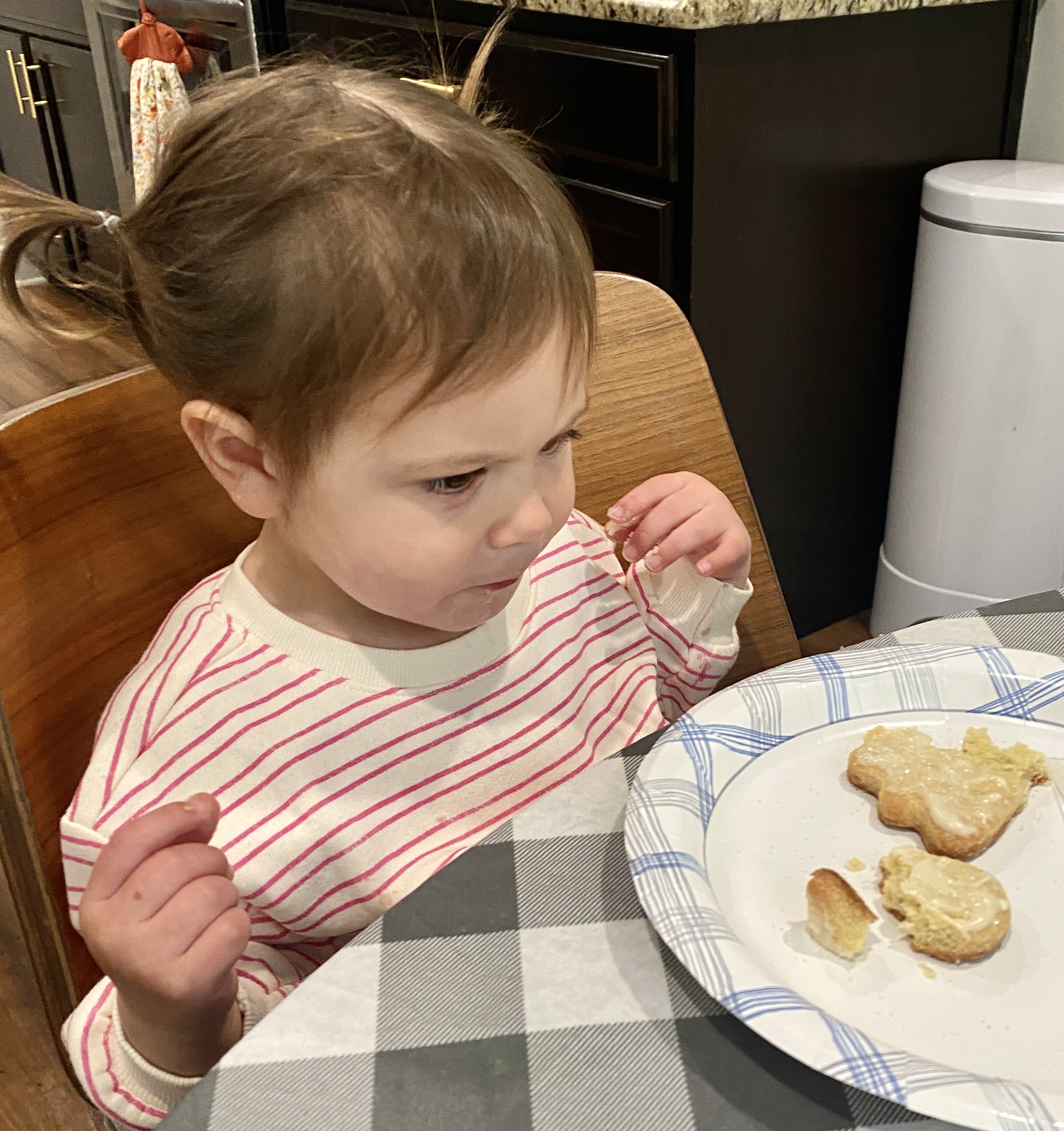 I think Claire had more fun making the cookies than eating them (I should have offered her some cheese to go with the cookies).